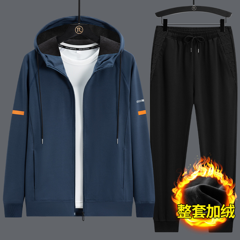 Главная страница > Оптовая Продажа с фабрики плюс размер мужской свитер пальто брюки модный костюм осенне-зимний Кардиган на флисовой подкладке комплект из двух предметов