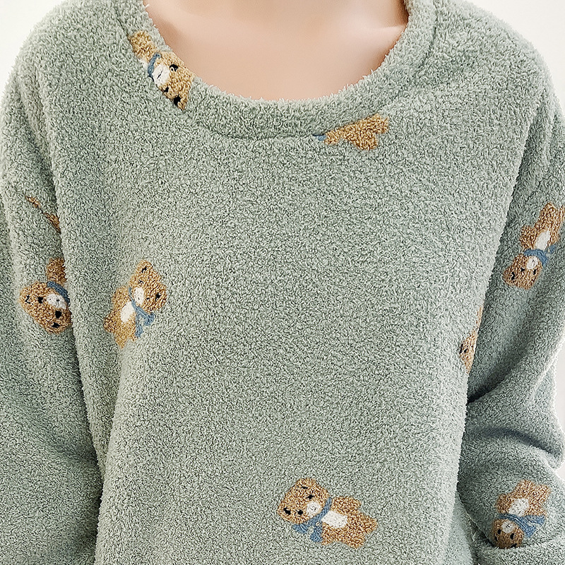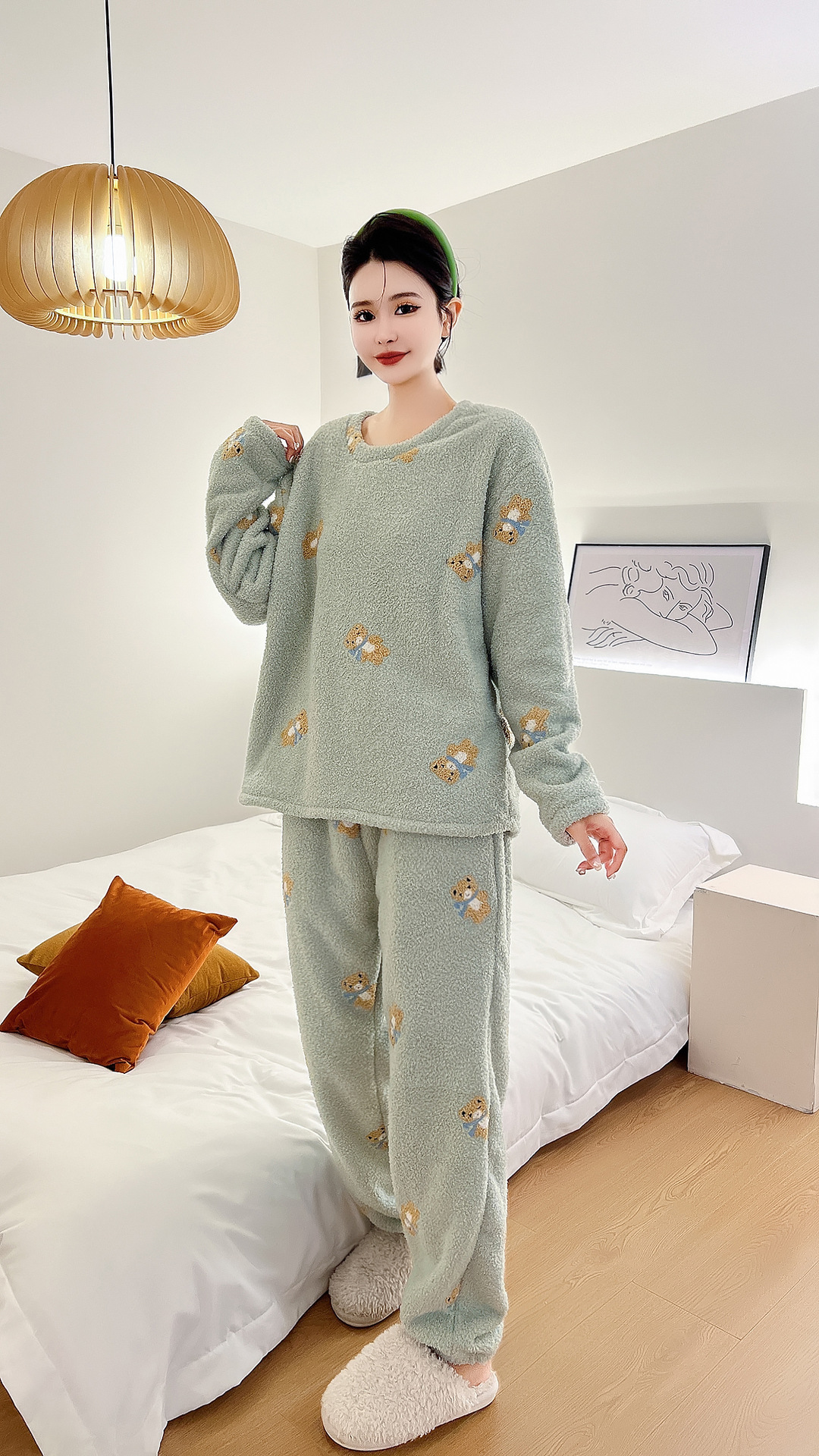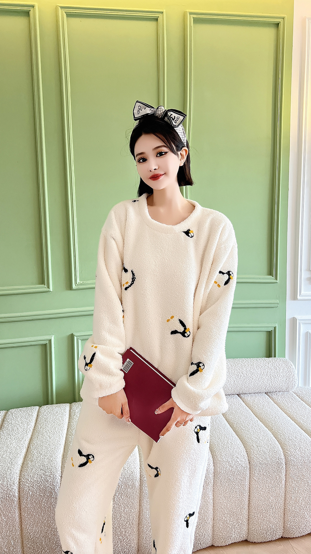 Главная страница > 2024 осень и зима новая пижама женщина 200 кг толстая MM утолщает теплая облака бархат теплая домашняя одежда из двух частей