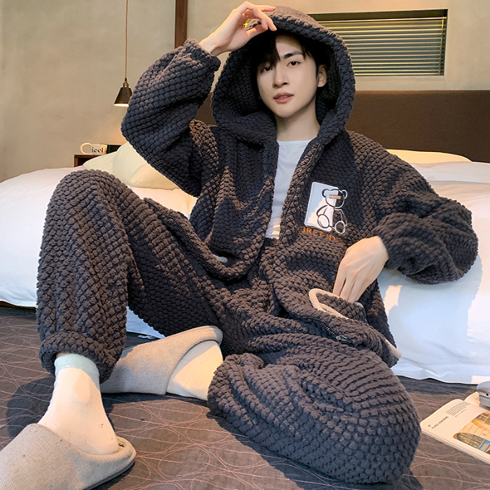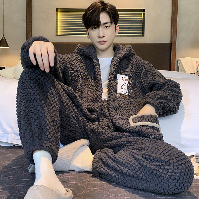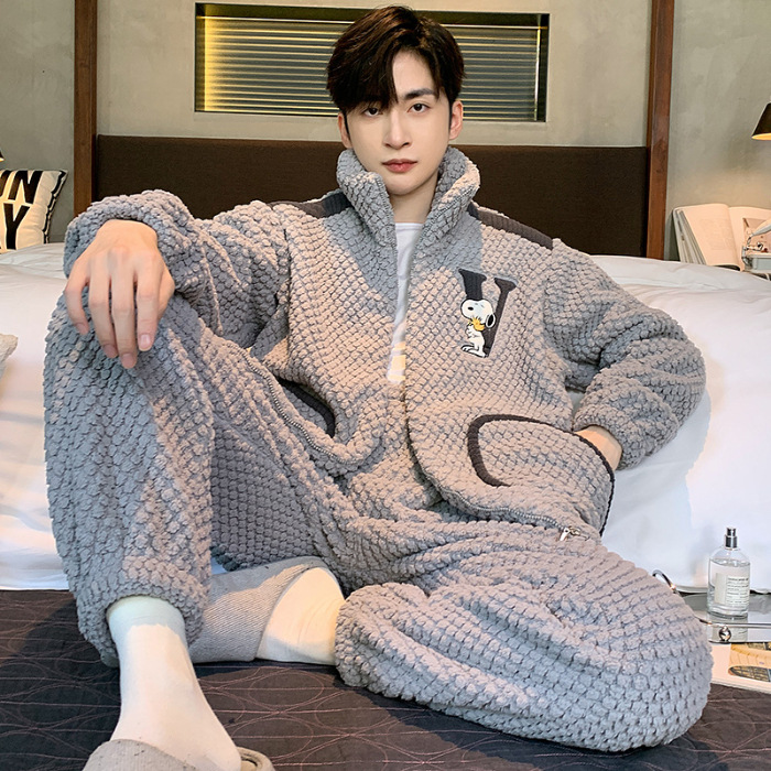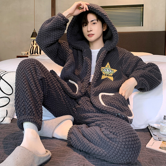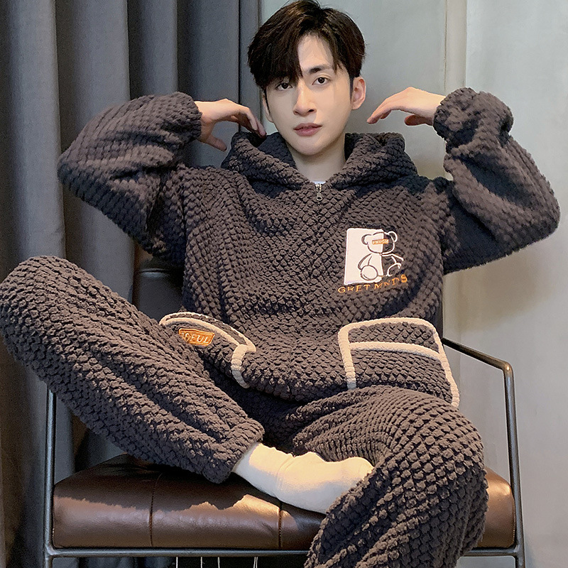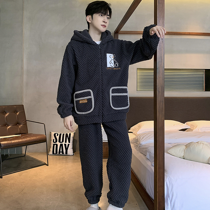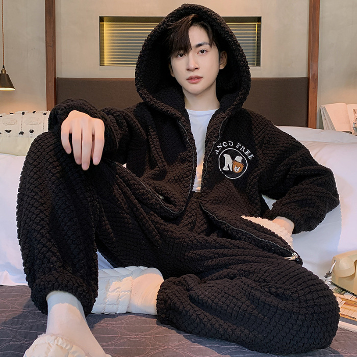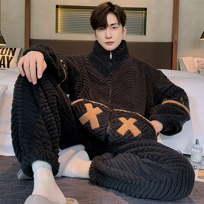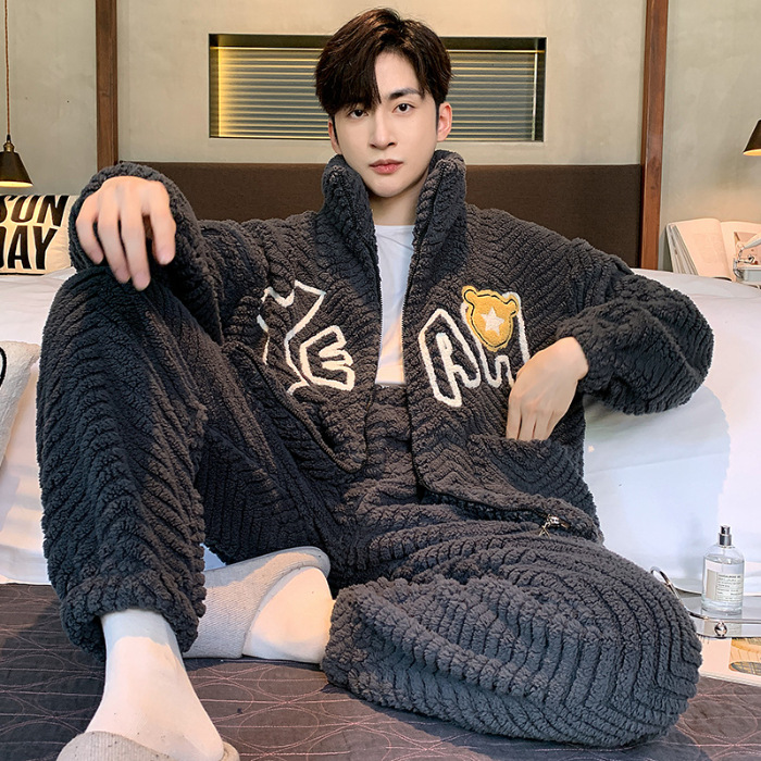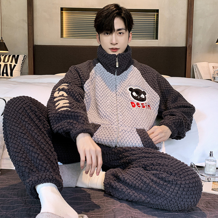 Главная страница > Коралловая флисовая Пижама Мужская осень-зима Новый спортивный Спортивный Молодежный теплый костюм на молнии Мужская домашняя одежда больших размеров
