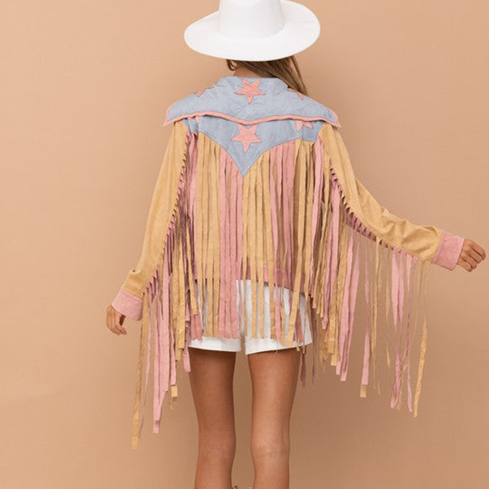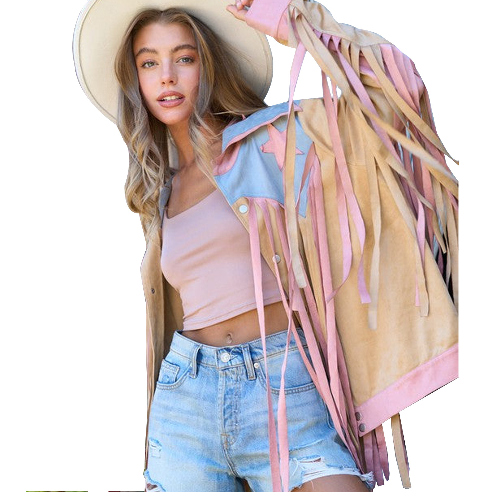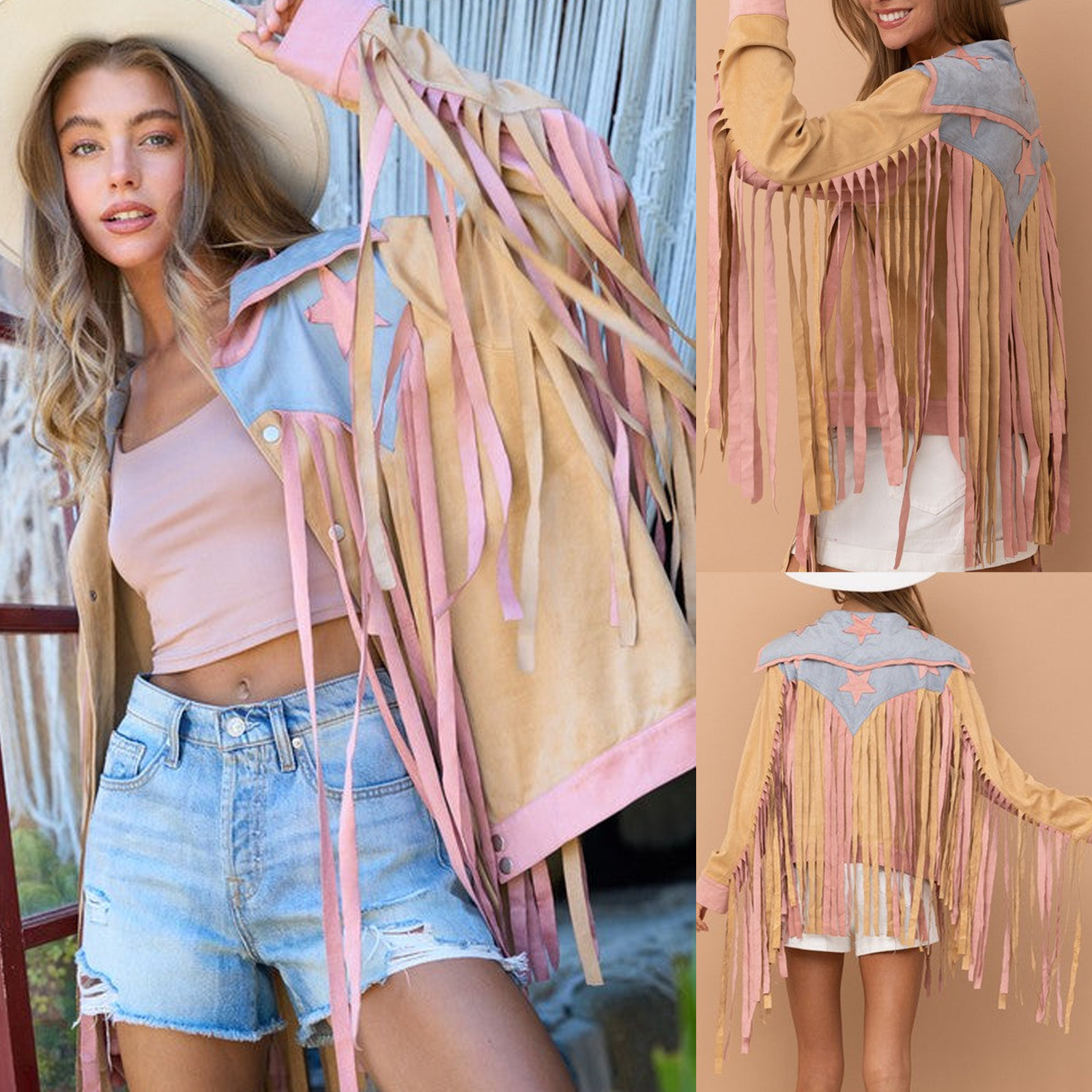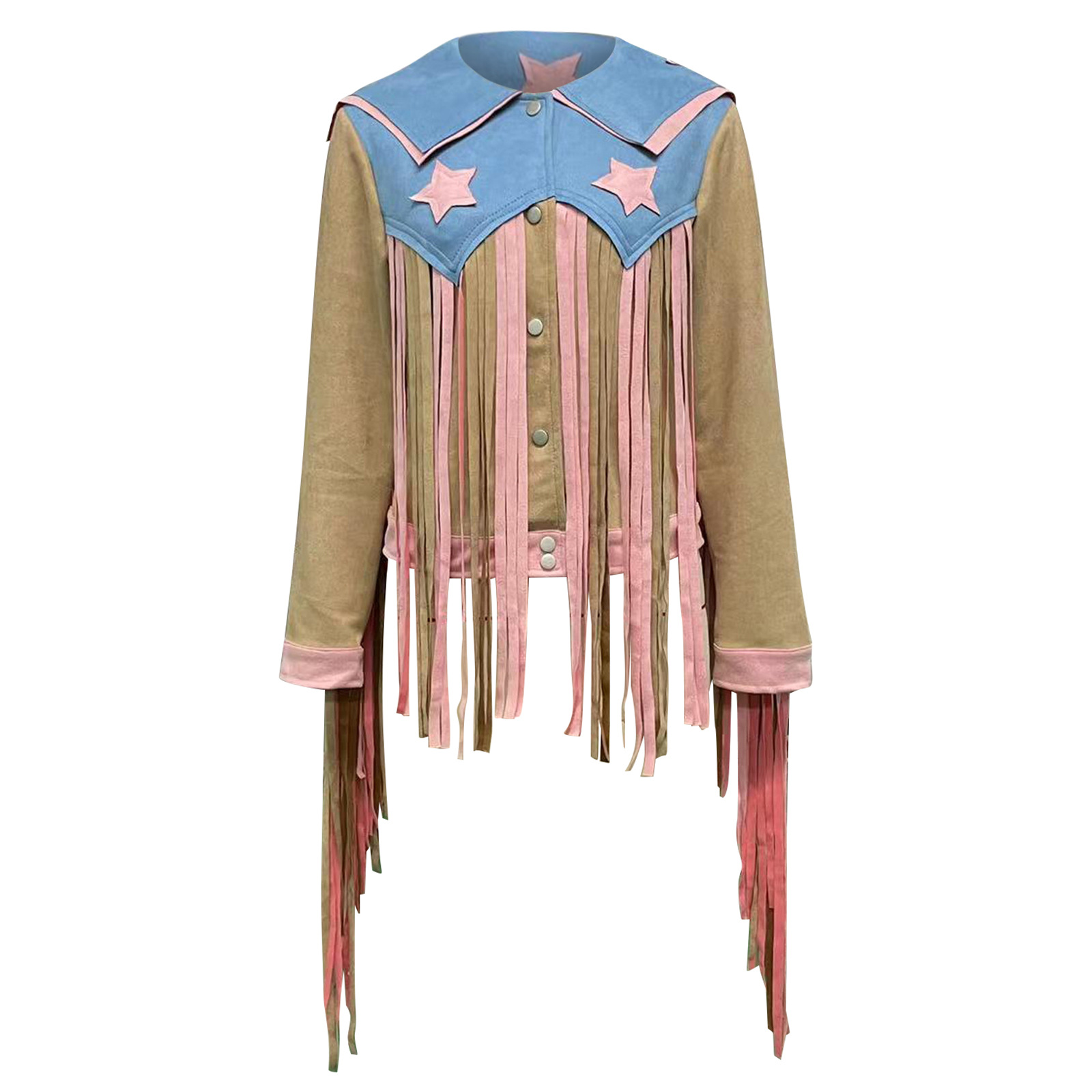Главная страница > Европейская и американская осенне-зимняя женская милая куртка, новый стиль, повседневный женский топ с пятиконечной звездой и кисточками SU3097