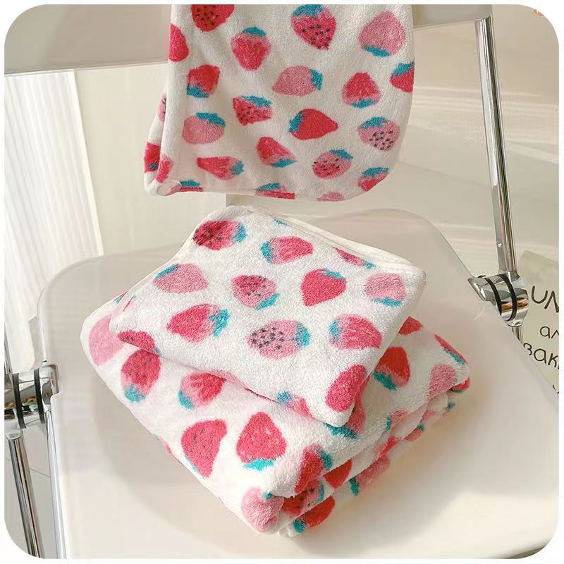 Главная страница > Набор из трех предметов: большое банное полотенце, полотенце для сушки волос, шапочка для сушки волос из кораллового флиса, цвет клубника.