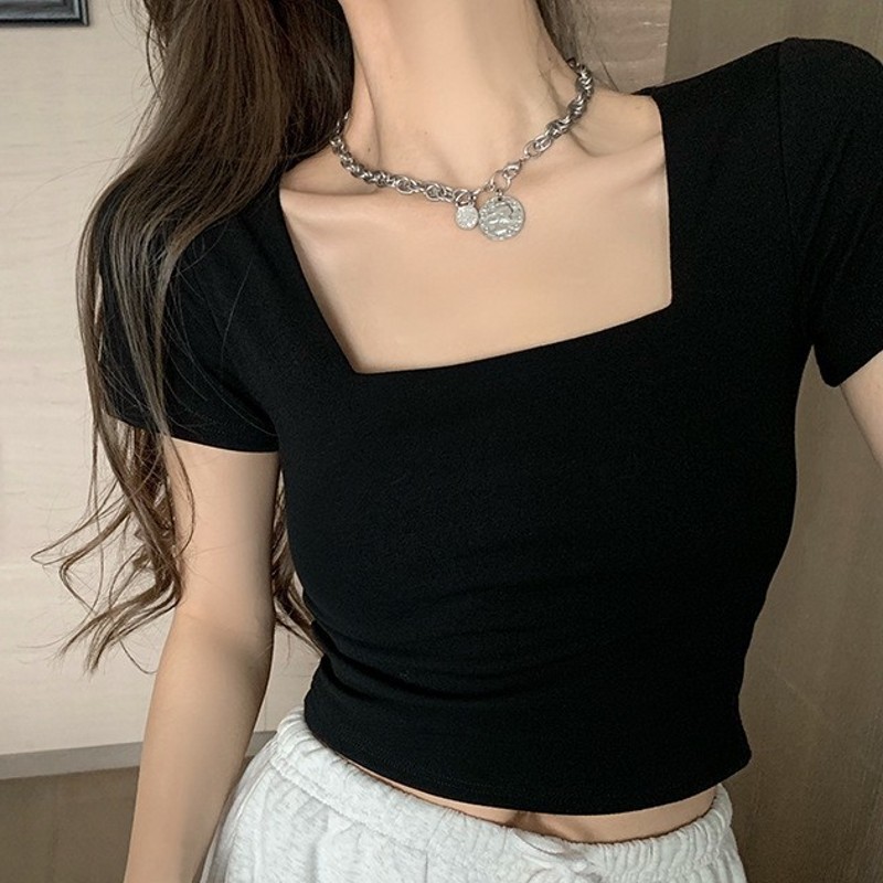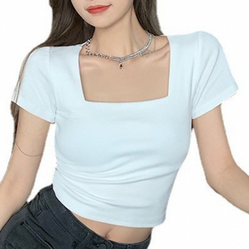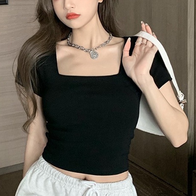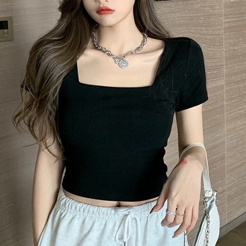 Главная страница > Женская футболка с квадратным вырезом, короткими рукавами и высокой талией, короткая рубашка с открытым пупком, топы, женские летние 2025, новая облегающая внутренняя одежда