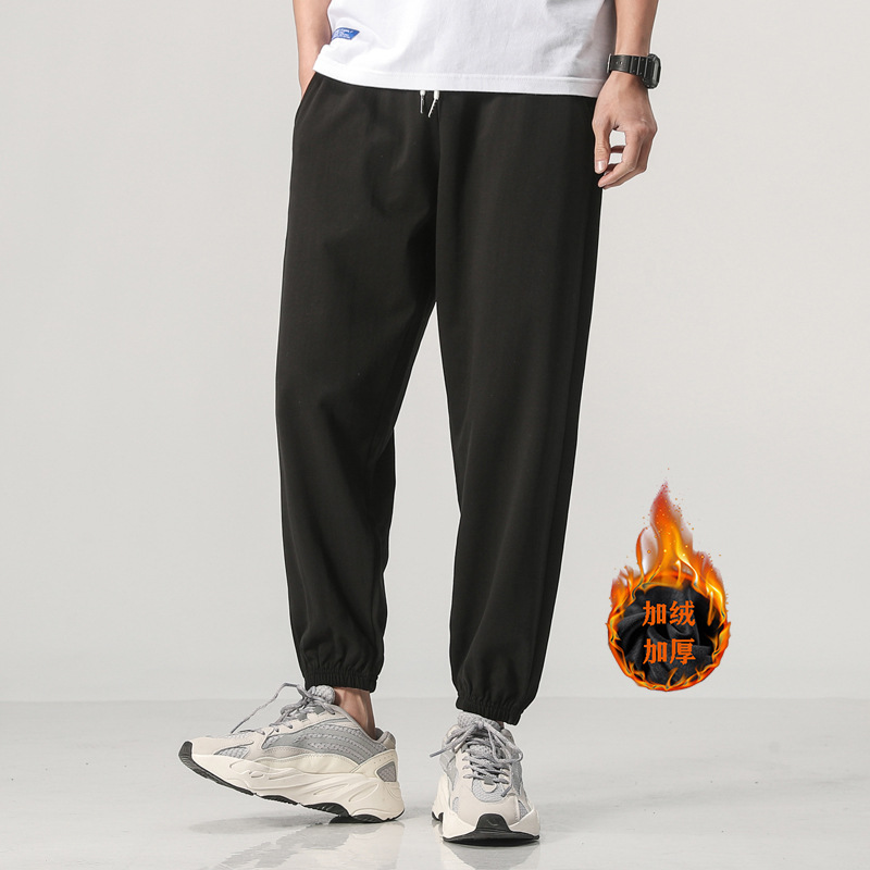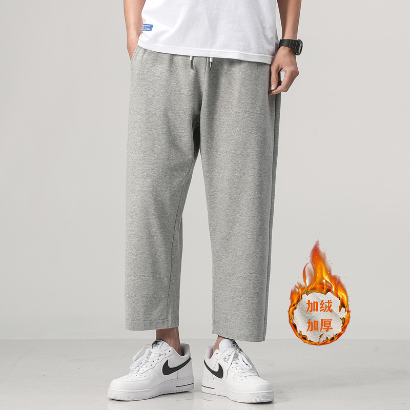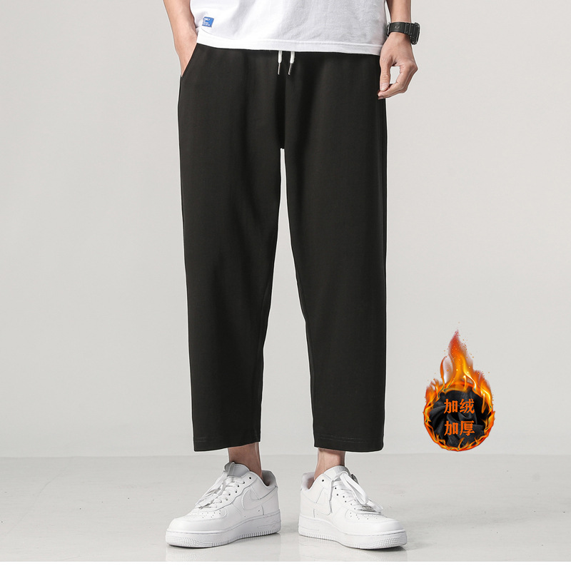 Главная страница > Спортивные штаны на флисовой подкладке, мужские маленькие повседневные брюки с восемью точками, мужские зимние утолщенные свободные однотонные спортивные штаны для мужчин с высоким носком