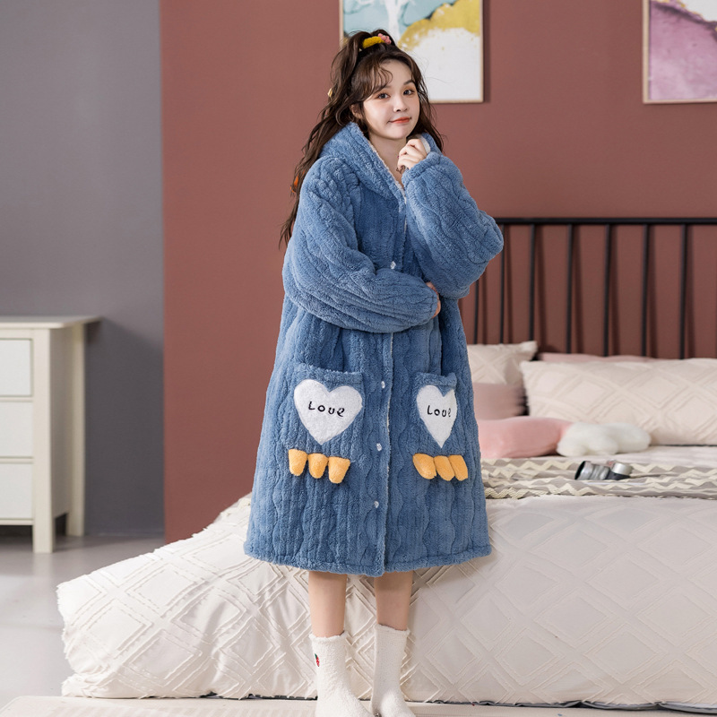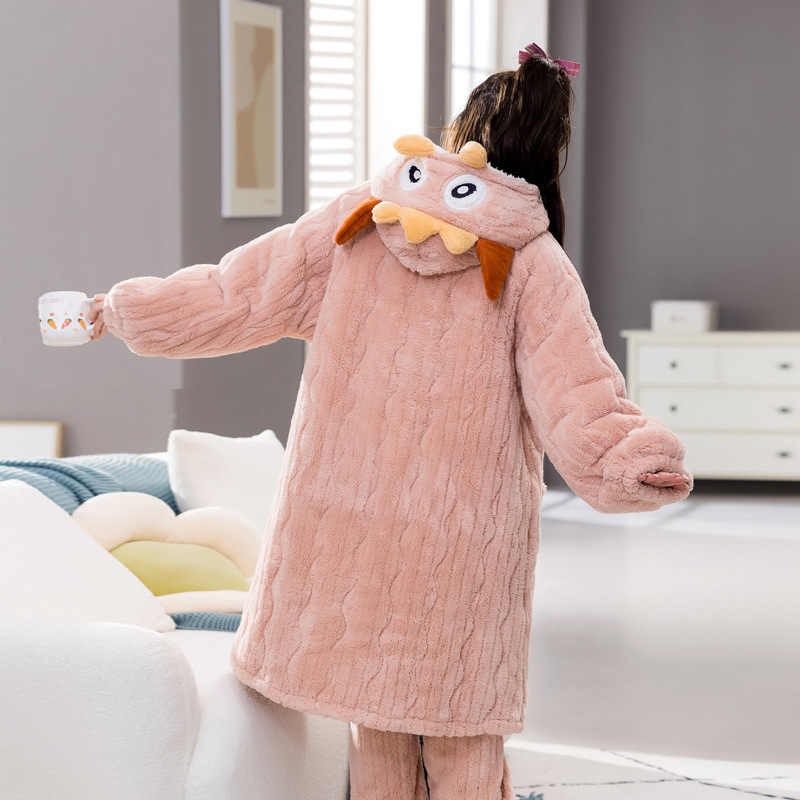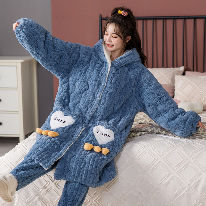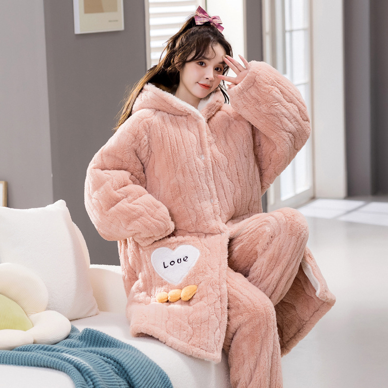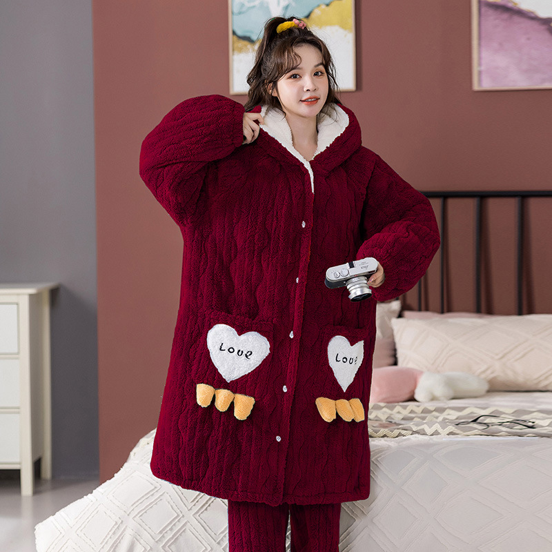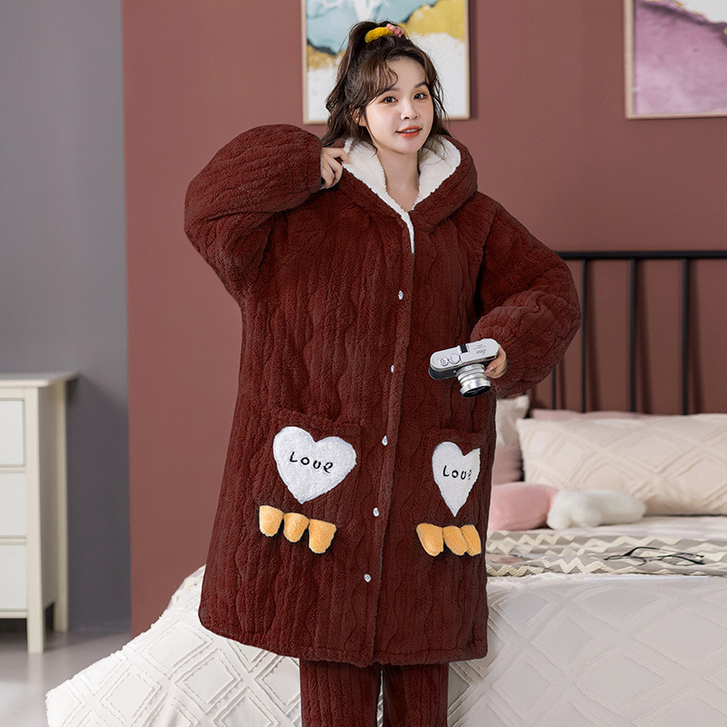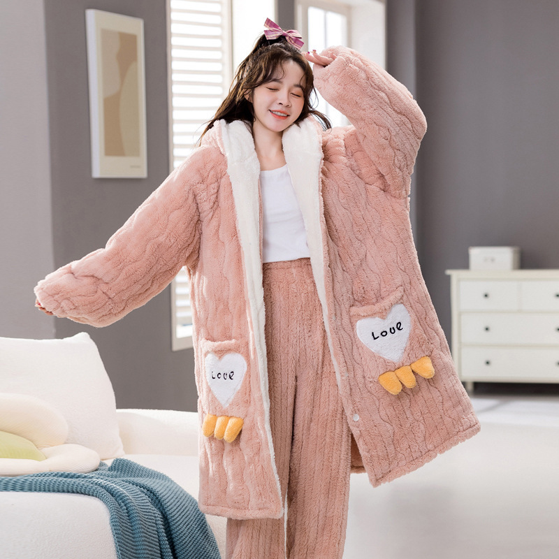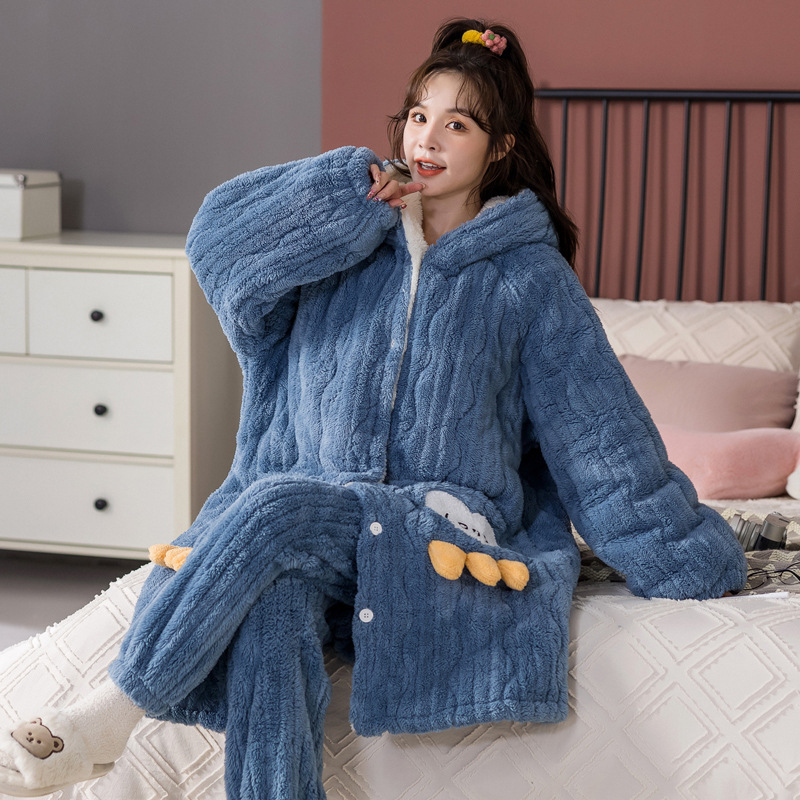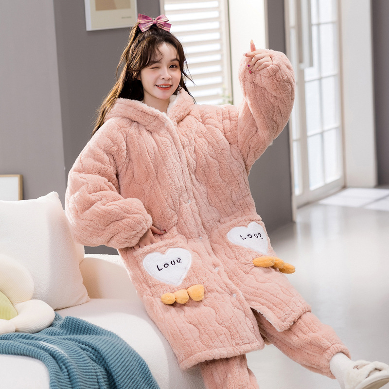 Главная страница > Зимние трехслойные стеганые утолщенные пижамы большого размера для женщин, милая домашняя одежда, костюм с капюшоном, свободные теплые пижамы M
