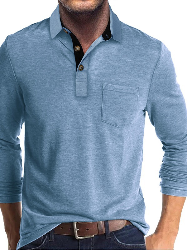 Главная страница > Европейская и американская мужская футболка с лацканами с длинным рукавом Мужская рубашка-поло для внешней торговли Трансграничная осенне-зимняя Базовая рубашка Топ-поло