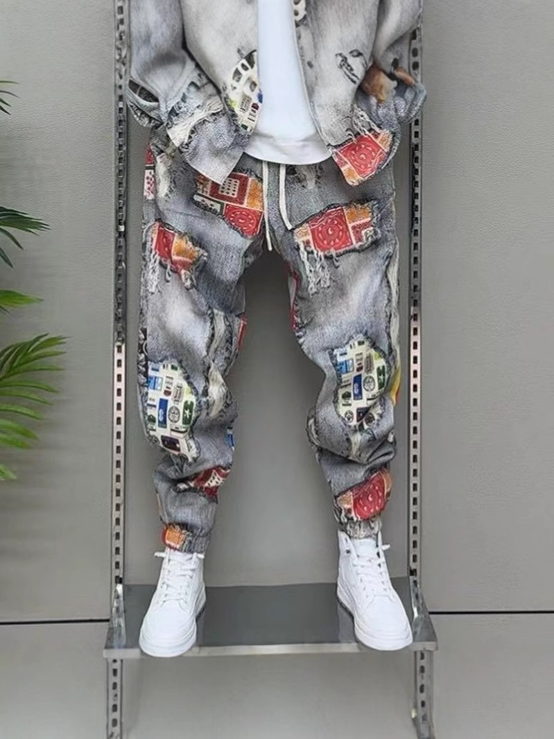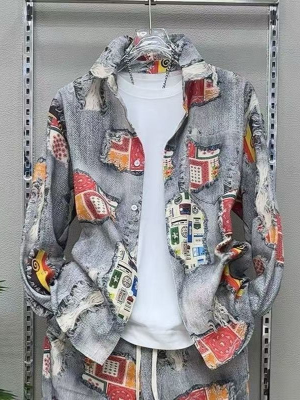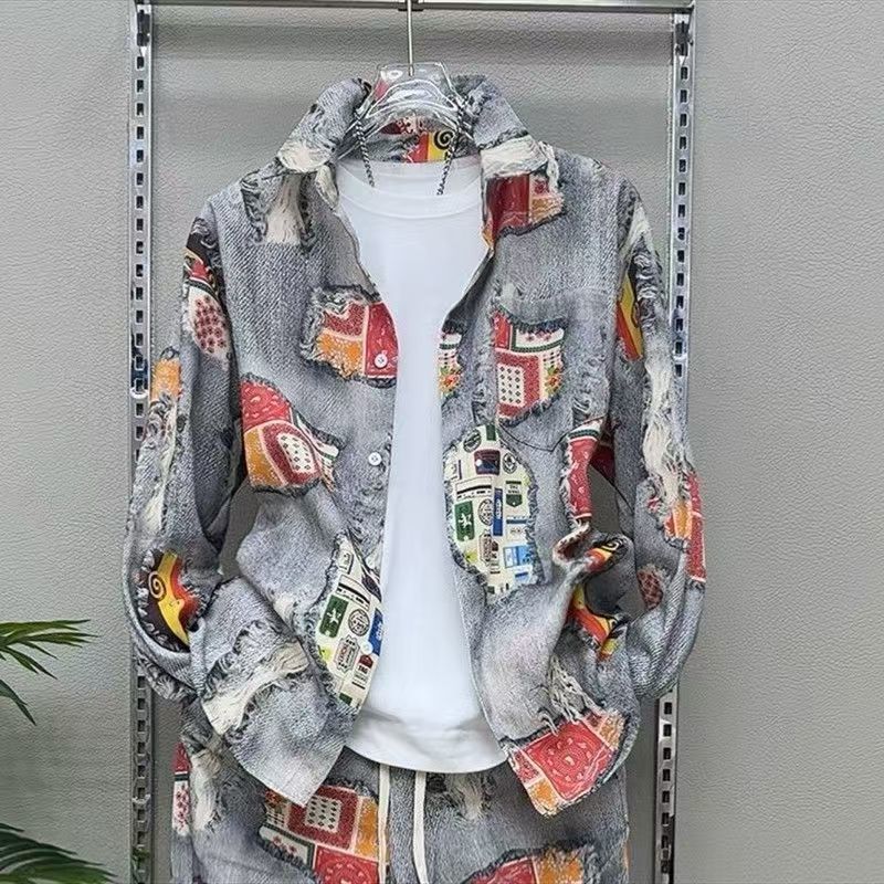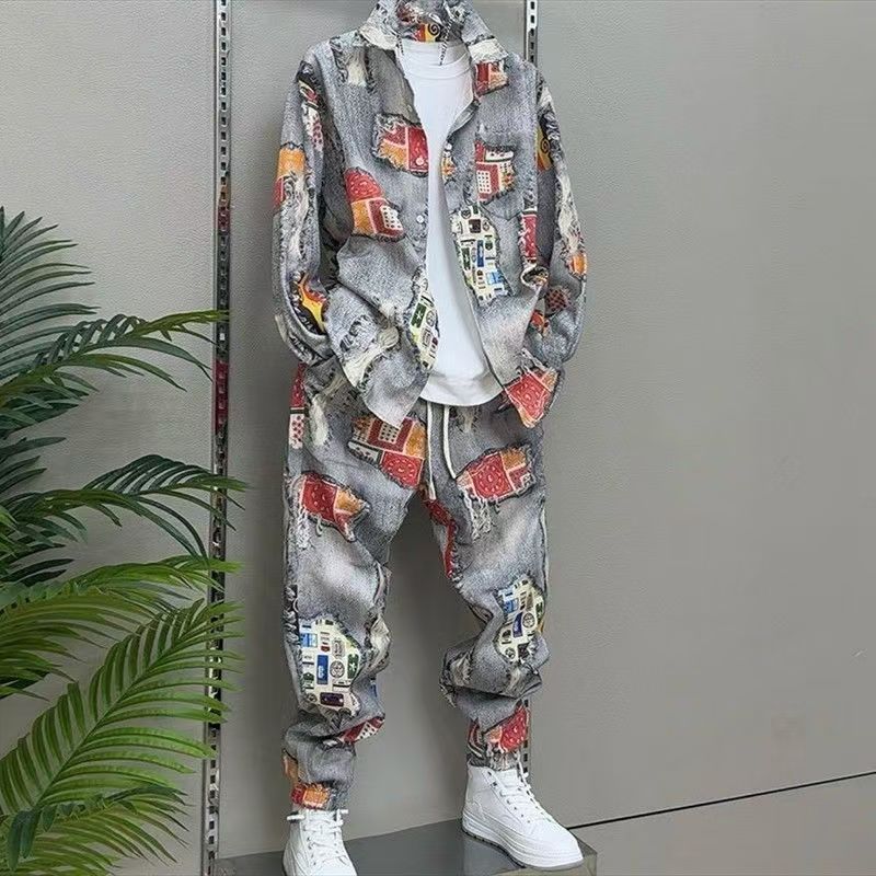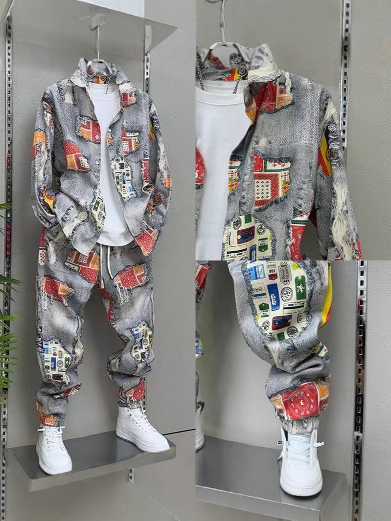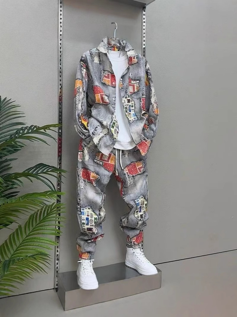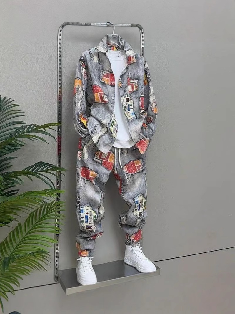 Главная страница > 2025 Весна-Осень Новый мужской костюм с принтом Повседневный пиджак Брюки ретро-стиль Гонконгский стиль Двухкомплектный набор Модный тренд