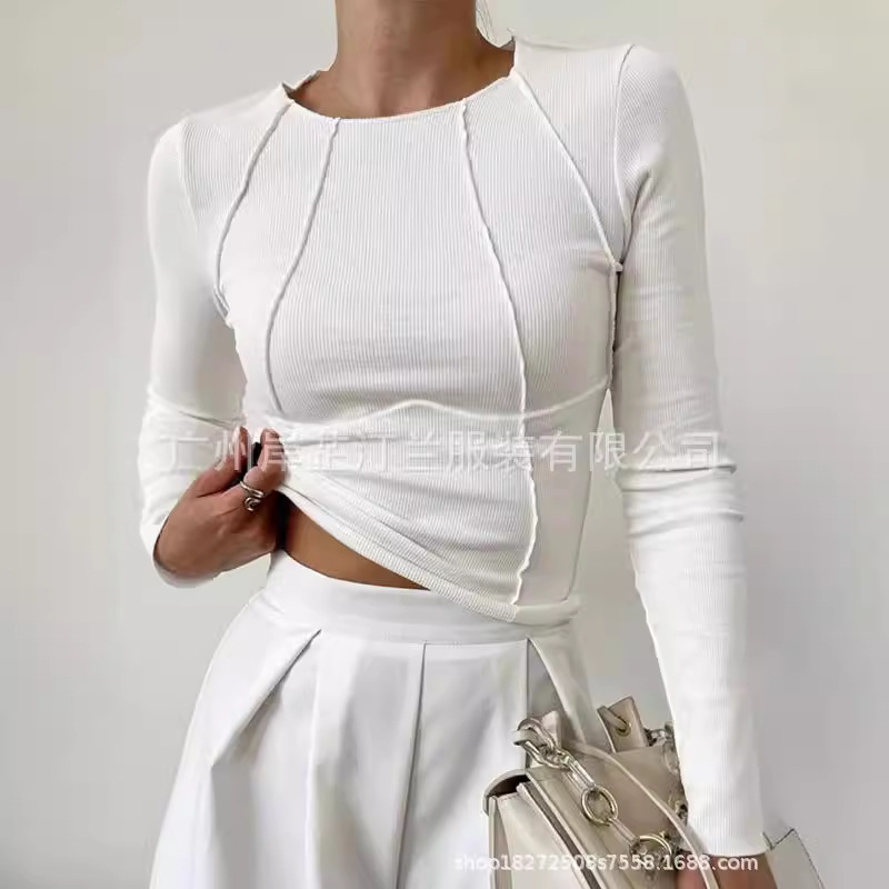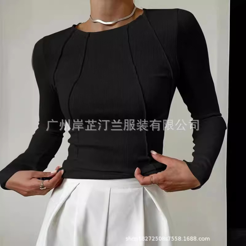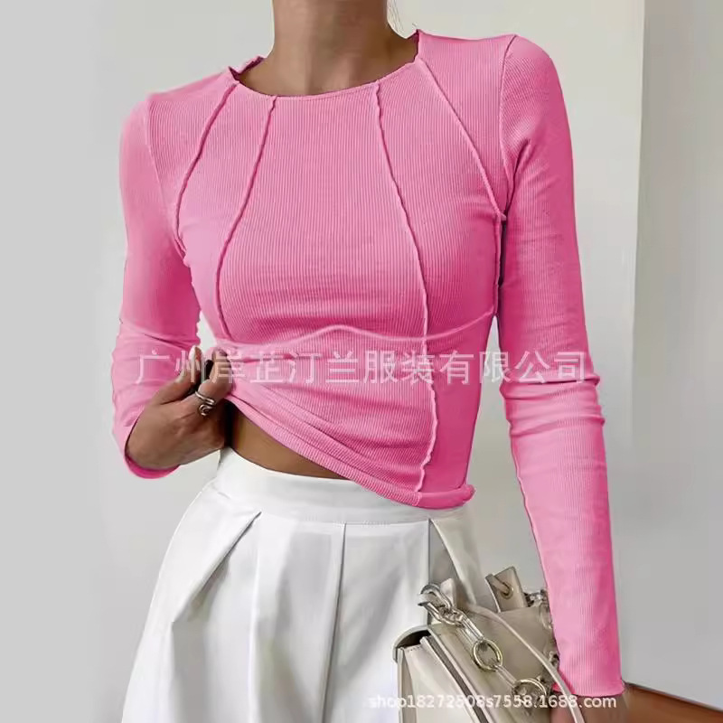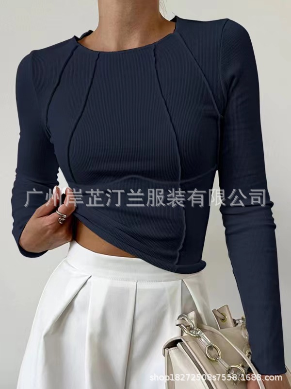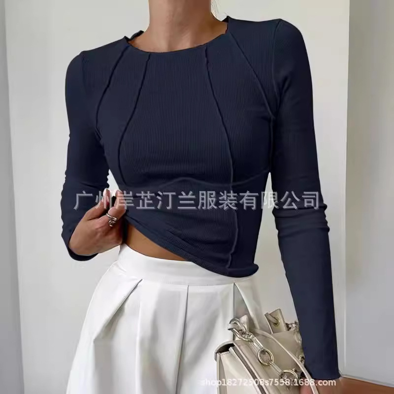 Главная страница > Amazon сплошной сплошной грудь с длинным рукавом с круглым вырезом футболка 2024 весна и осень Европа и США трансграничная внешняя торговля новый топ женский