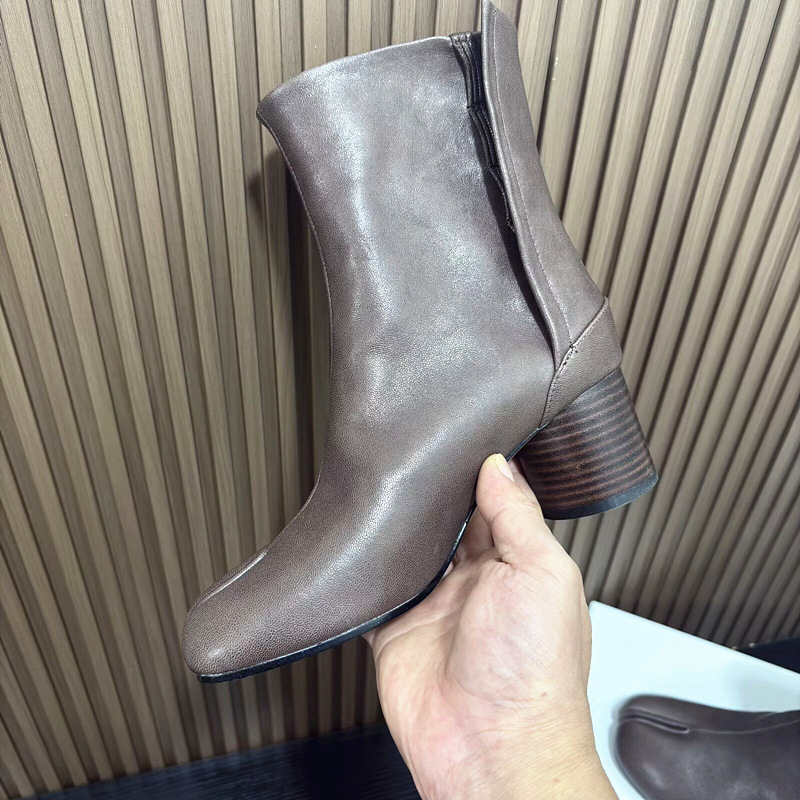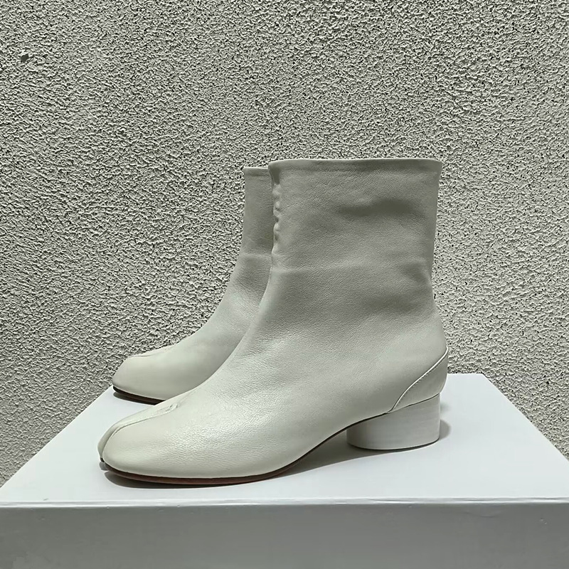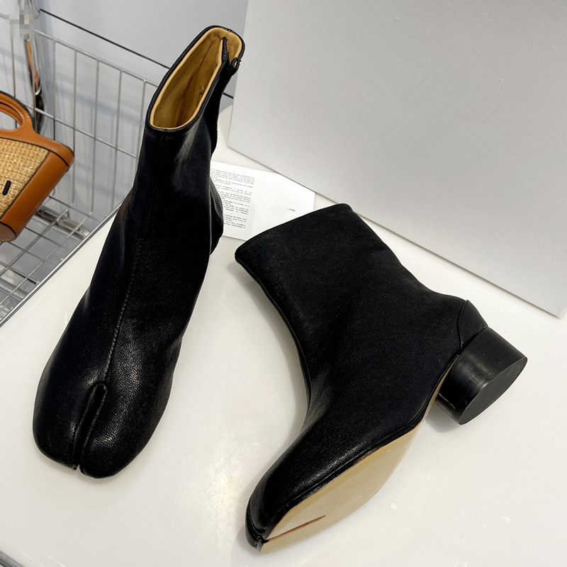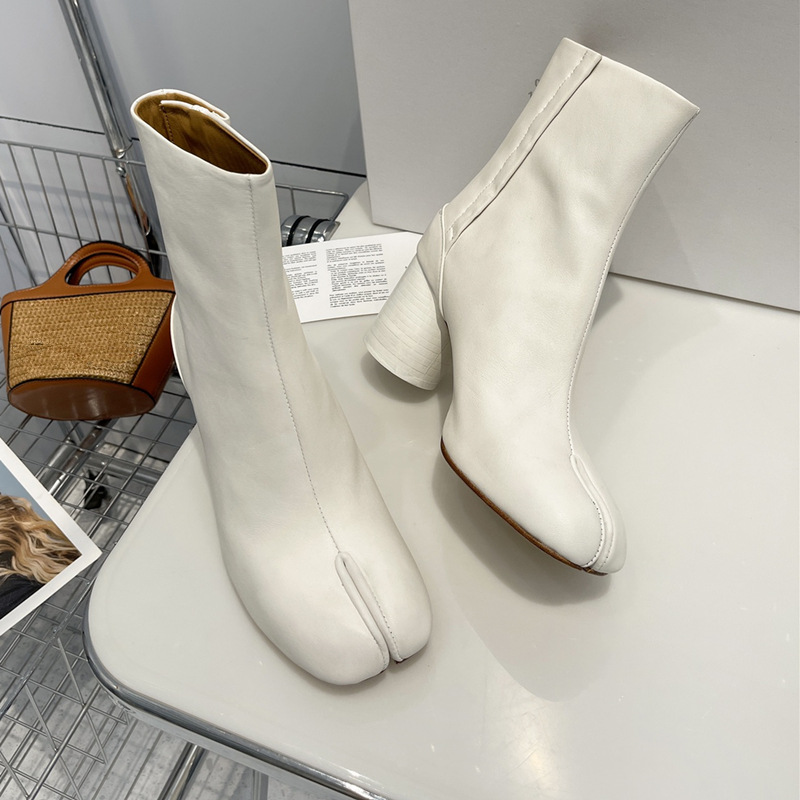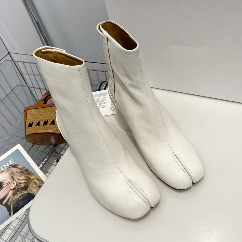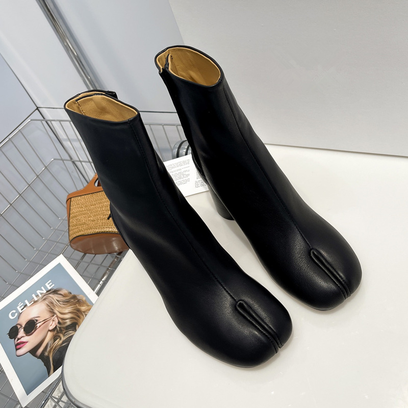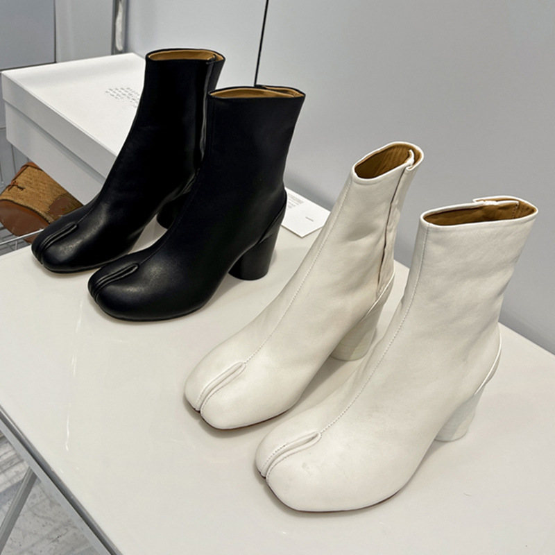 Главная страница > Роскошные женские туфли высокого класса MM6, женские ботинки до середины икры из козьей кожи, ботинки челси Margiela, женские короткие сапоги на высоком каблуке с разделенным носком