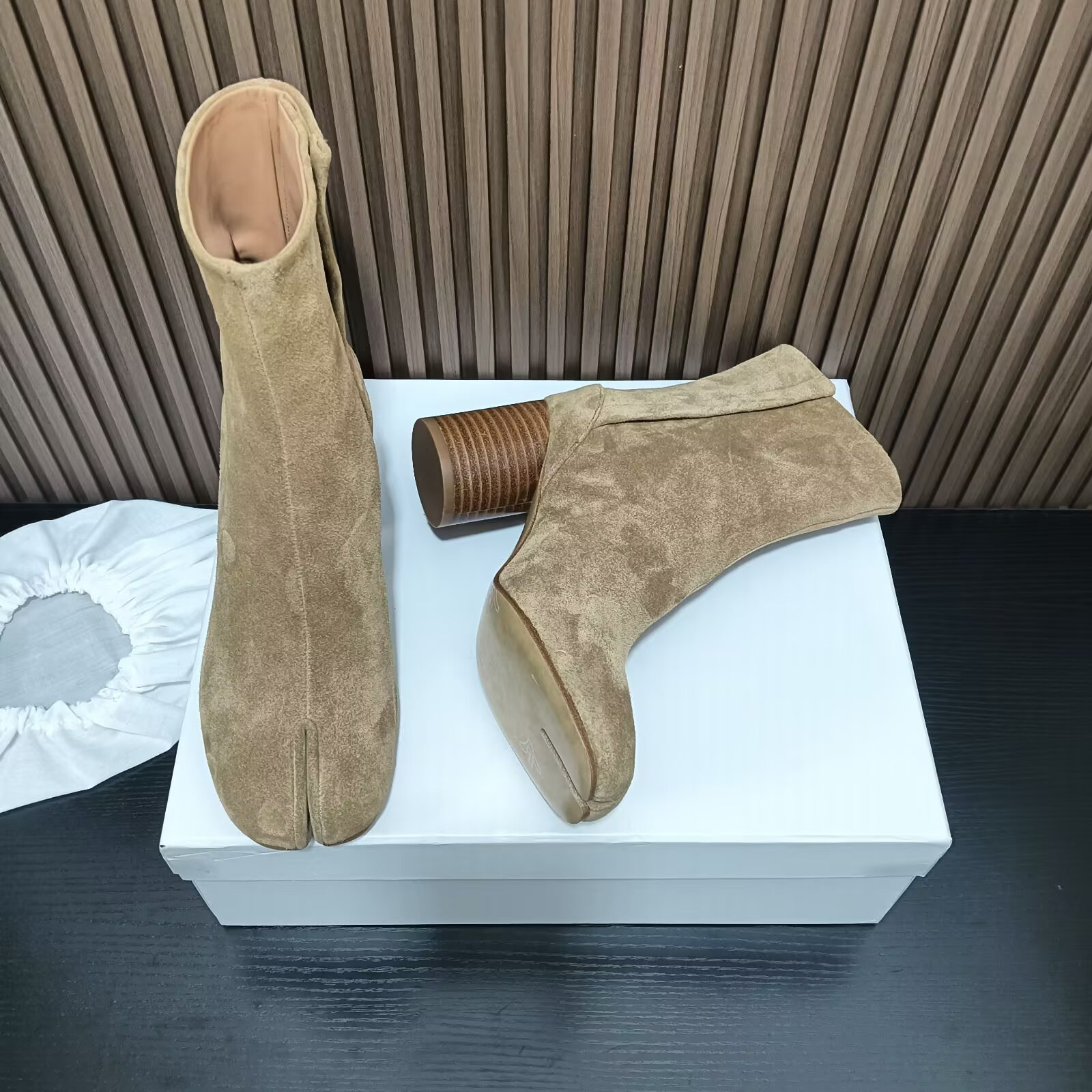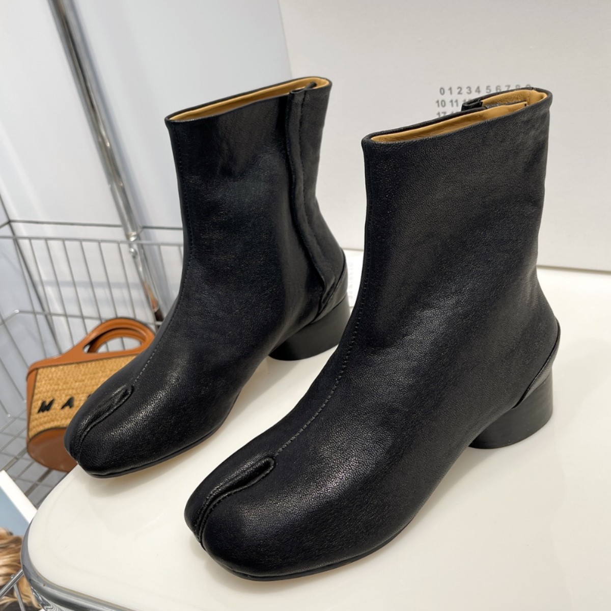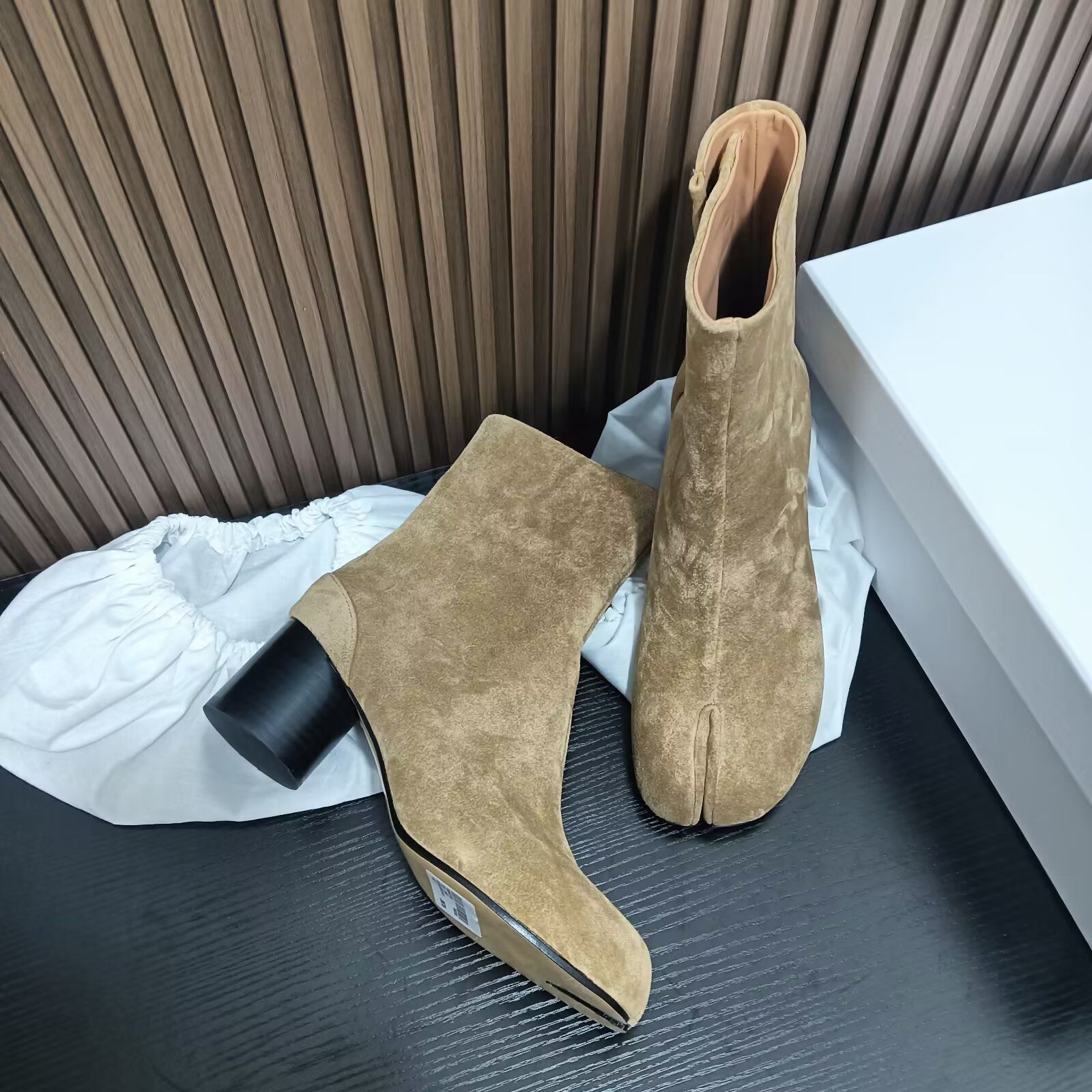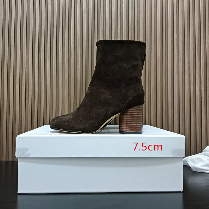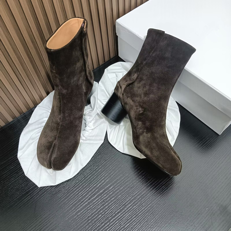 Главная страница > Роскошные женские туфли высокого класса MM6, женские ботинки до середины икры из козьей кожи, ботинки челси Margiela, женские короткие сапоги на высоком каблуке с разделенным носком