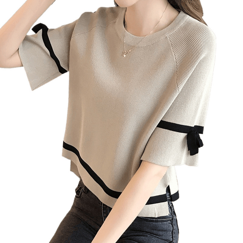 Главная страница > Женская новая летняя рубашка с короткими рукавами в корейском стиле с половиной рукавов из химического волокна/полиэстера с трикотажным низом