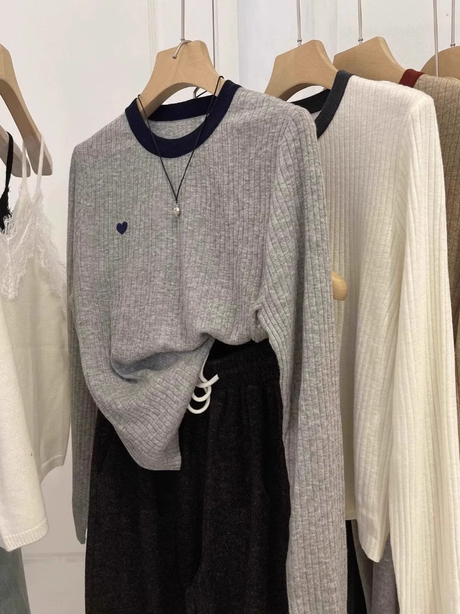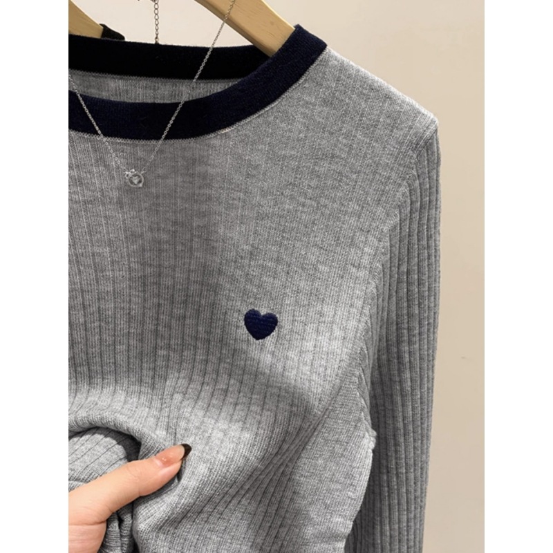 Темпераментный пригородной ленивый ветер вышитый любовный свитер нижняя рубашка женская свободная осень тонкая цветовая рубашка