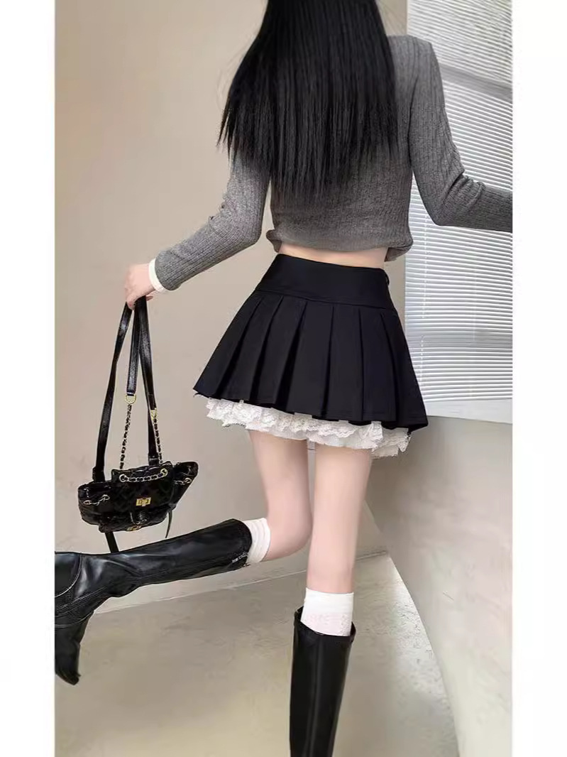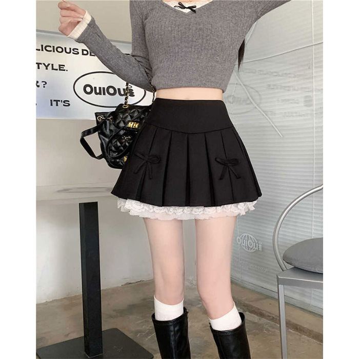 Чистый ветер кружева пряная девушка с бантиком кружева серые юбки половинки женские ранние весенние юбки с высокой талией