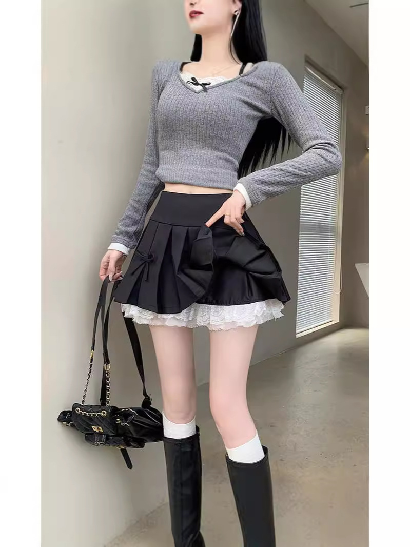 Главная страница > Чистый ветер кружева пряная девушка с бантиком кружева серые юбки половинки женские ранние весенние юбки с высокой талией