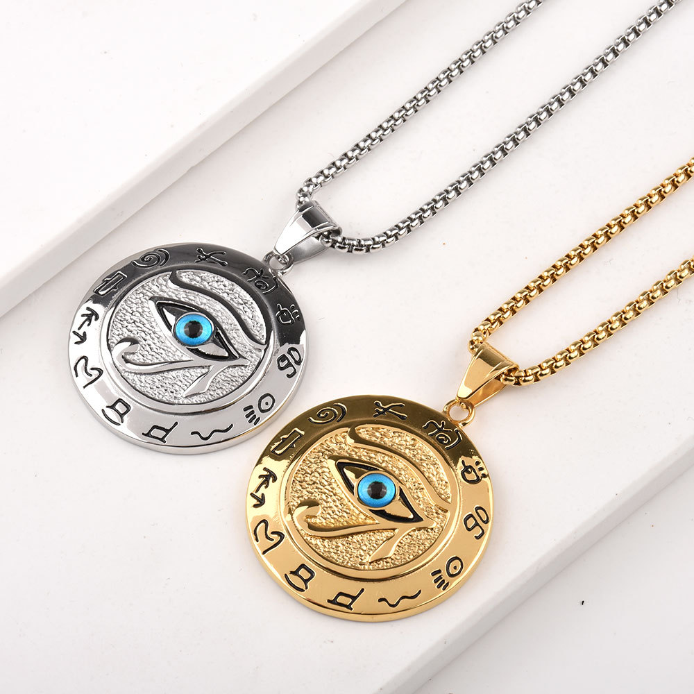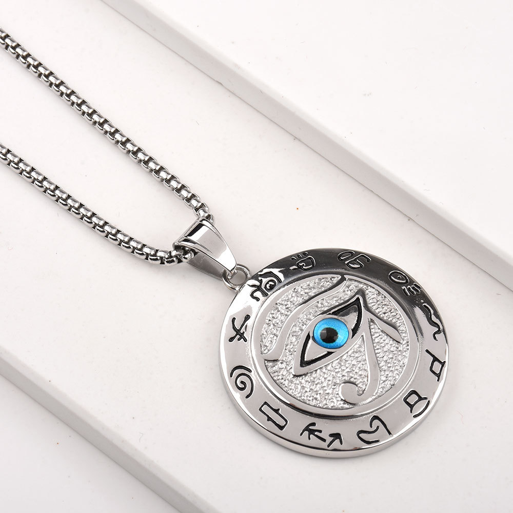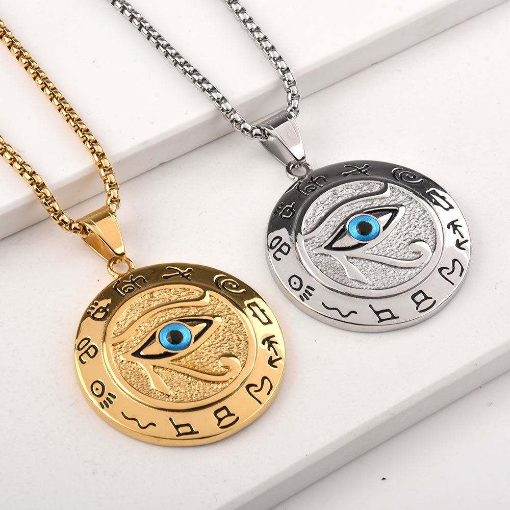 Главная страница > Новый Древний Египет Глаз Гора Титановая Сталь Кулон Мода личность тренд круглое Брендовое ожерелье ювелирные изделия