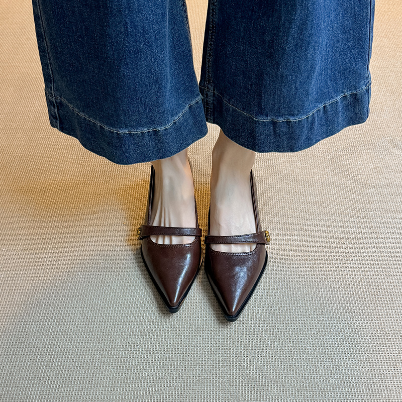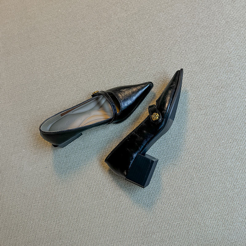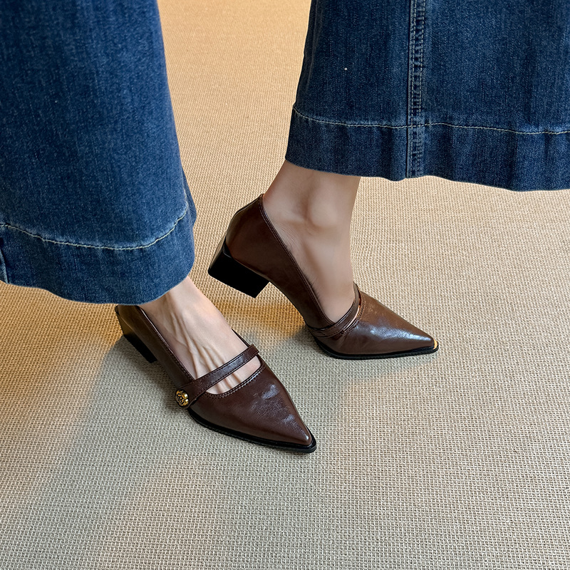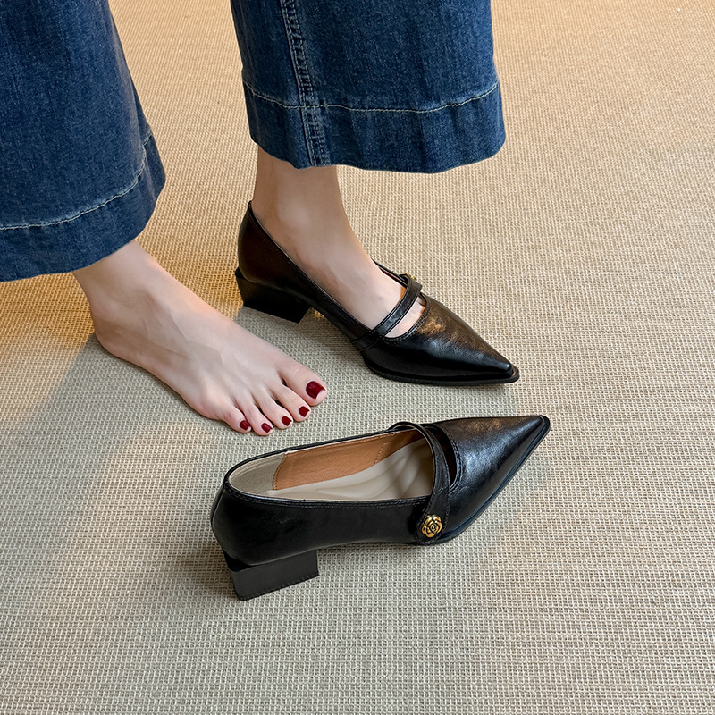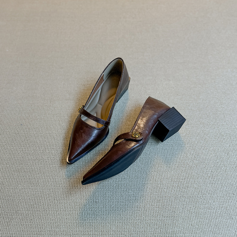 Главная страница > Мягкая кожаная версия ~ Ретро туфли на высоких каблуках на высоком каблуке женская камелия с толстыми каблуками