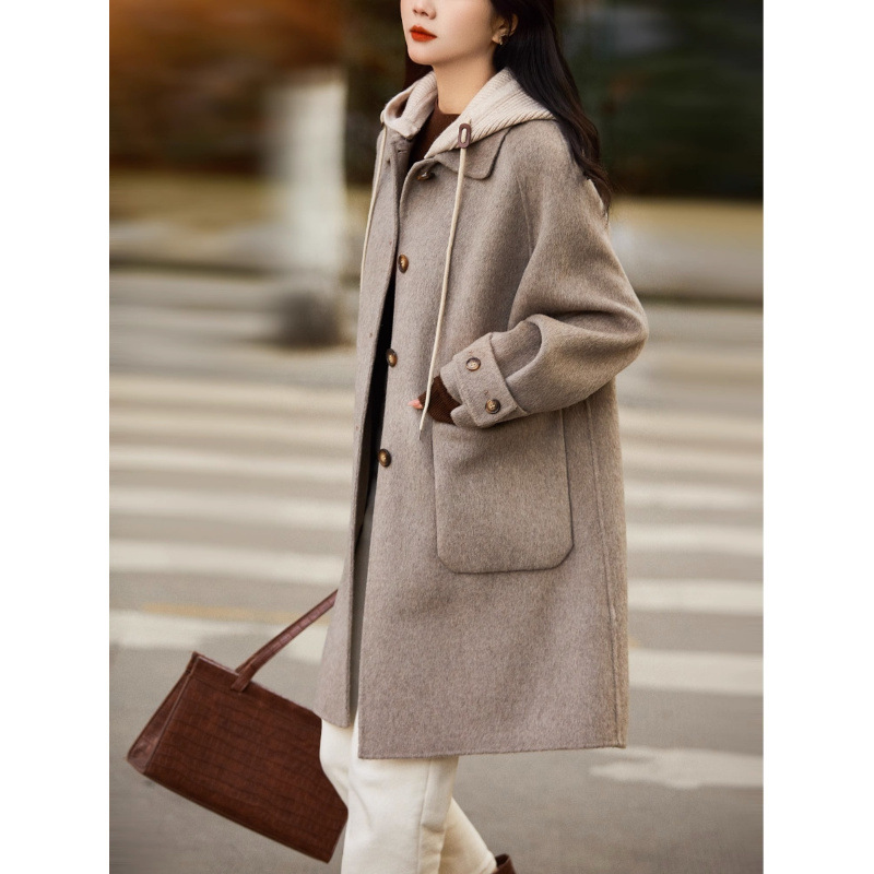Главная страница > Пятно 2024 осень и зима новая шерстяная шерстяная куртка женская ленивая элегантная и уменьшая возраст с капюшоном шерстяная куртка женская