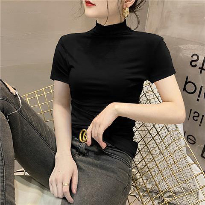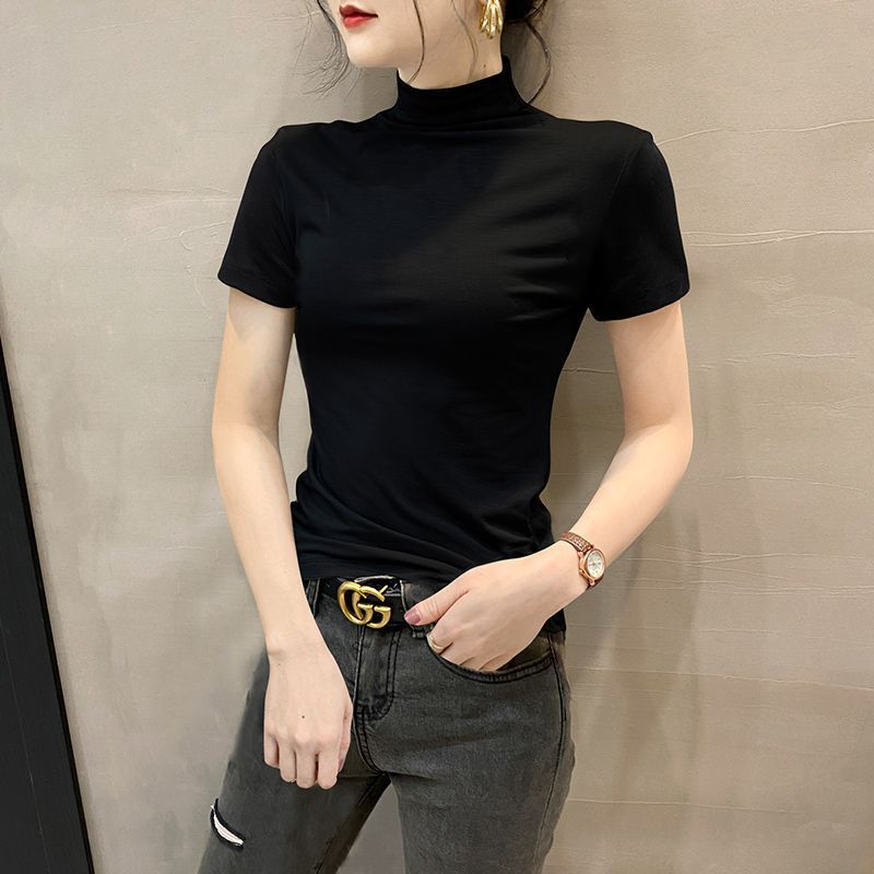 Главная страница > Черная женская футболка из модала, с короткими рукавами, новая летняя рубашка с полугольфом, обтягивающий топ, модный