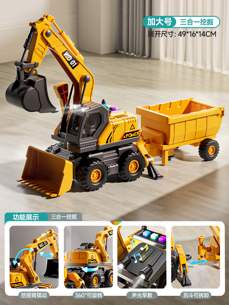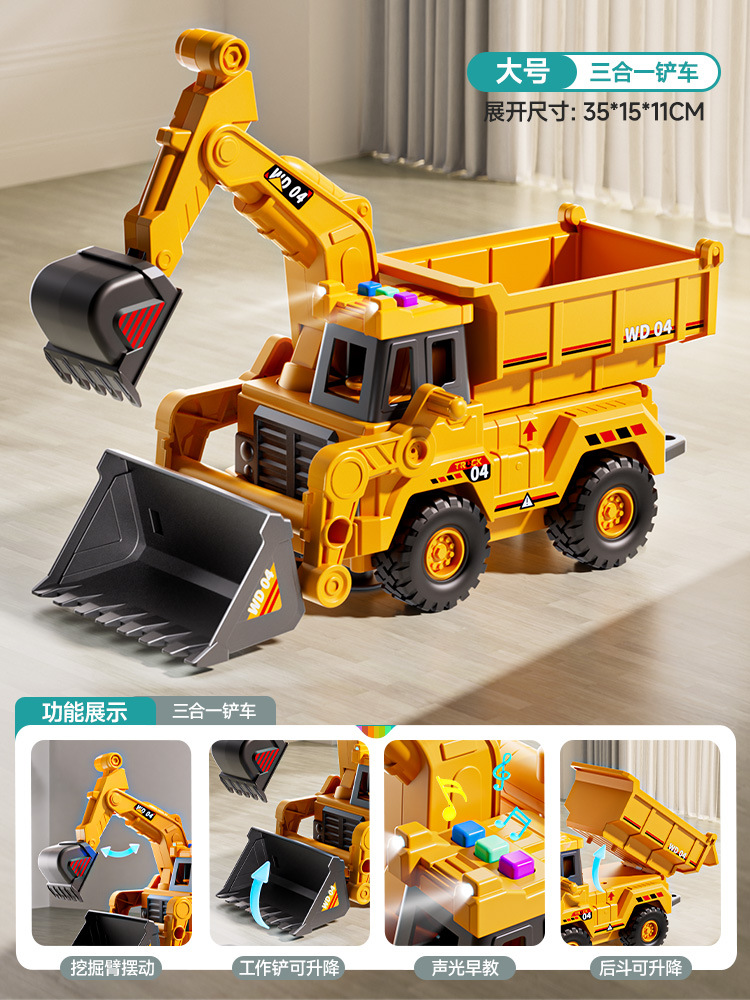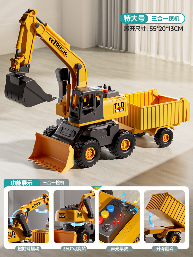 Большой [3-в-1 — подарочная коробка] Звуковой и световой экскаватор (экскаватор + бульдозер + самосвал)