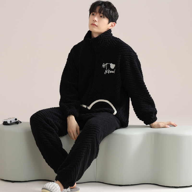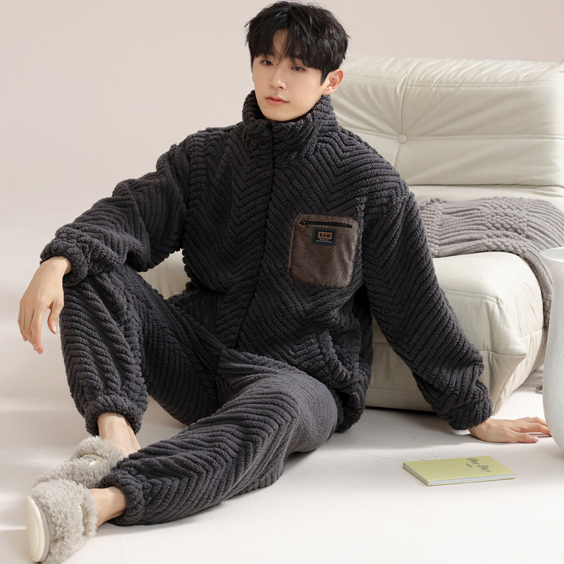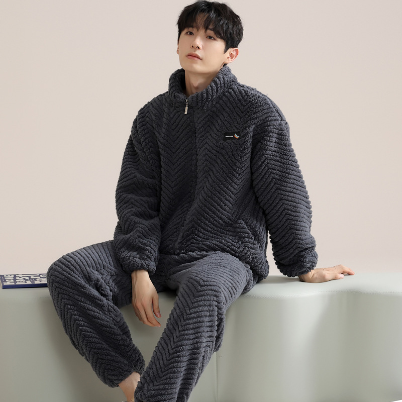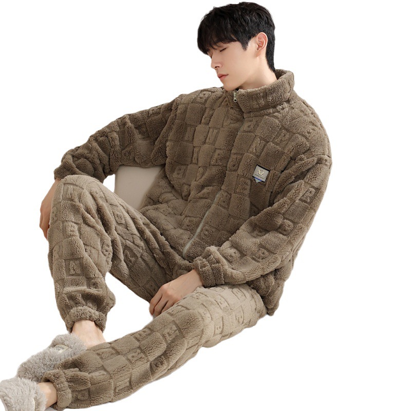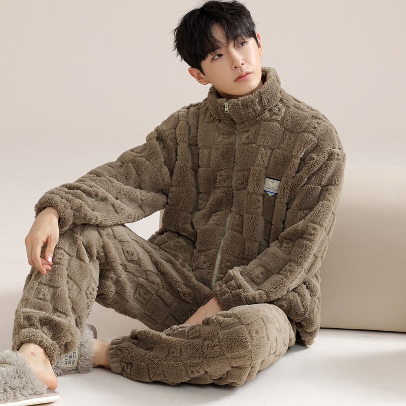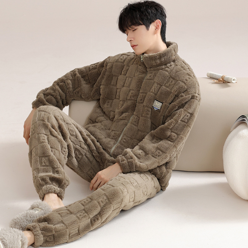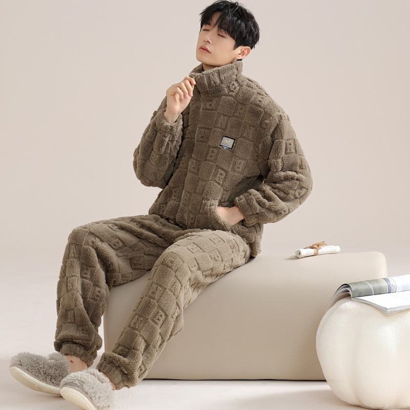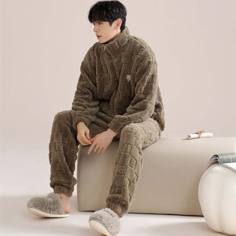 Главная страница > Осенне-зимняя Пижама, Мужская жаккардовая бархатная Повседневная утолщенная теплая одежда больших размеров, фланелевая Домашняя одежда с высоким воротником на молнии