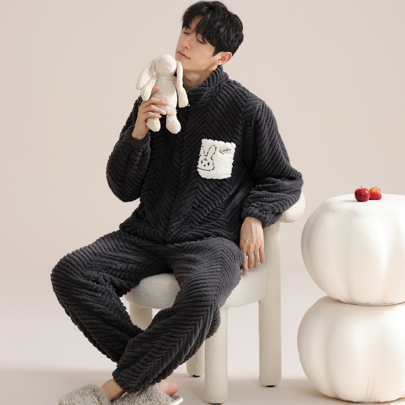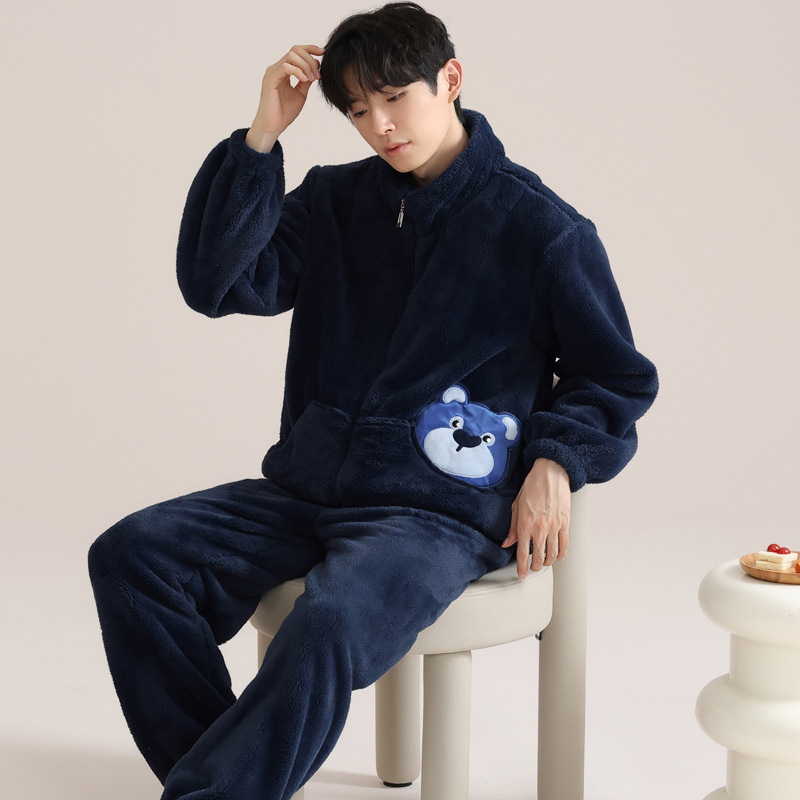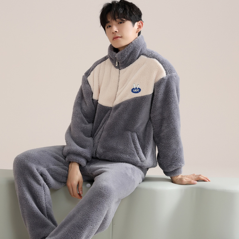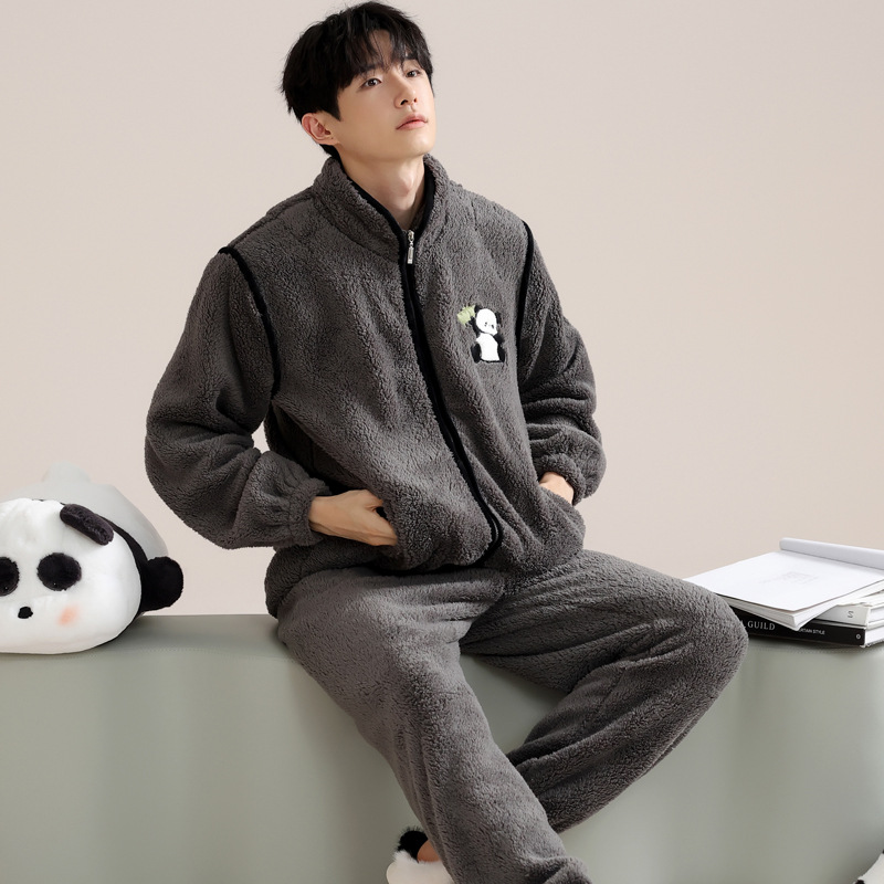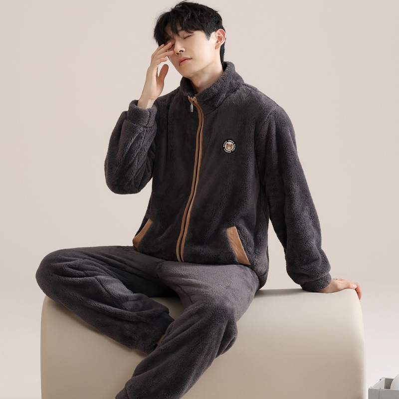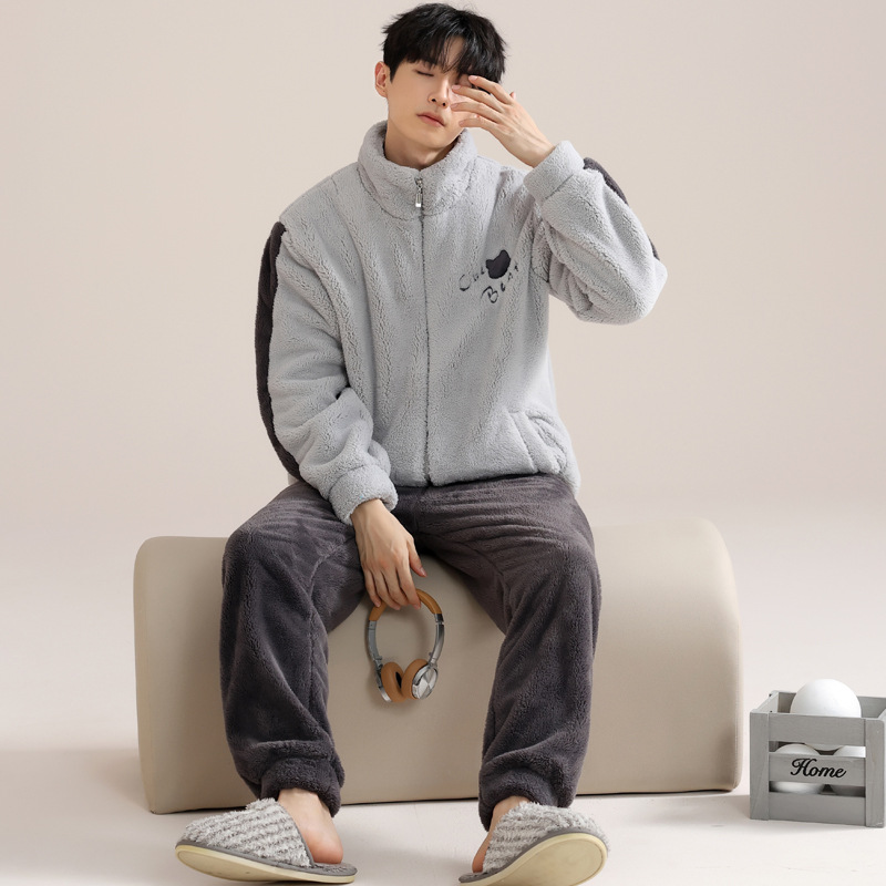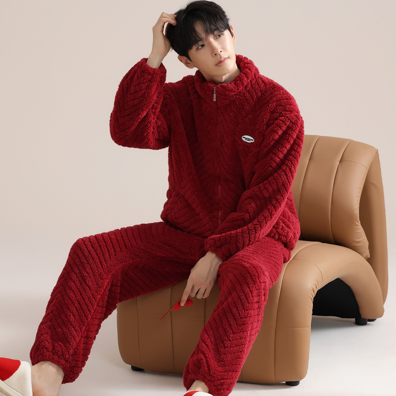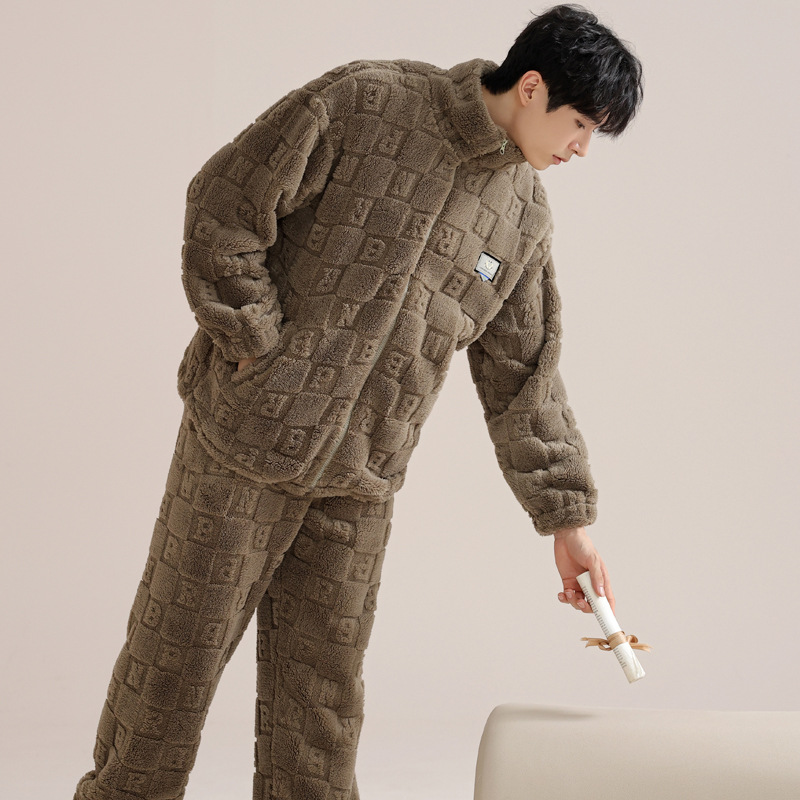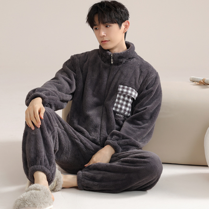Главная страница > Осенне-зимняя Пижама, Мужская жаккардовая бархатная Повседневная утолщенная теплая одежда больших размеров, фланелевая Домашняя одежда с высоким воротником на молнии
