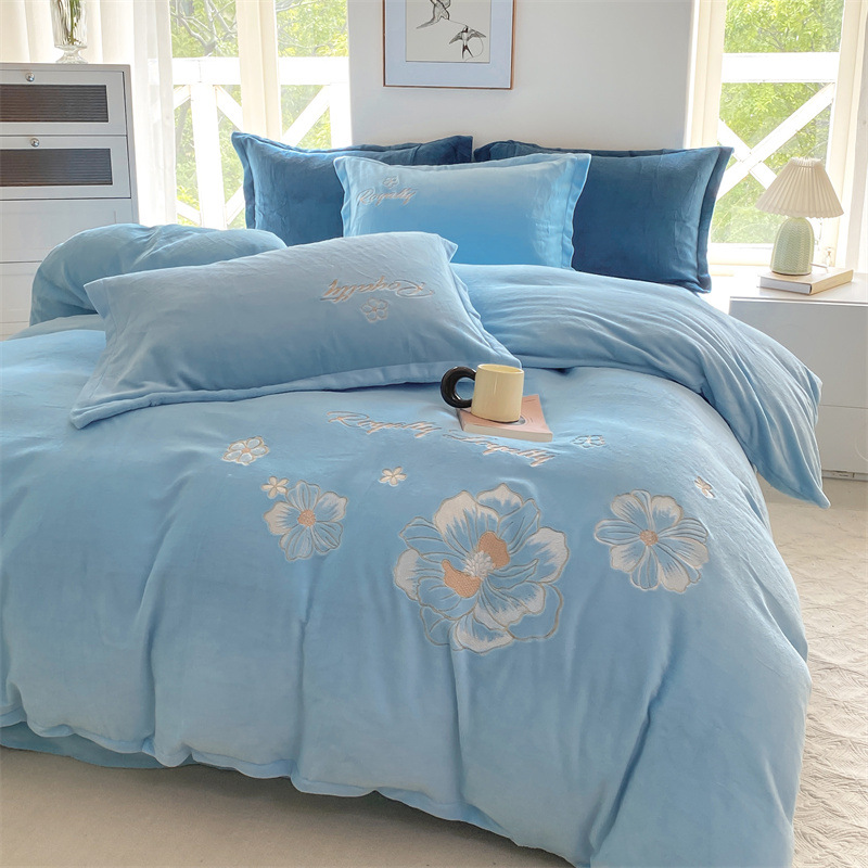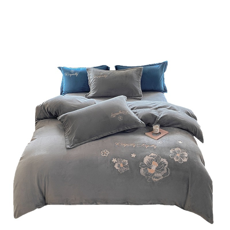 Прямая трансляция популярного молочного бархата класса А, комплект из четырех предметов, зимние утолщенные простыни, приятные для кожи, мягкие и теплые пододеяльники, оптовая доставка