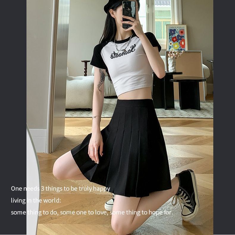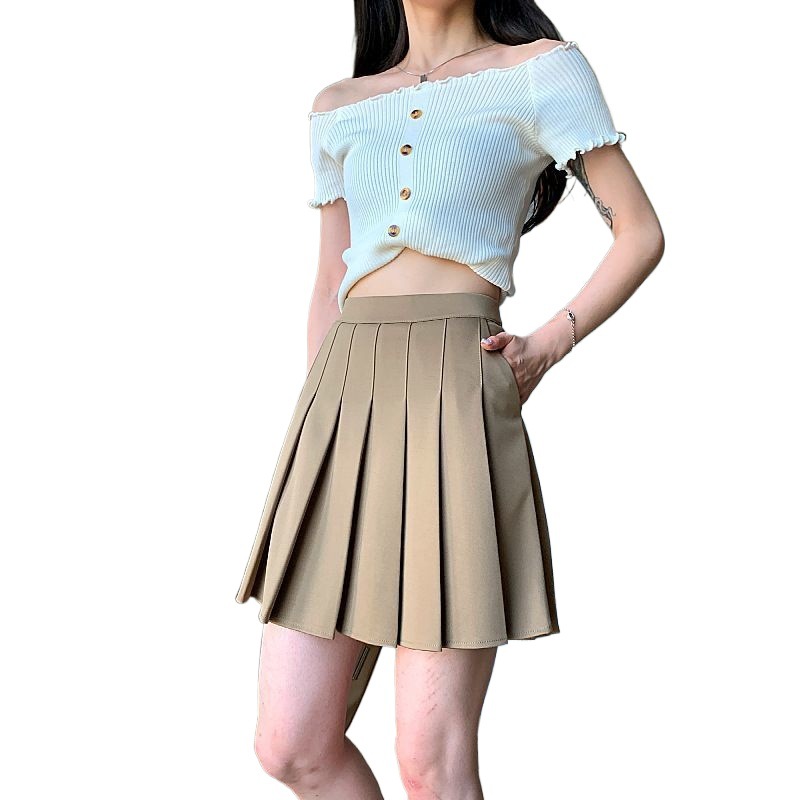 Главная страница > Плиссированная юбка с эластичной талией и карманами для женщин, новая универсальная короткая эластичная юбка трапециевидной формы с высокой талией в корейском стиле для осени и зимы.