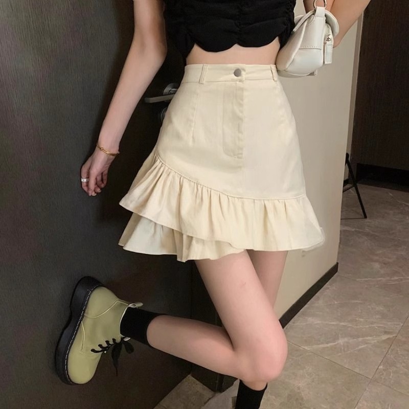 Главная страница > 2025 весна и лето новая юбка бюст белая джинсовая нерегулярная оборка