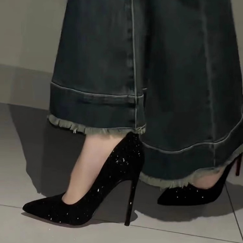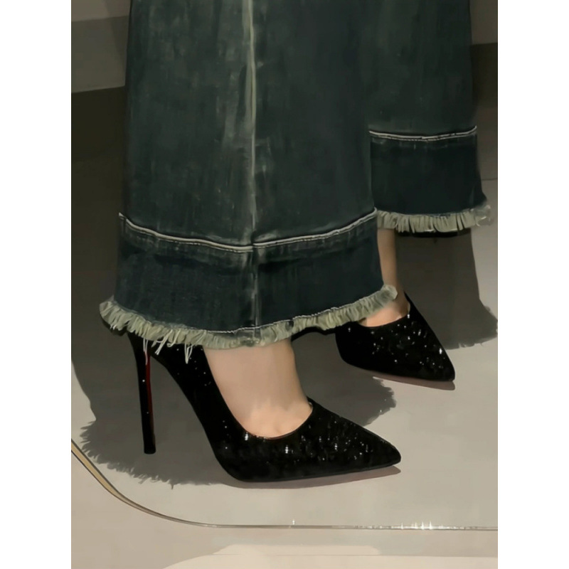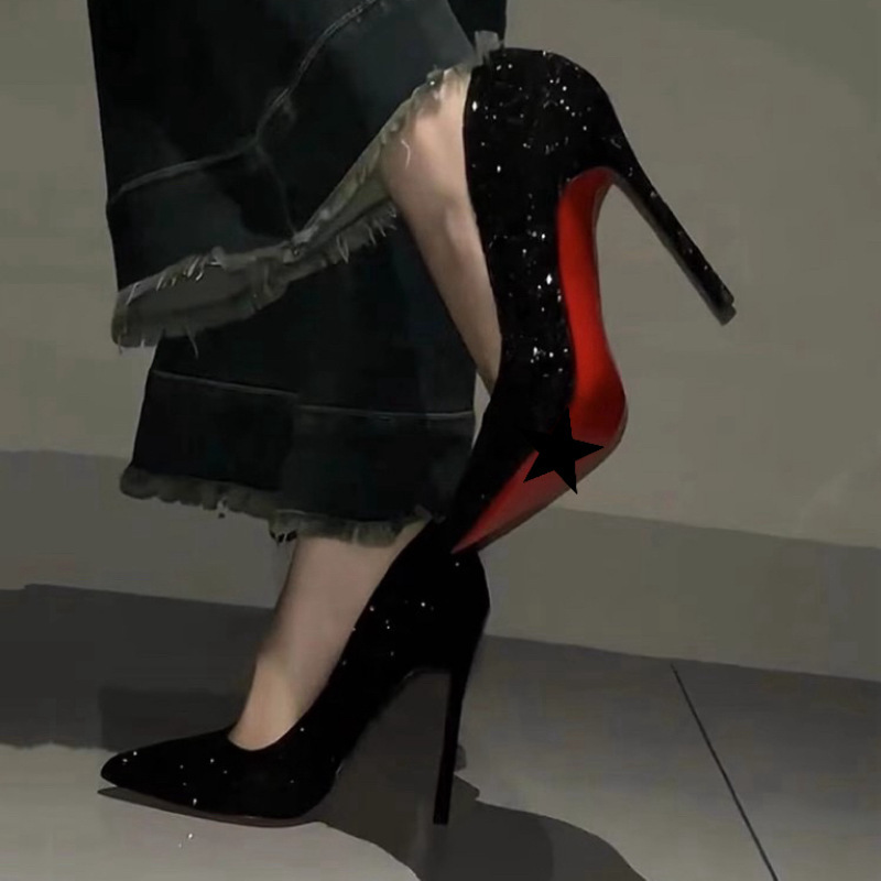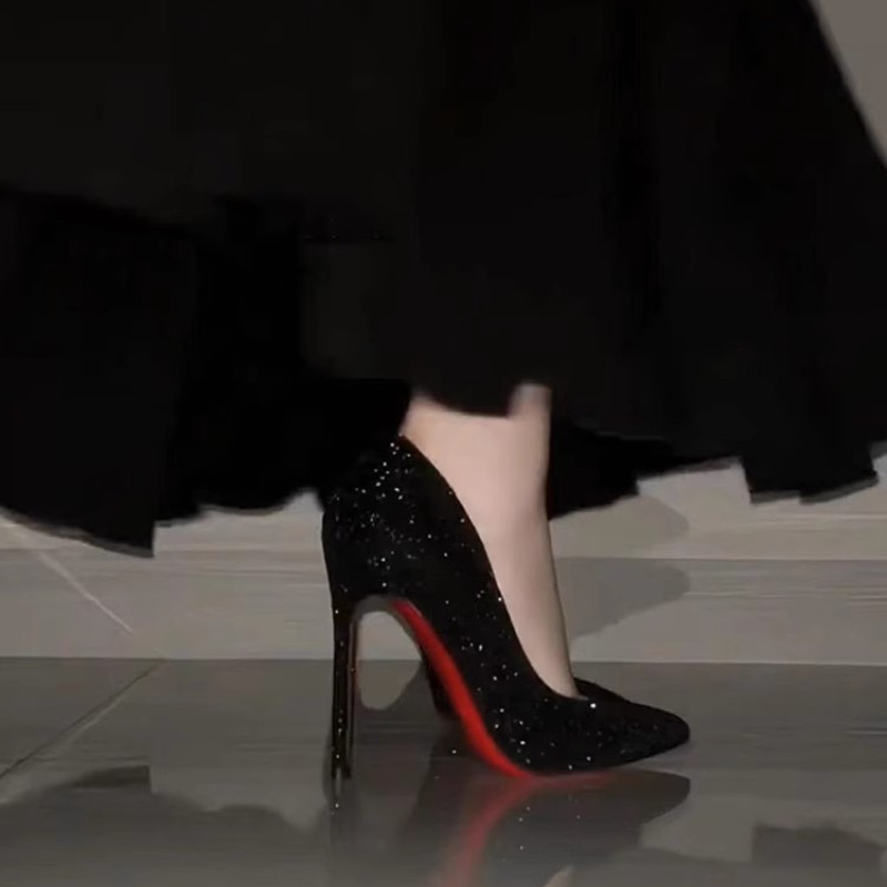 Главная страница > Женские туфли-стилето с красной подошвой и пайетками, весна-лето 2025, новые черные, сексуальные, с заостренным носком, профессиональный элегантный стиль