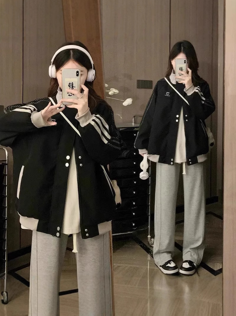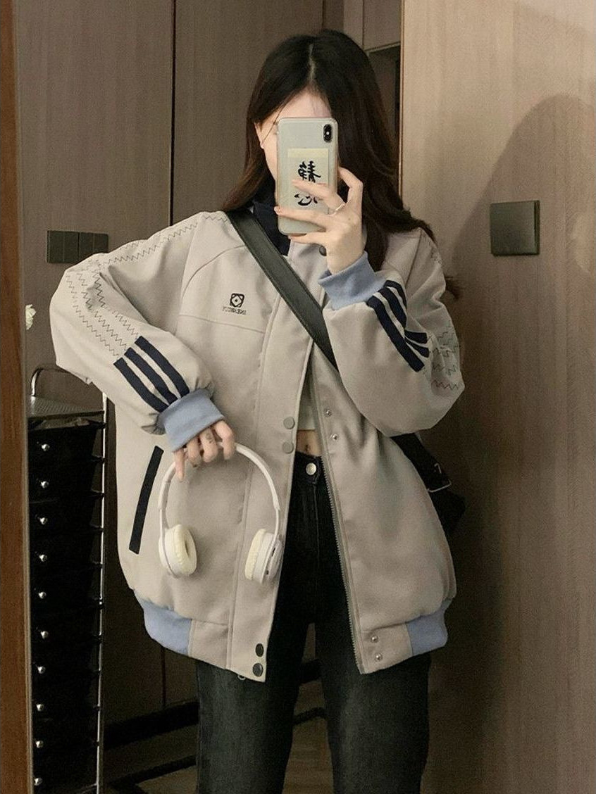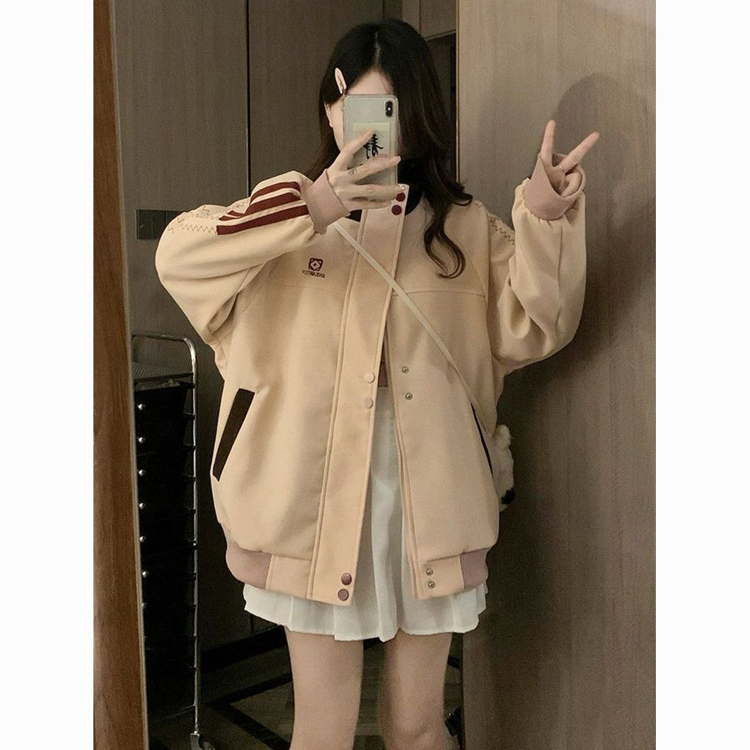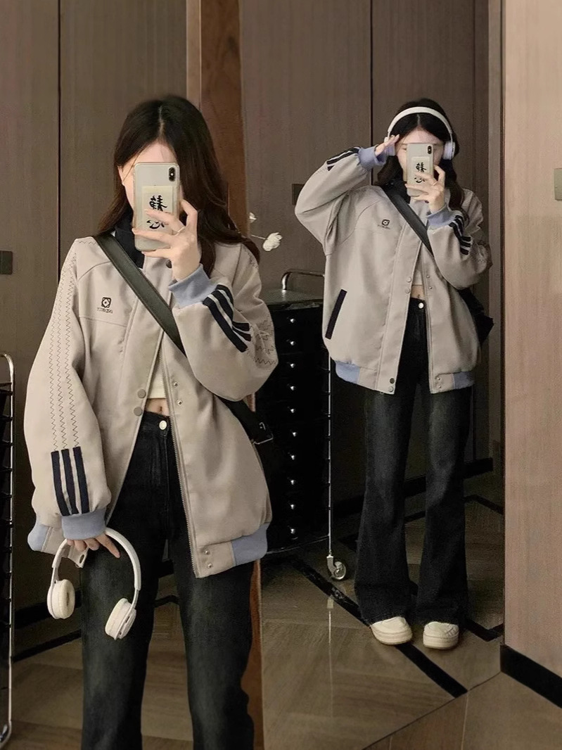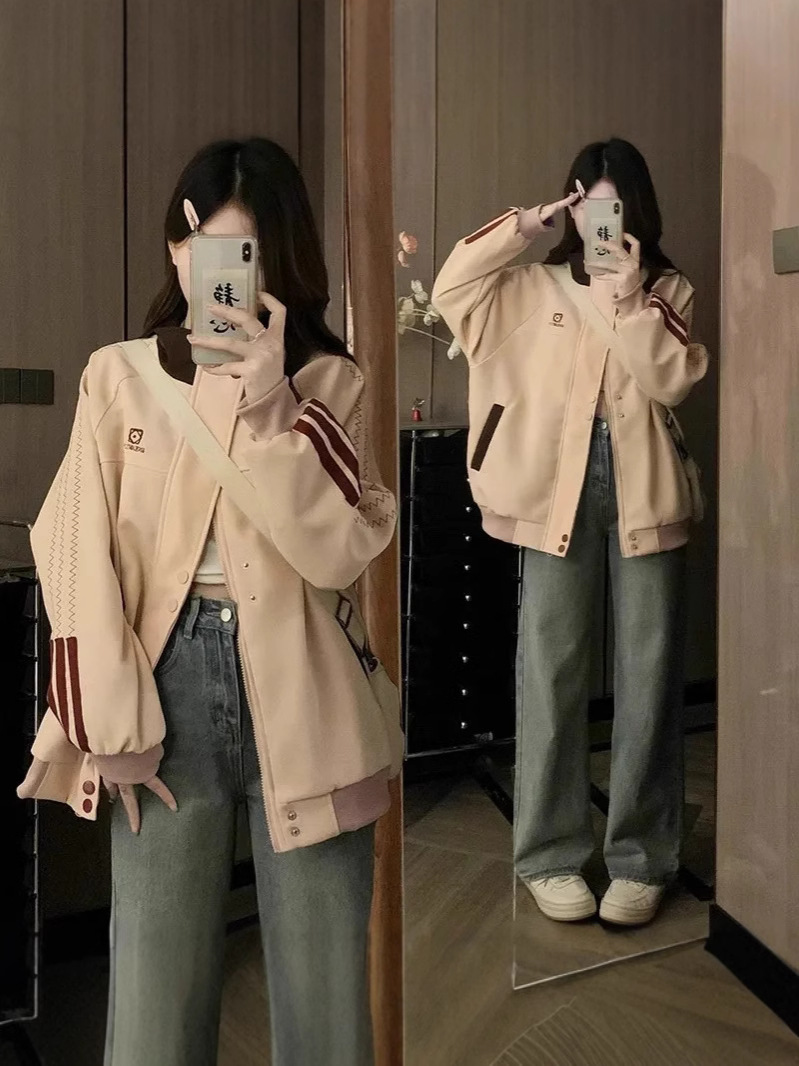 Главная страница > Американская ретро-буквенные вышивка с шитым воротником куртка женская весна спортивный стиль повседневная пара однобортная куртка прилив