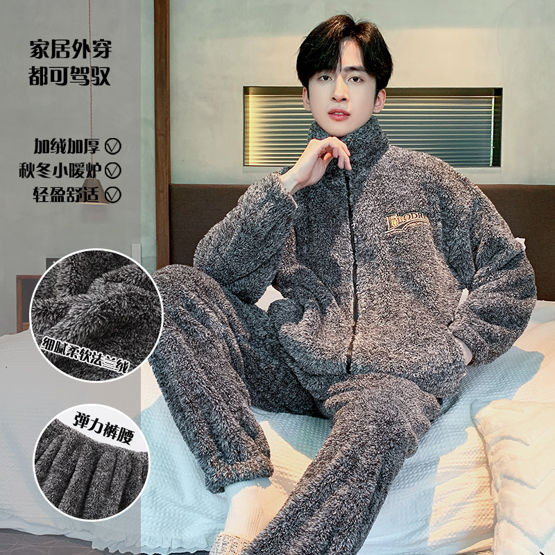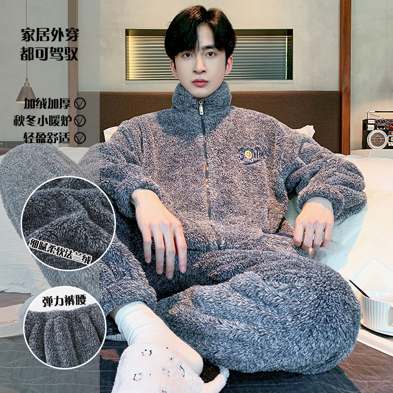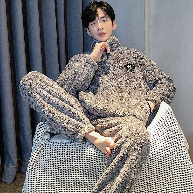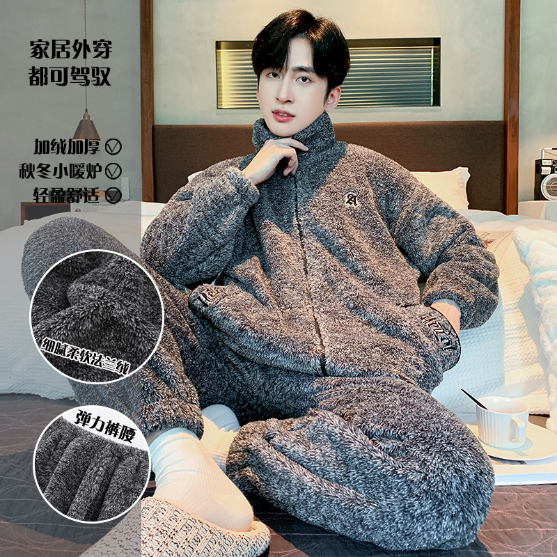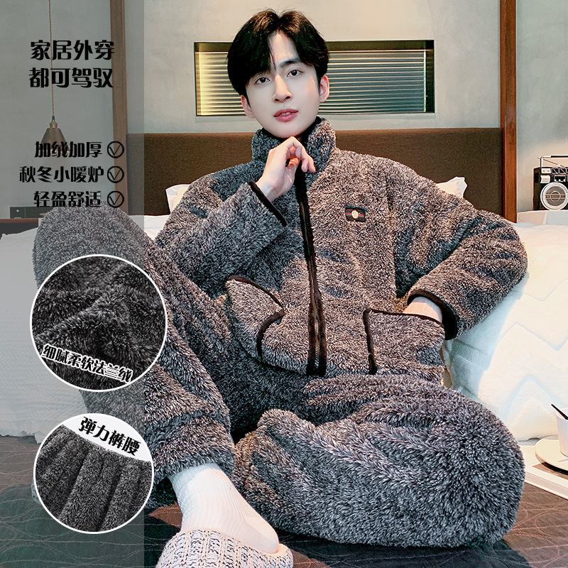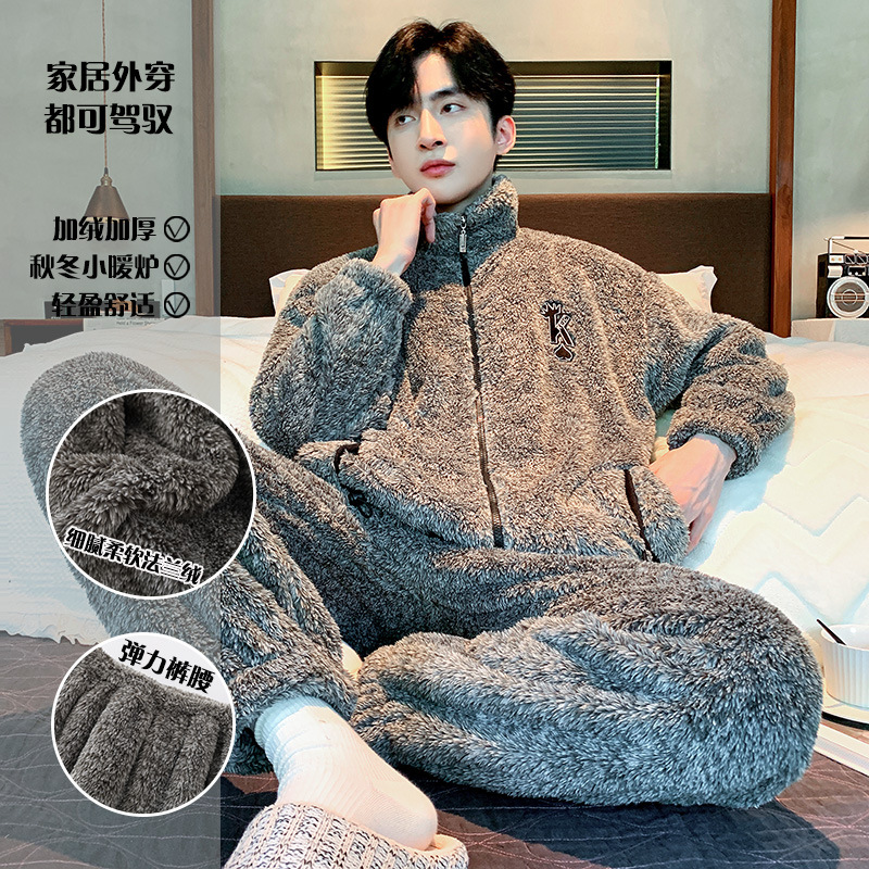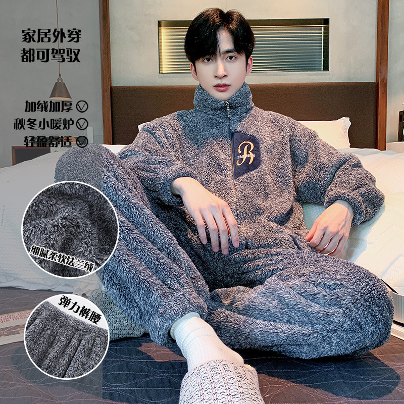 Главная страница > Специальные зимние мужские плюшевые пижамы на молнии воротник толстый коралловый бархат