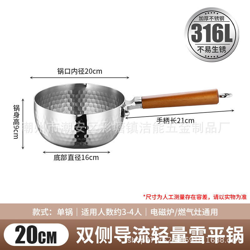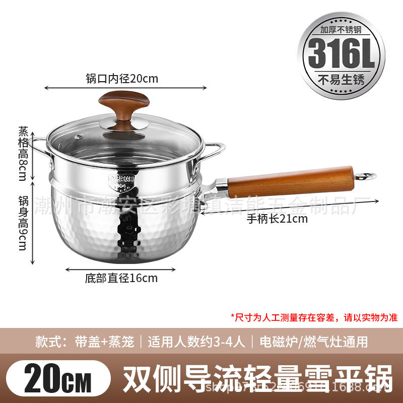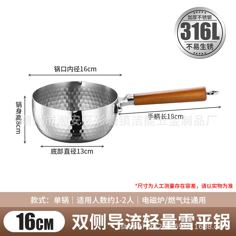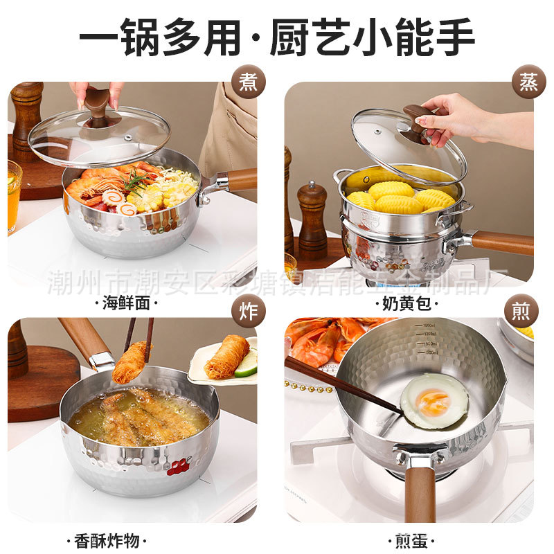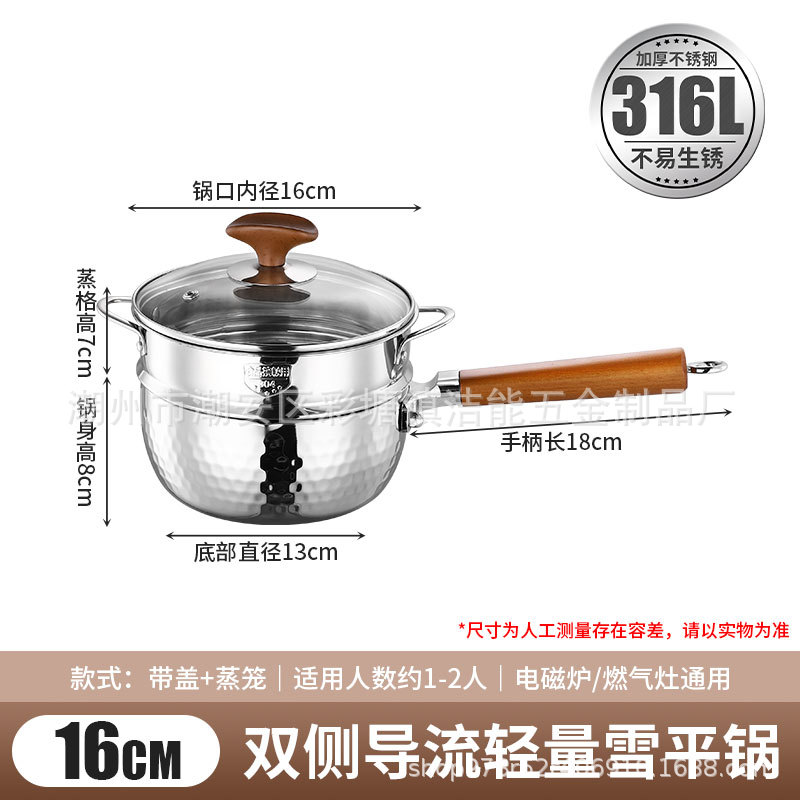 Непокрытая утолщенная нержавеющая сталь 316, кастрюля для детского питания, мгновенная лапша, универсальная кастрюля для завтрака, кастрюля для супа на пару, кастрюля Yukihira в японском стиле