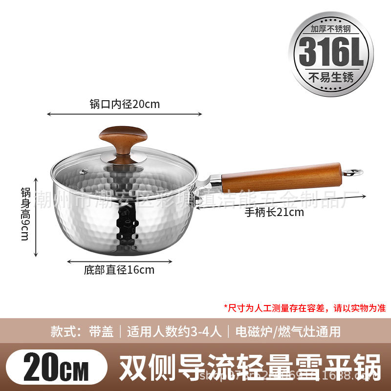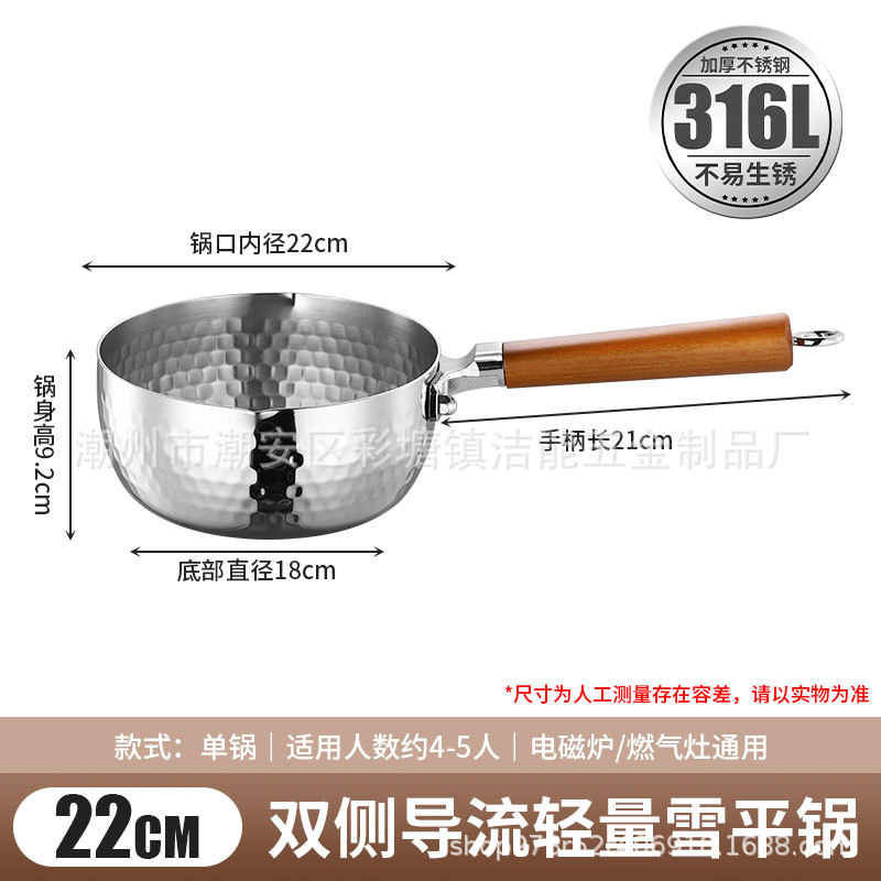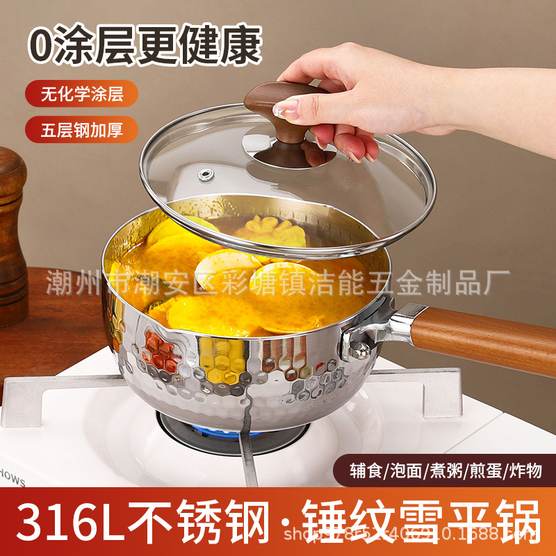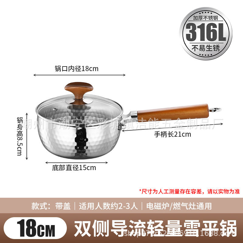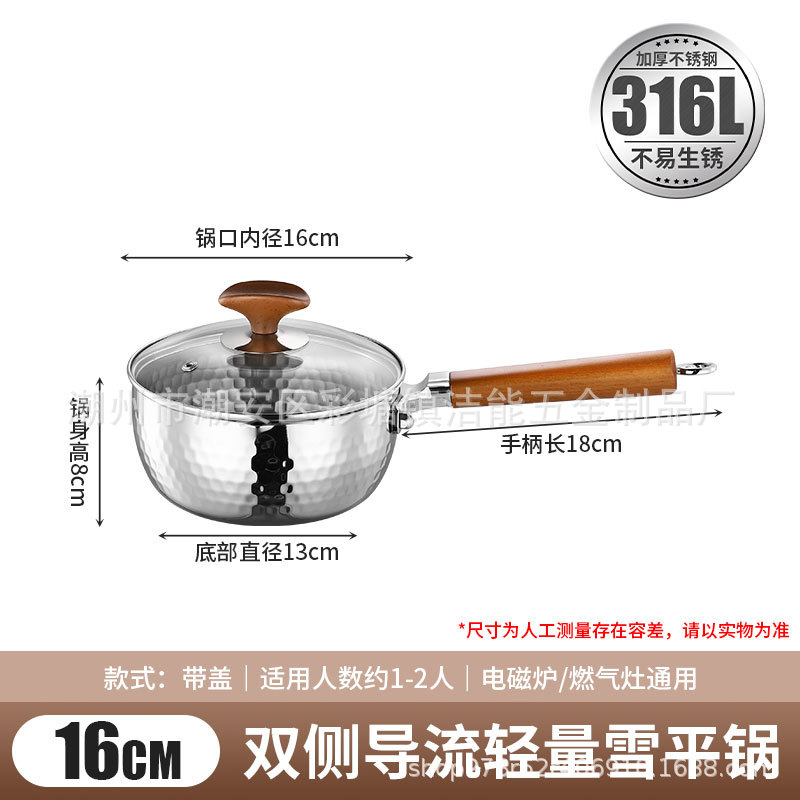 Непокрытая утолщенная нержавеющая сталь 316, кастрюля для детского питания, мгновенная лапша, универсальная кастрюля для завтрака, кастрюля для супа на пару, кастрюля Yukihira в японском стиле