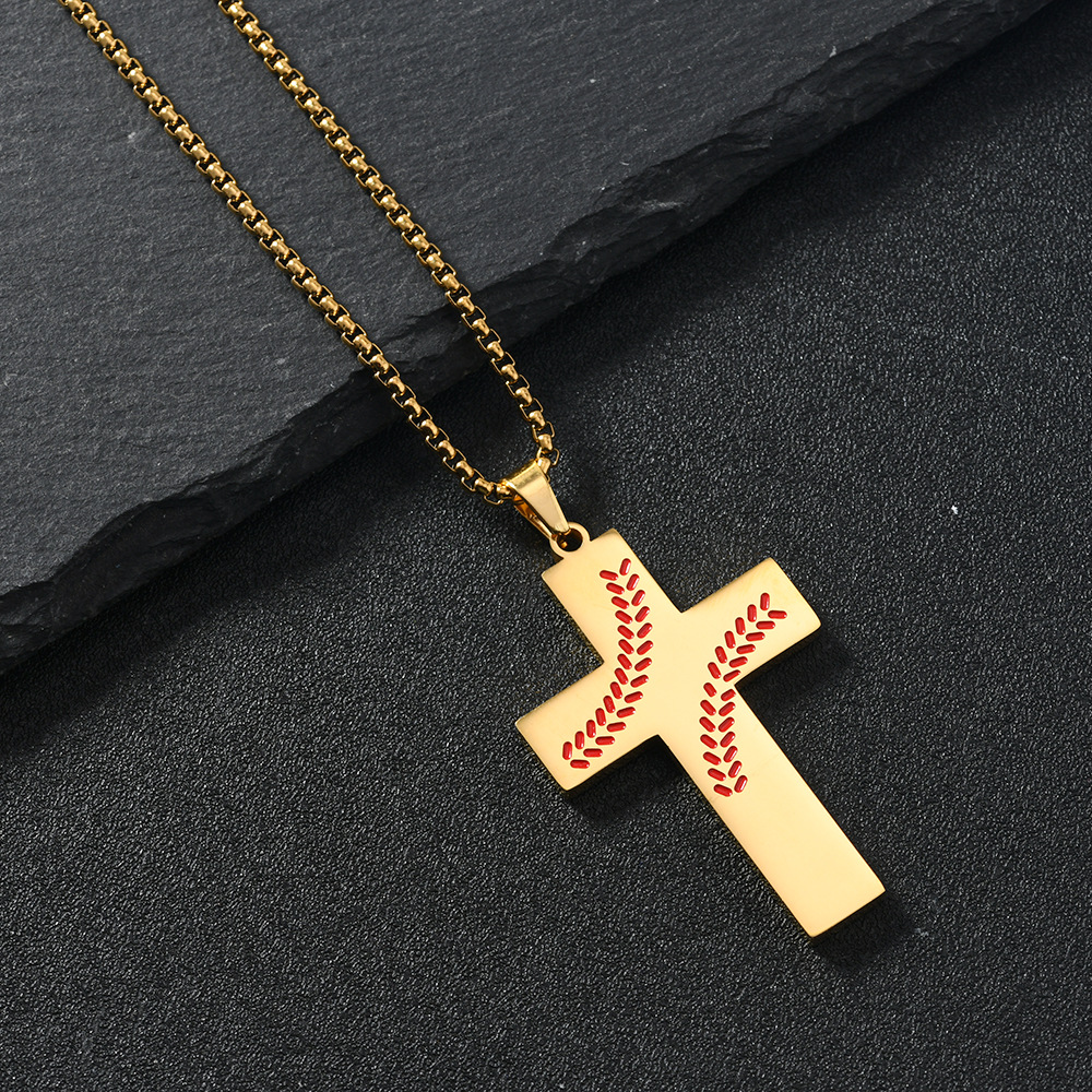 Европейское и американское пасхальное бейсбольное ожерелье спортивный стиль прилив мужской капли красного масла пшеничные колосья крест ожерелье кулон
