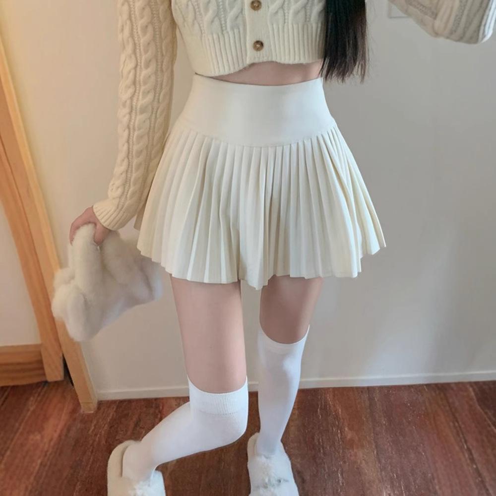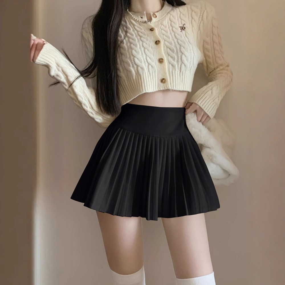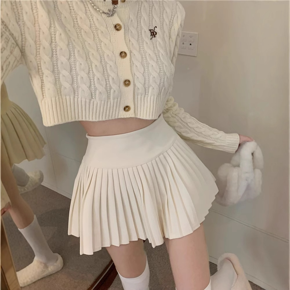 Главная страница > Белая юбка с половинкой женская летняя плиссированная юбка 2025 новая весенняя юбка