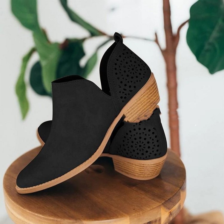 Главная страница > 2020 осень и зима Новые полые короткие сапоги больших размеров для европейской и американской внешней торговли Ботинки Martin с острым Низким Каблуком Производители женской обуви