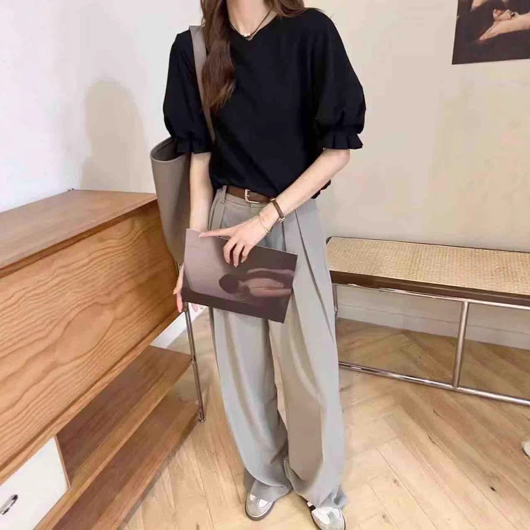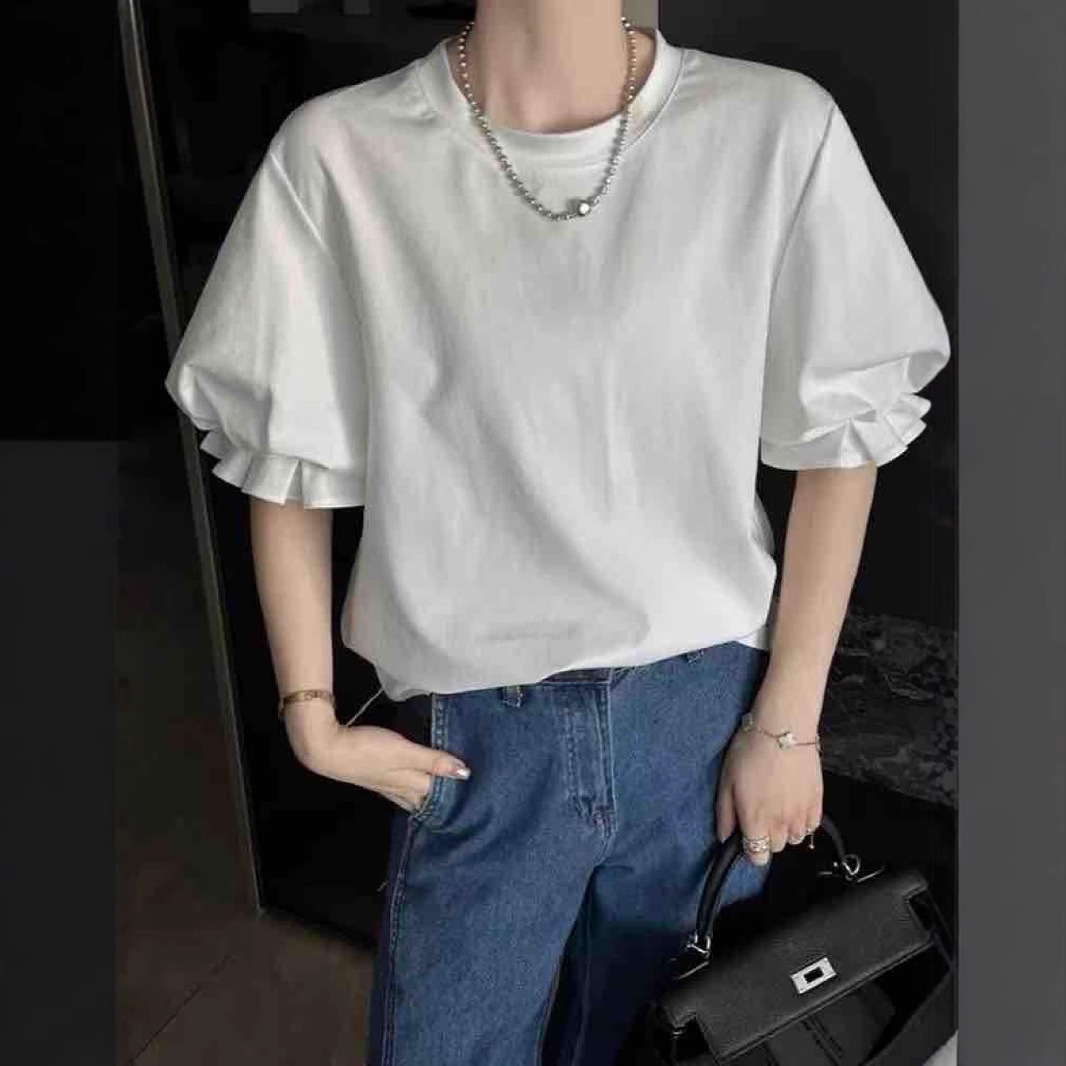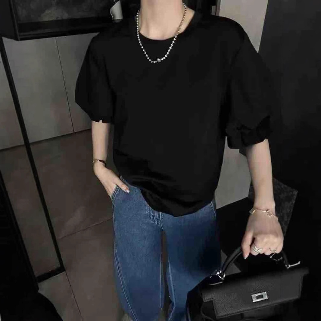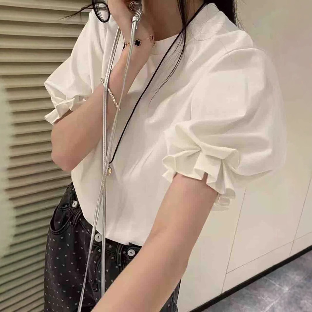 Главная страница > 2025 новый дизайн, нишевая футболка с пышными рукавами и цветочным принтом, женская свободная хлопковая рубашка с короткими рукавами, топ 6301