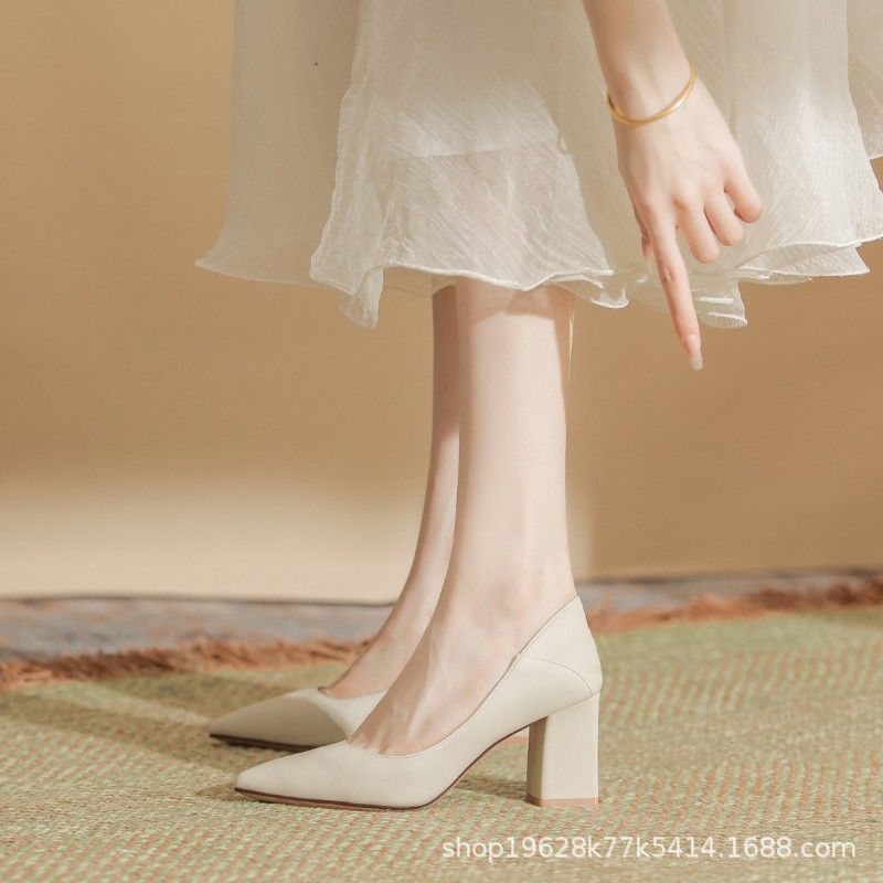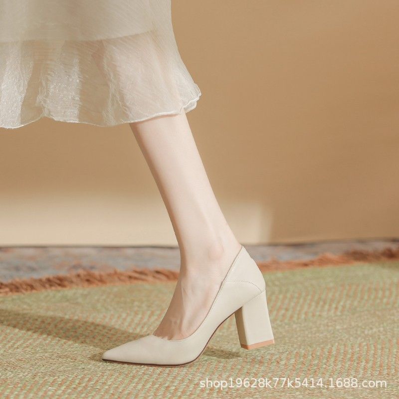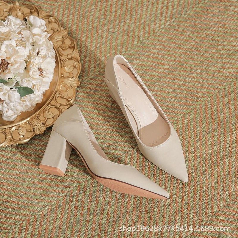 Главная страница > Женские туфли на высоком каблуке во французском стиле, с круглым носком и одной лямкой, новинка весны 2024 года, элегантные, из мягкой кожи, удобные туфли-лодочки на толстом каблуке.