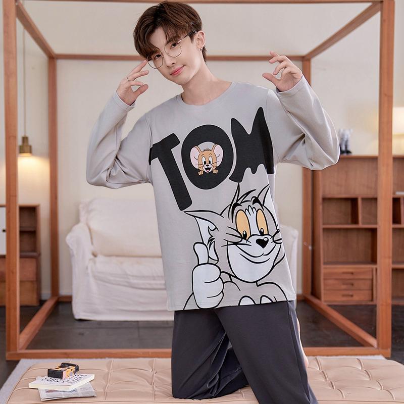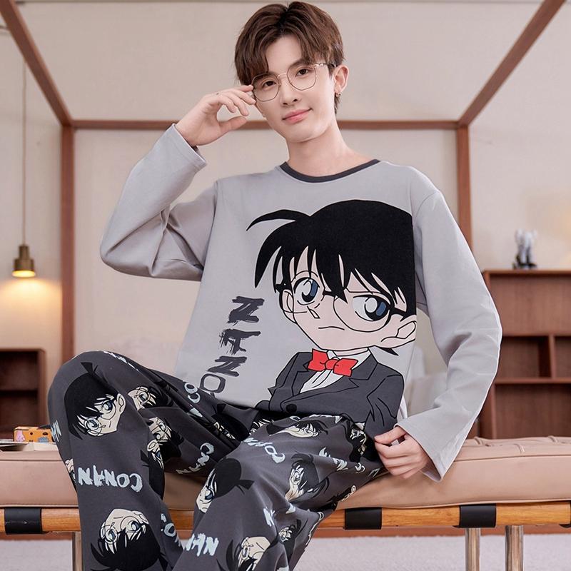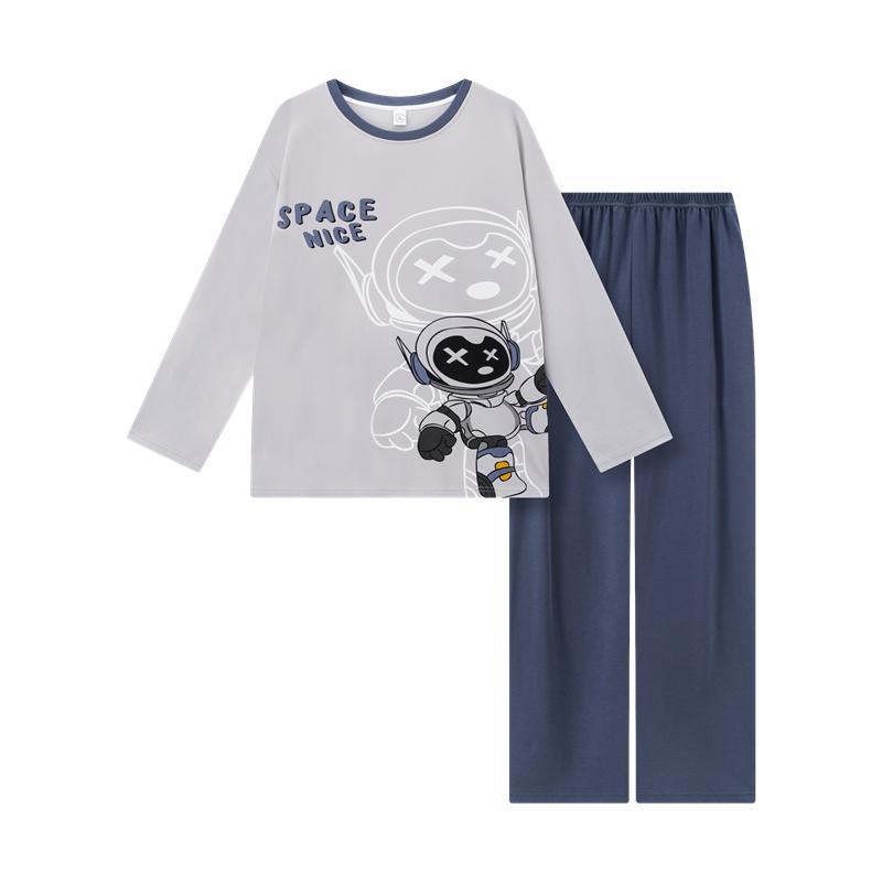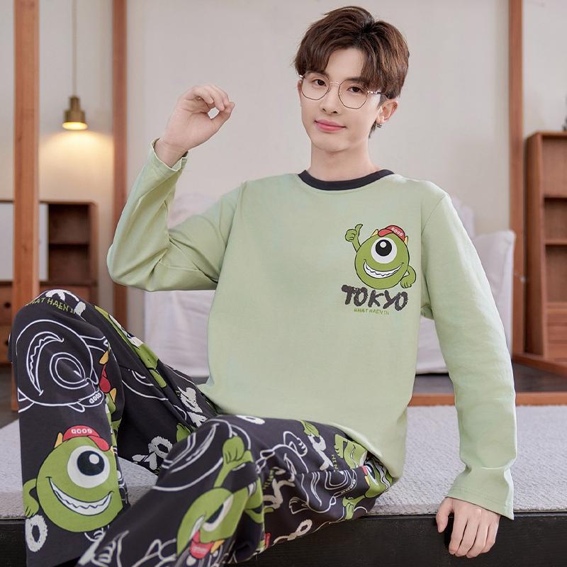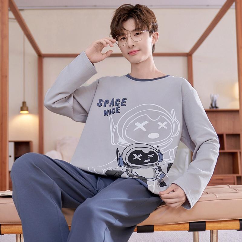 Главная страница > Мужские пижамы из чистого хлопка, весна-осень 2025, длинный рукав, круглый вырез, тонкие, молодежный костюм, милый мультяшный домашний костюм