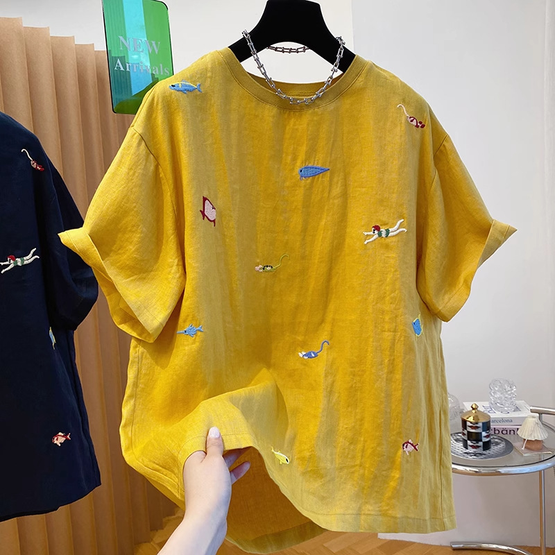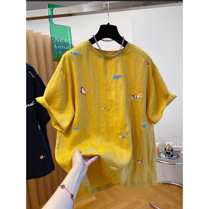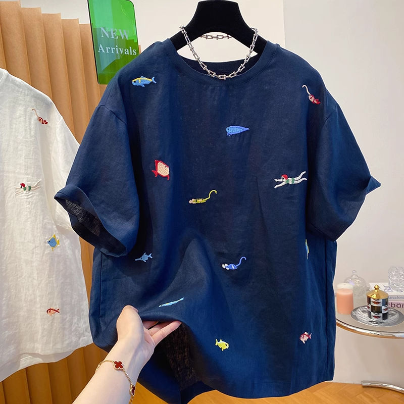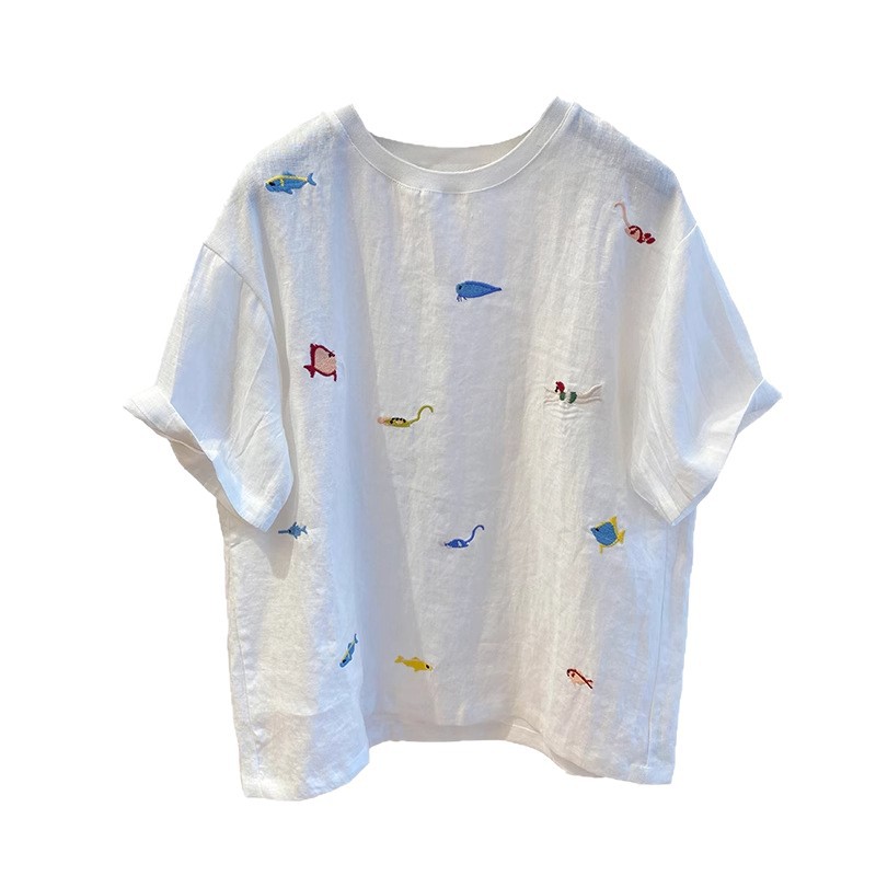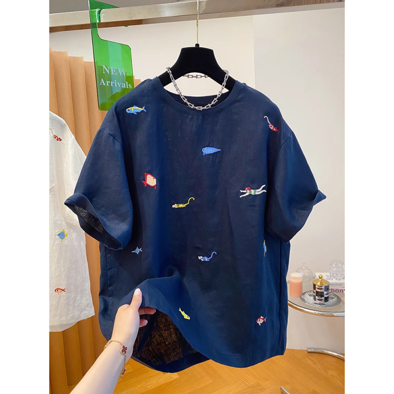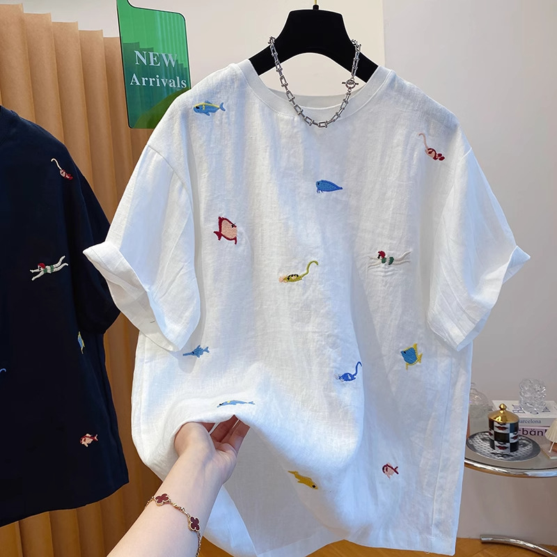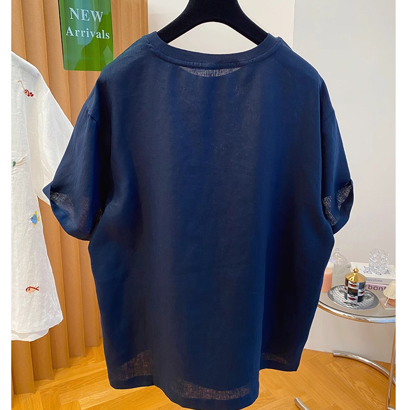 Главная страница > Официальное изображение, элегантная белая футболка из хлопка и льна, женская футболка с короткими рукавами, новинка 2025 года, свободный пуловер в европейском стиле, летний топ из хлопка и льна с круглым вырезом