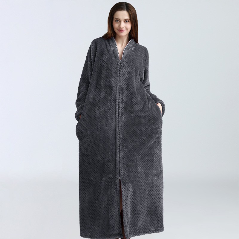 Главная страница > Осенне-зимняя утолщенная Ночная рубашка на молнии Amazon, фланелевая ночная рубашка, халат, Женская утолщенная трансграничная Домашняя одежда на флисовой подкладке