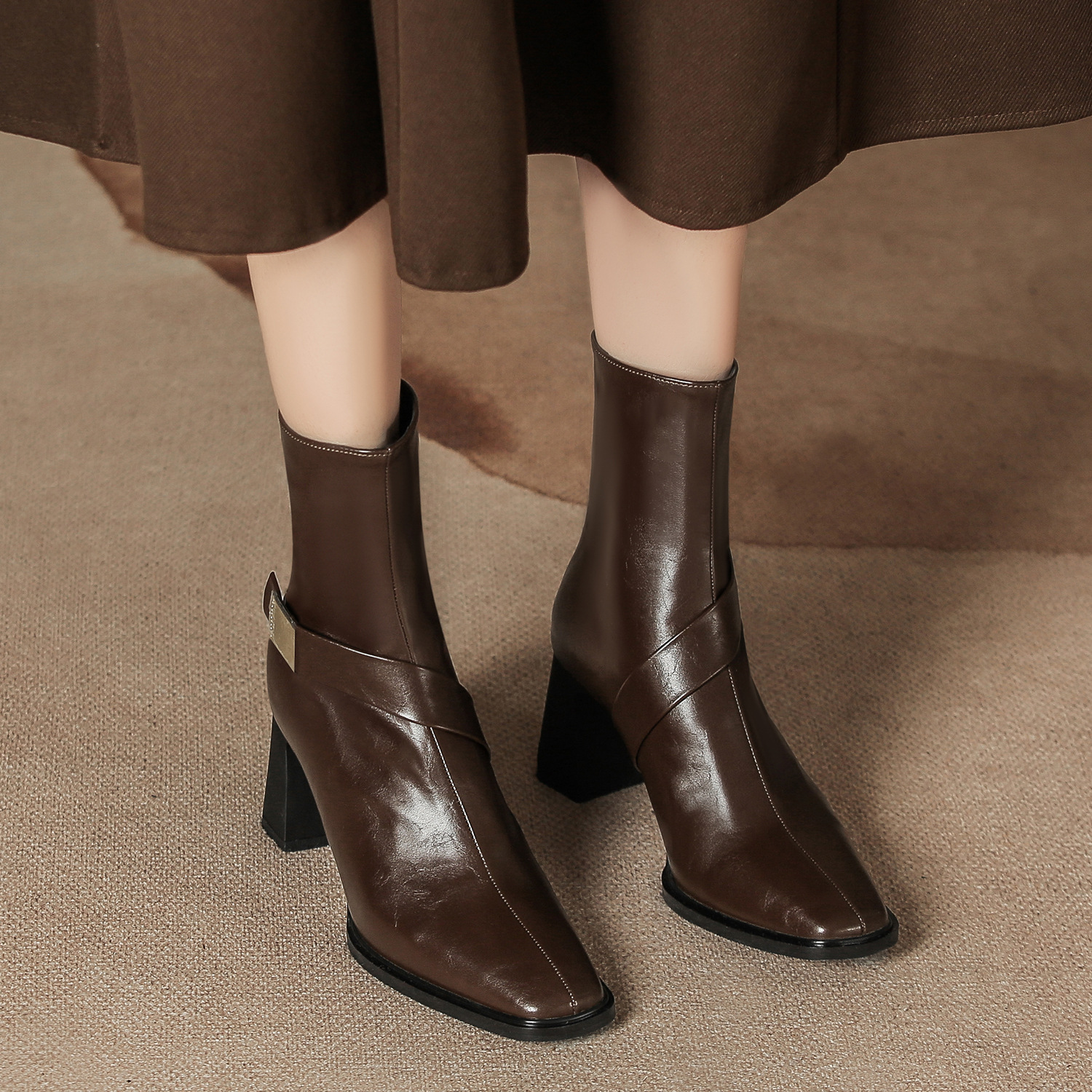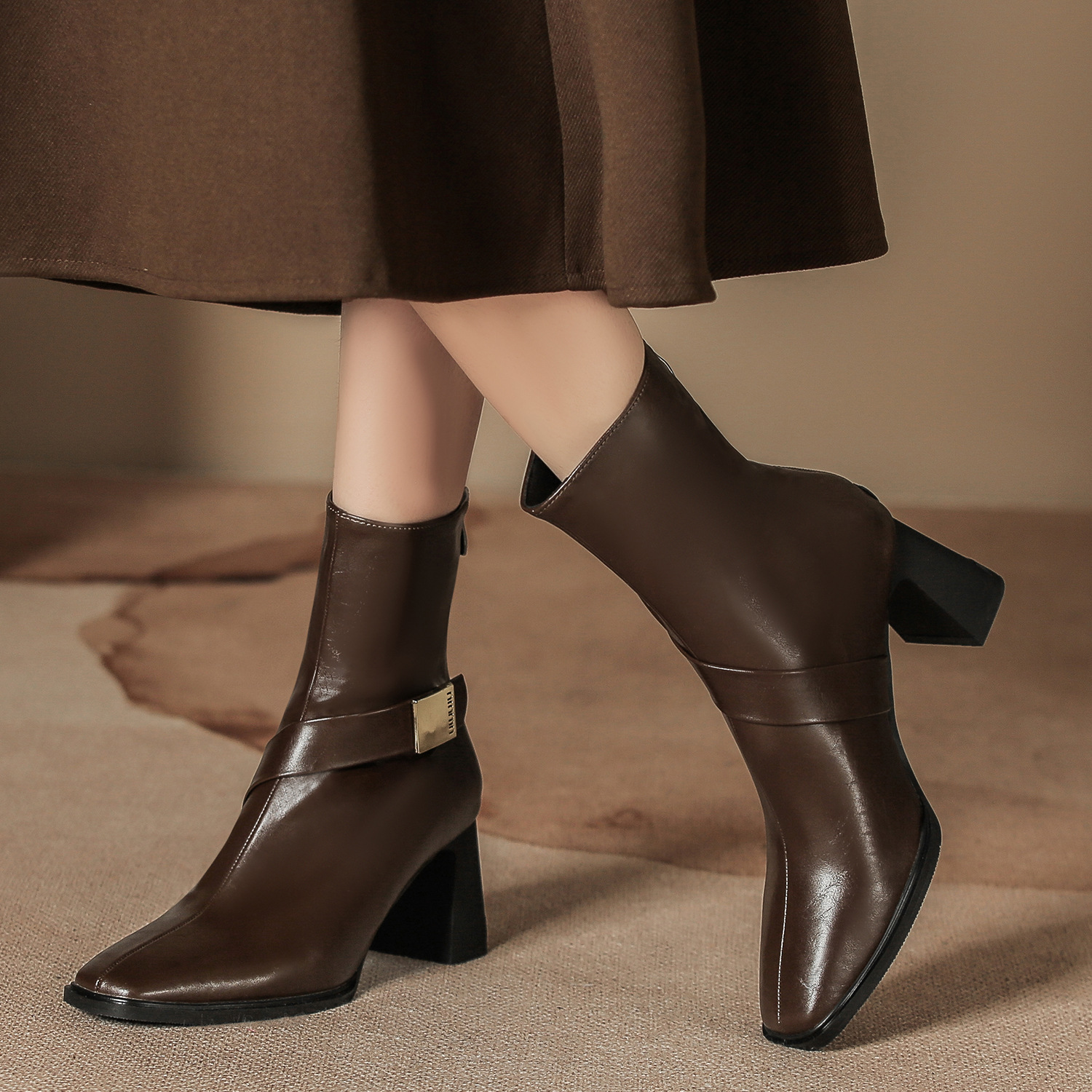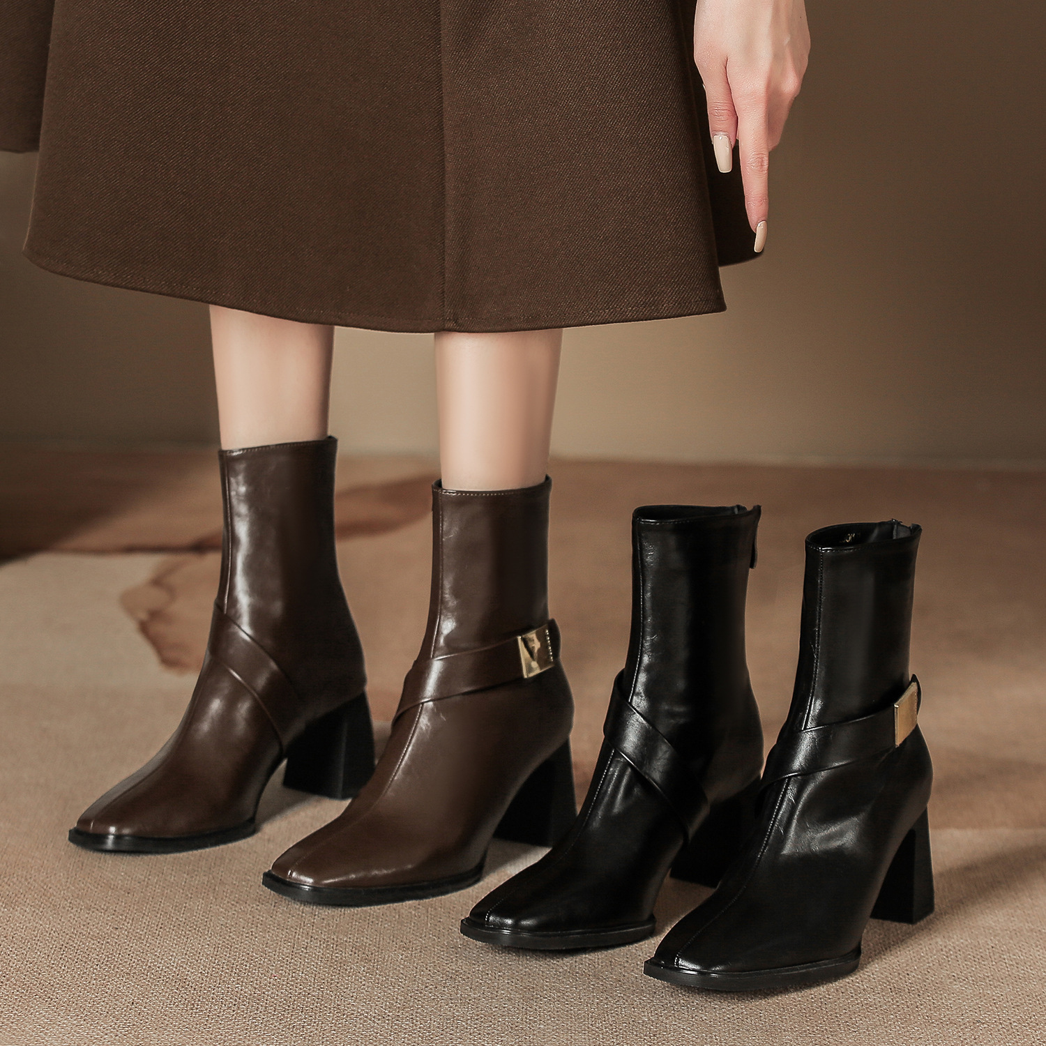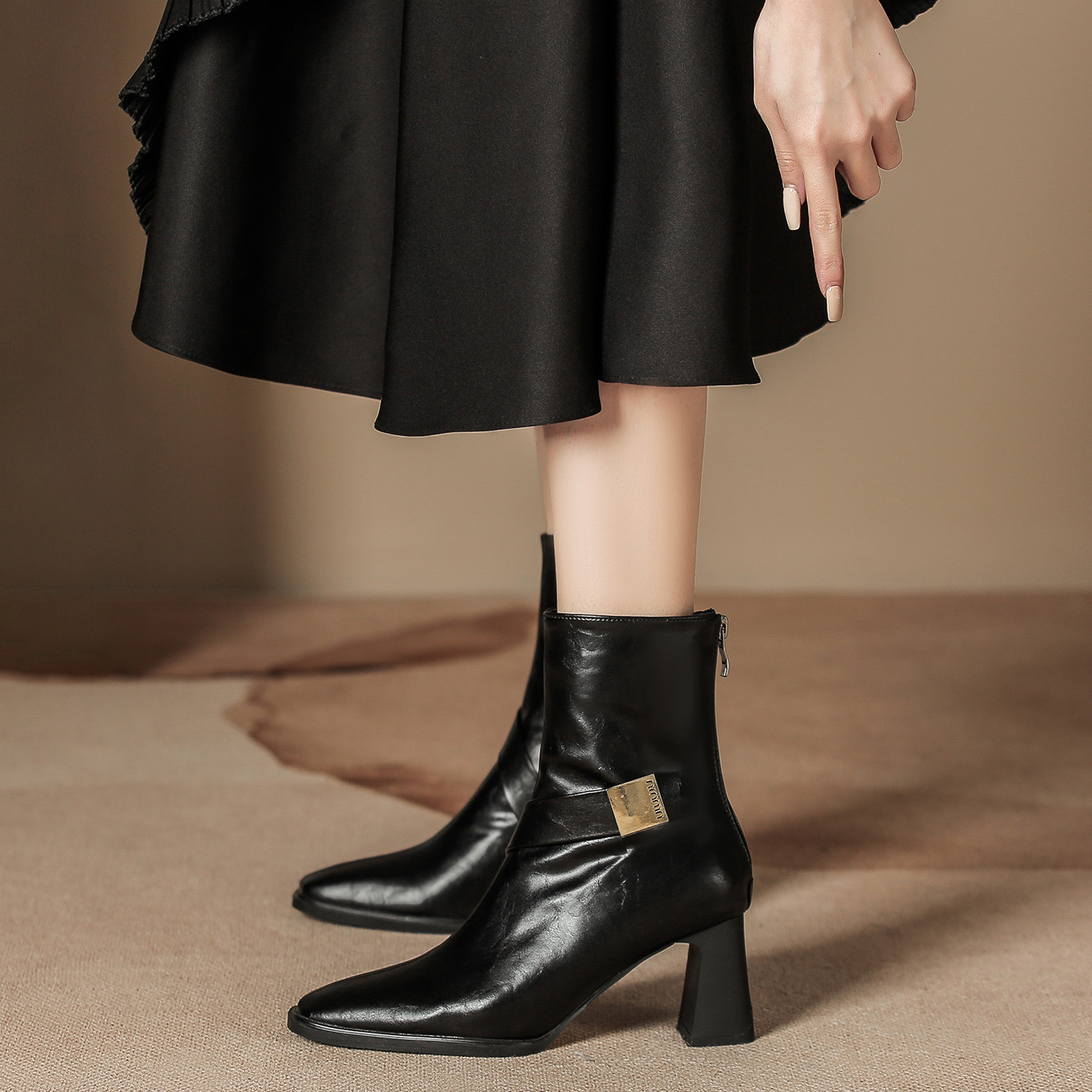 Главная страница > Женские короткие сапоги на высоком каблуке для повседневной носки, новинка 2024 года, осенне-зимние ботинки в британском стиле, модель «Мартин» на толстом каблуке с задней молнией, стройнящие, модные, однотонные.