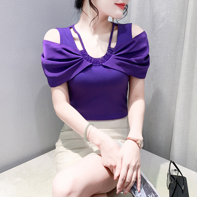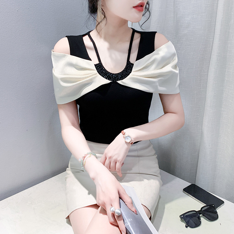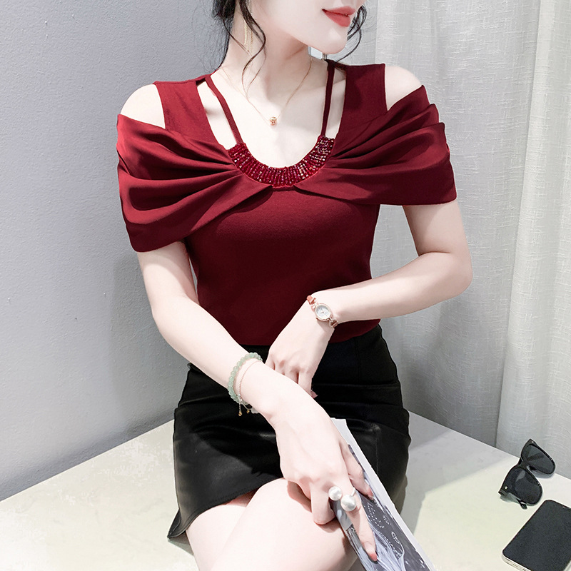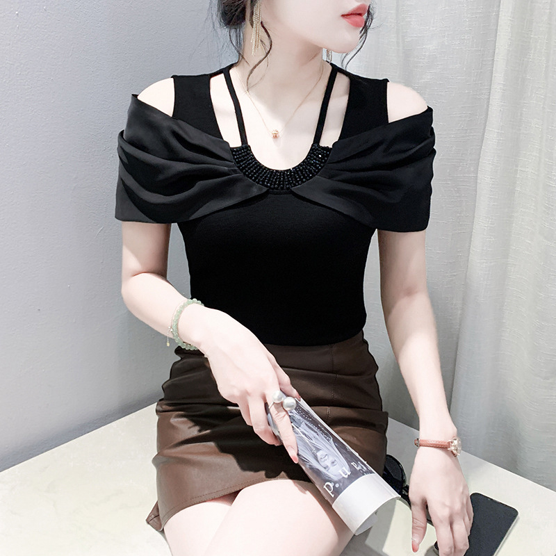 Главная страница > 2024 летнее платье новый сексуальный с открытыми плечами тяжелый заказ бисер U-образный воротник футболка с короткими рукавами европейский дизайн рубашка