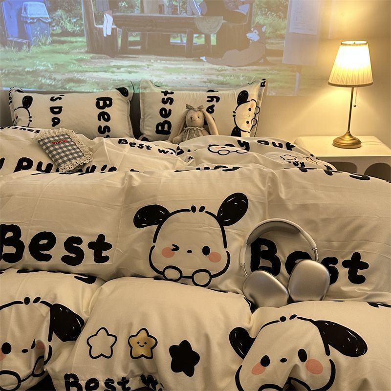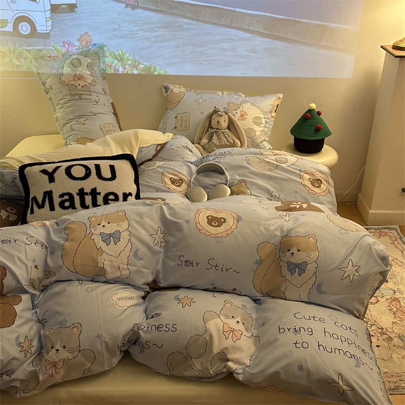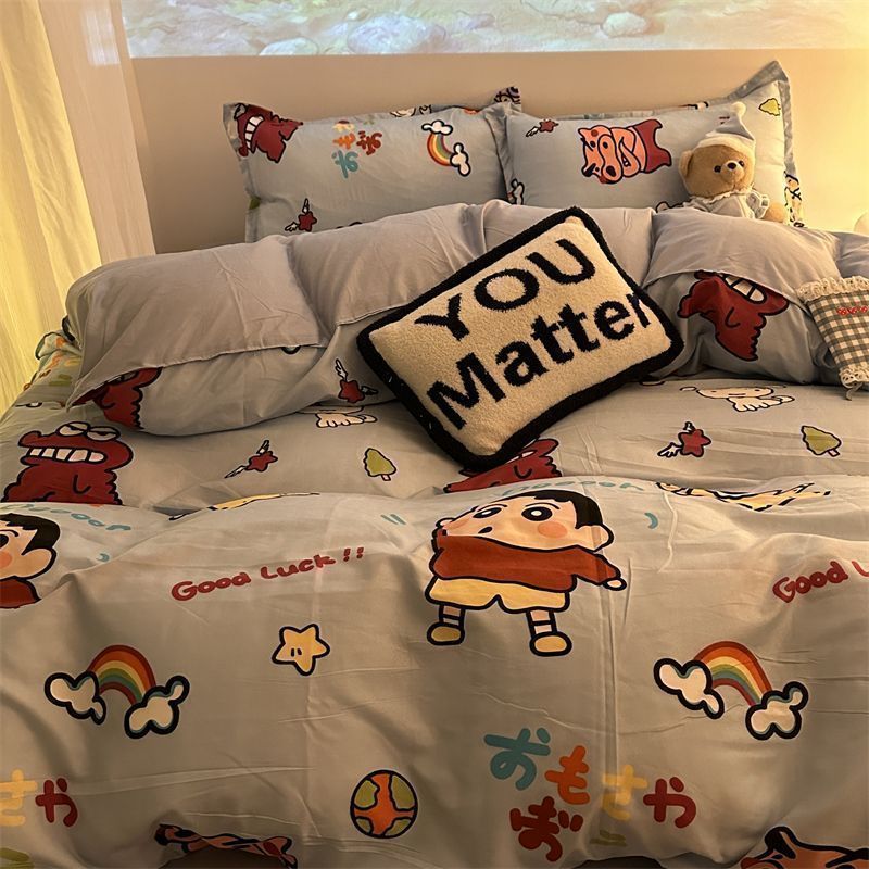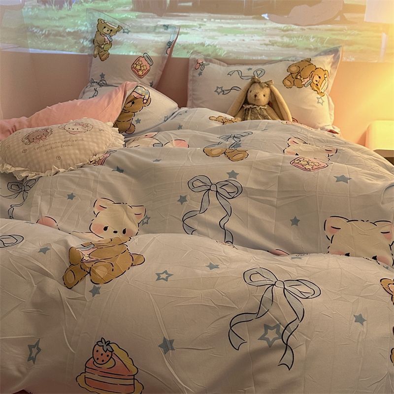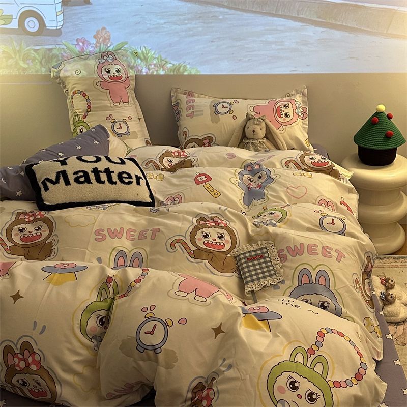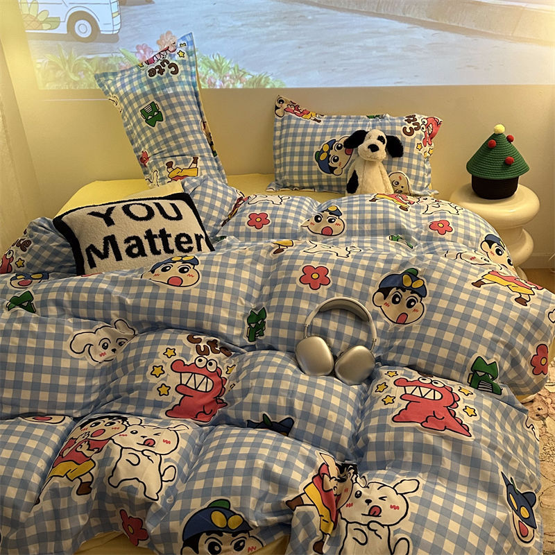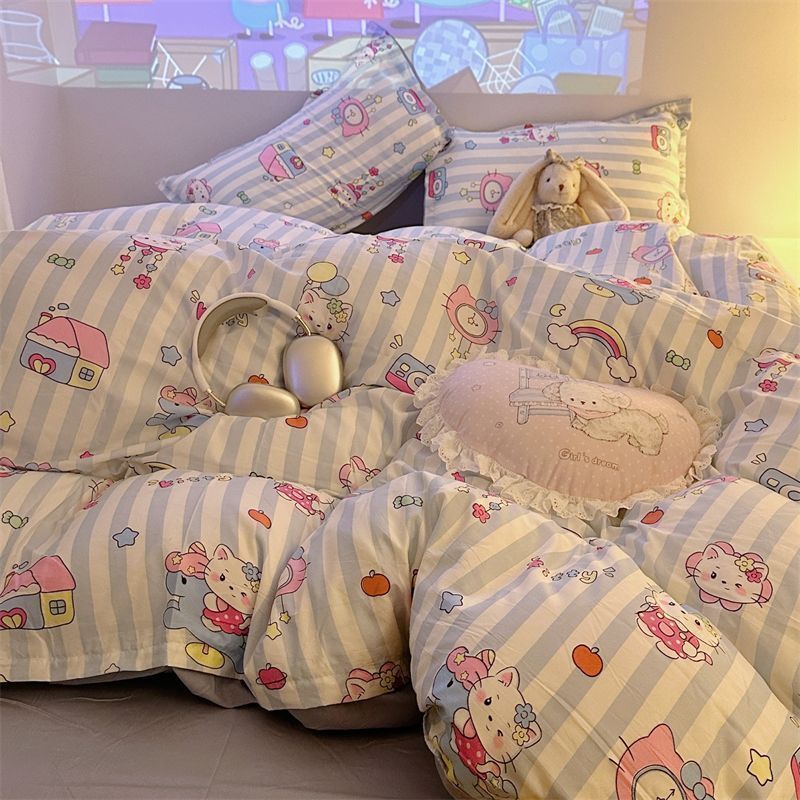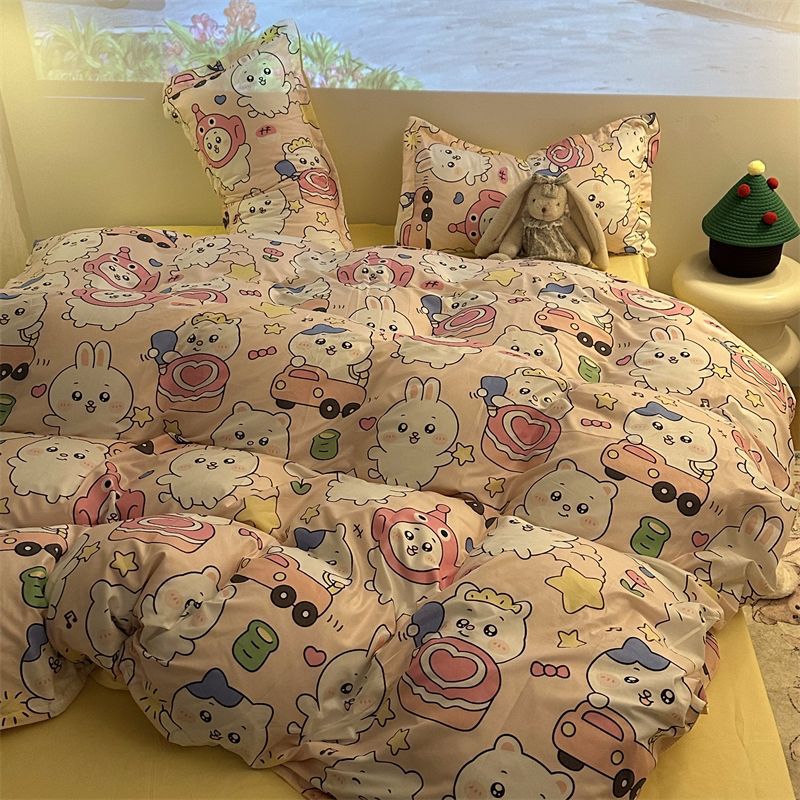 Sleeping Pi Pi Симпатичные мультяшные стираные хлопчатобумажные простыни и пододеяльники, комплект из четырех предметов, супер мягкий, приятный для кожи, комплект из трех предметов для студенческого общежития
