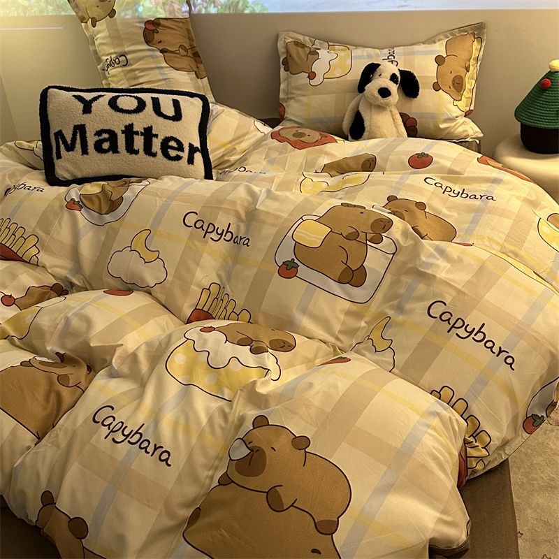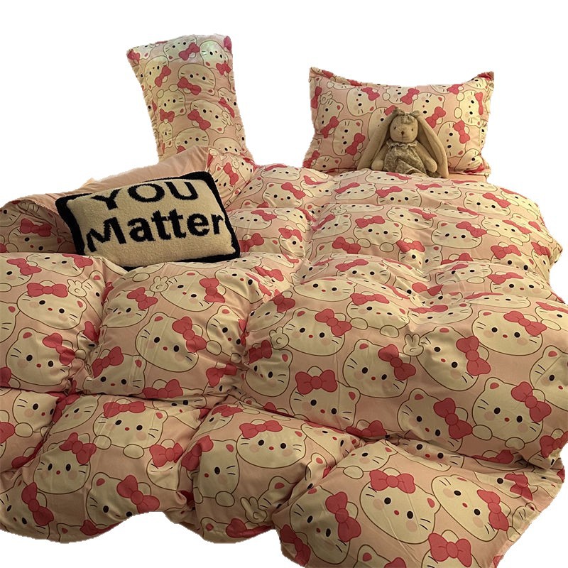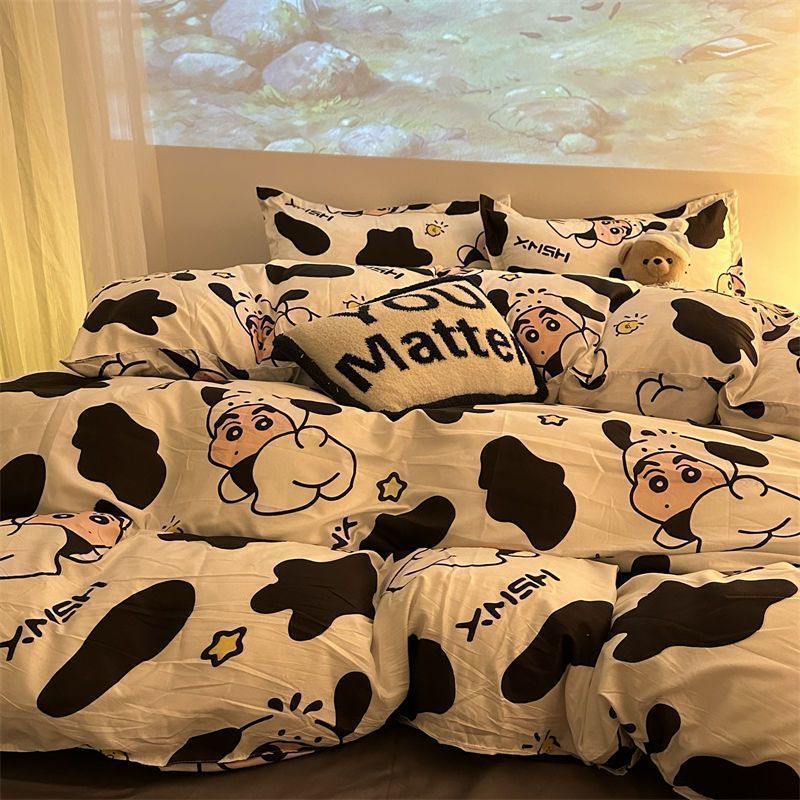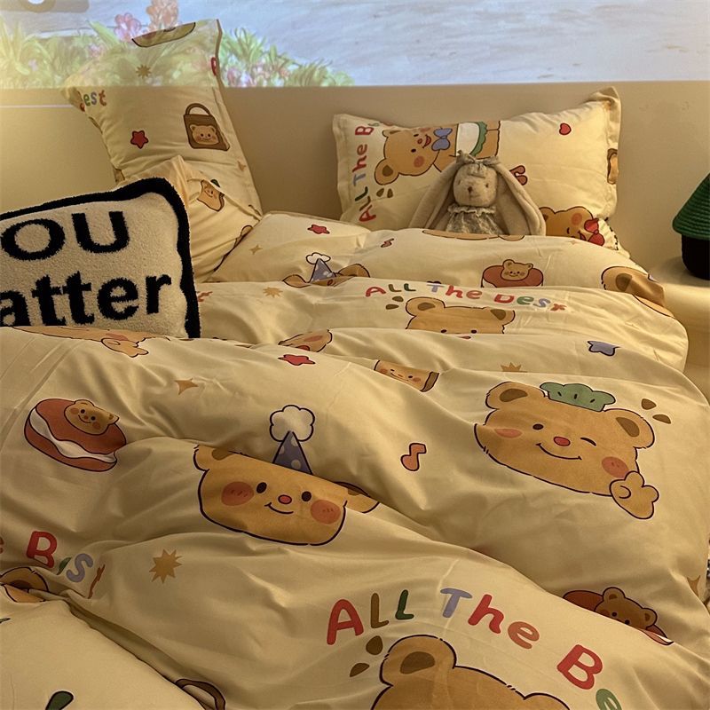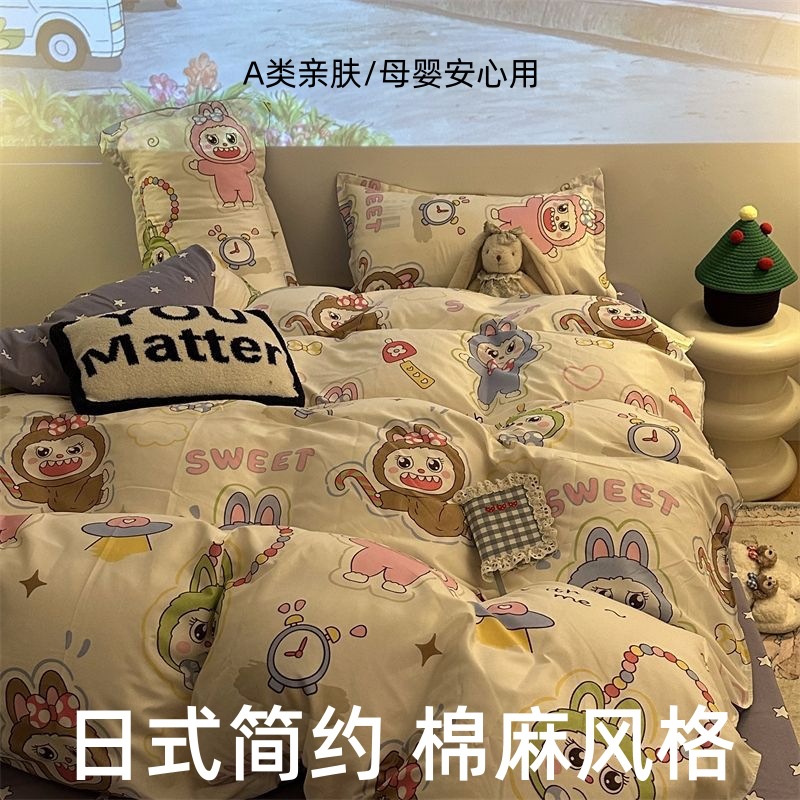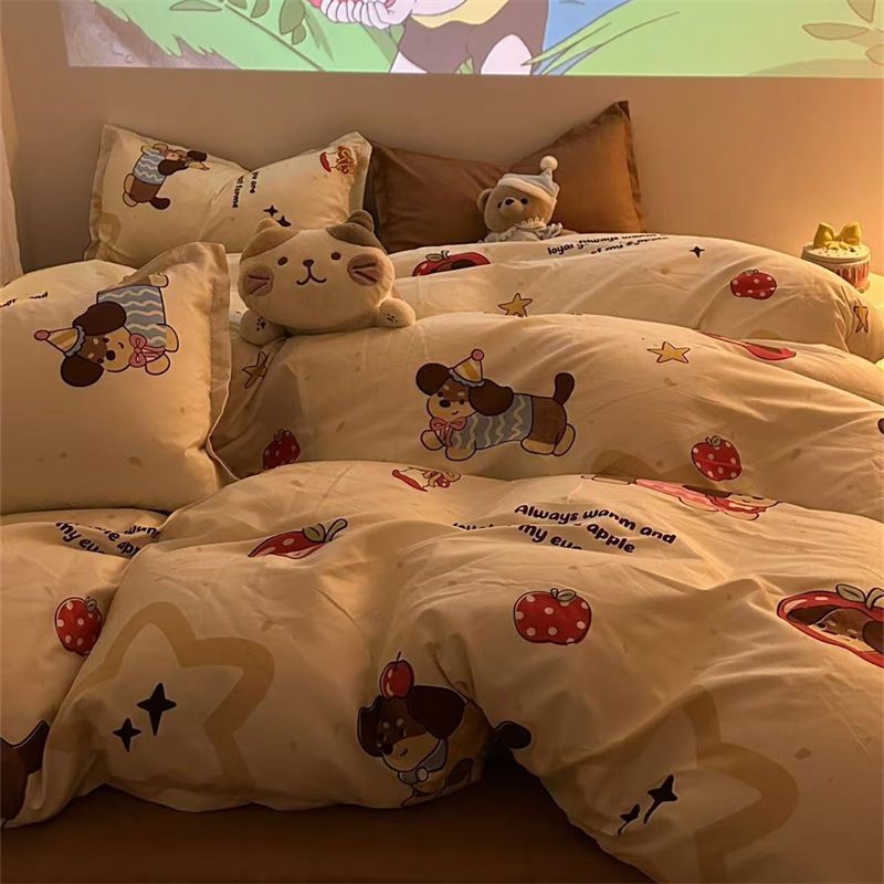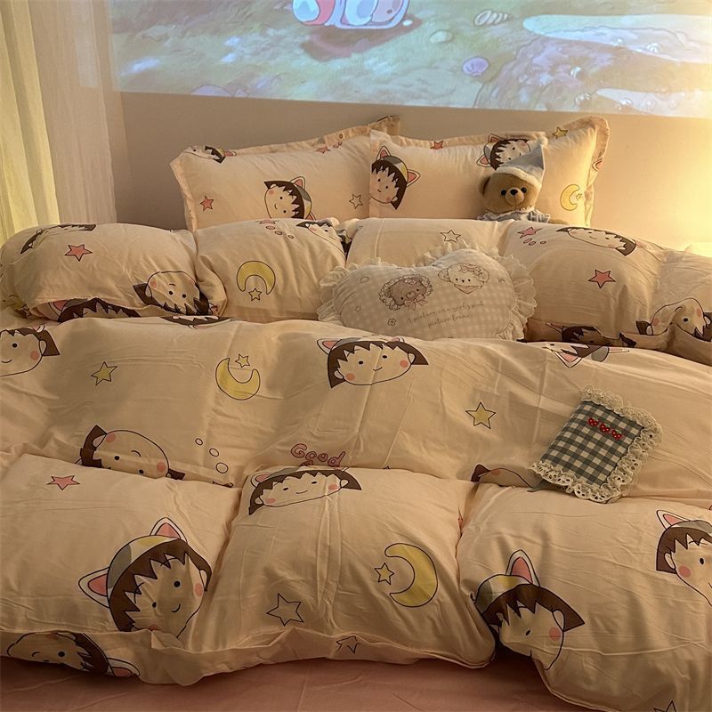 Sleeping Pi Pi Симпатичные мультяшные стираные хлопчатобумажные простыни и пододеяльники, комплект из четырех предметов, супер мягкий, приятный для кожи, комплект из трех предметов для студенческого общежития