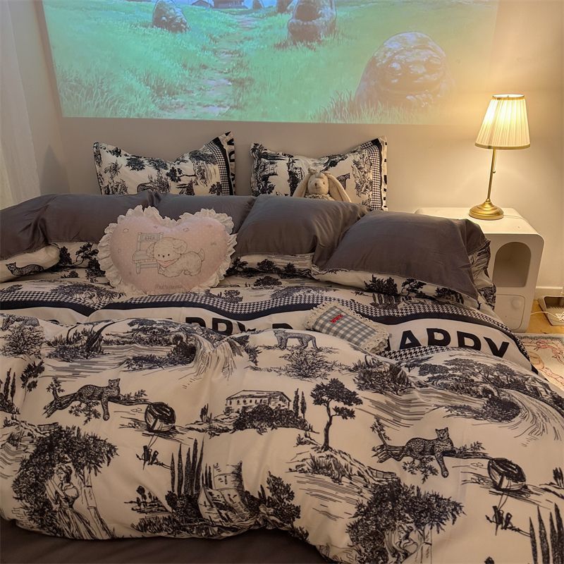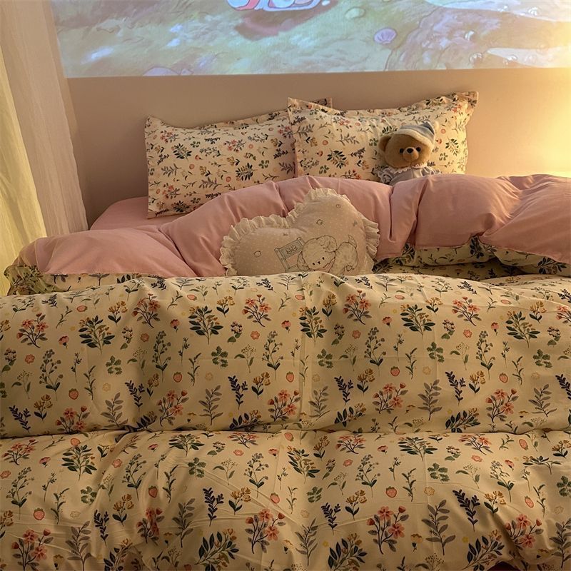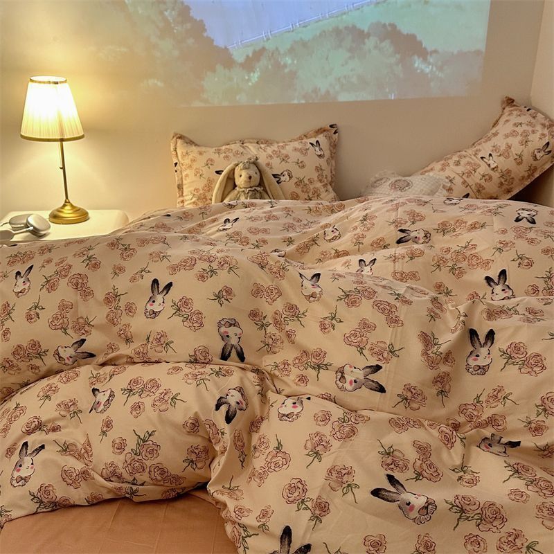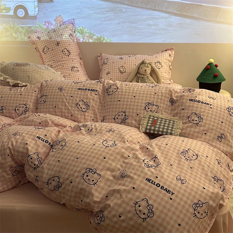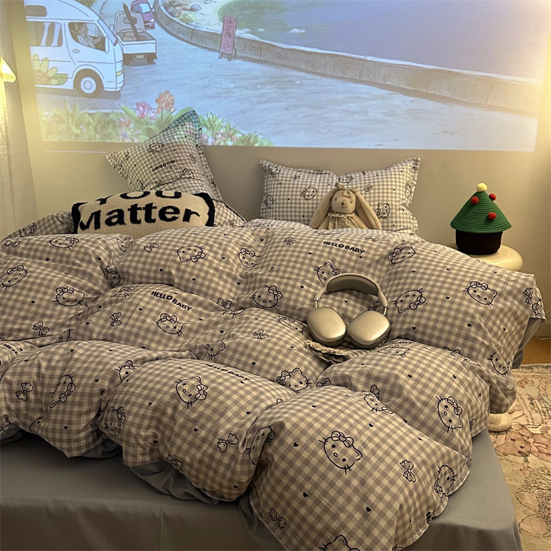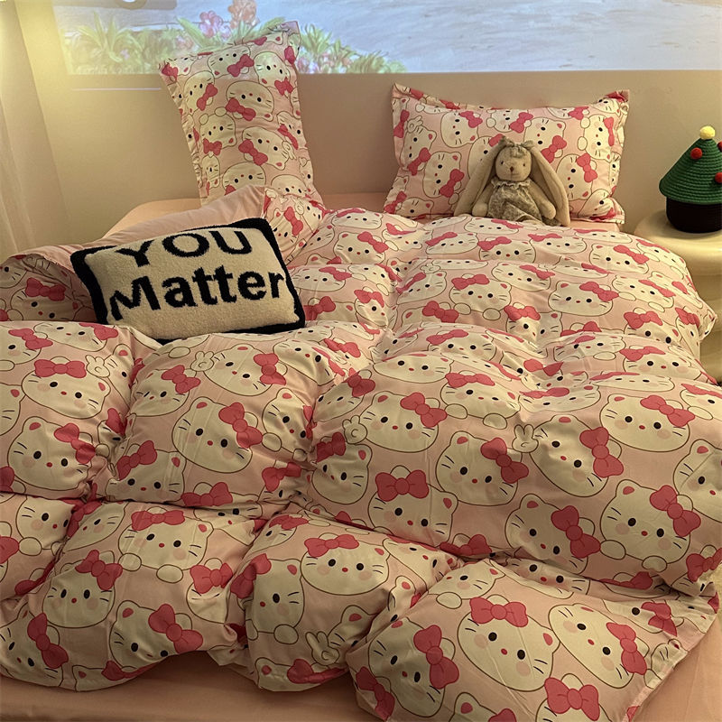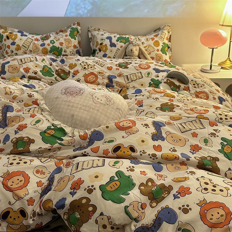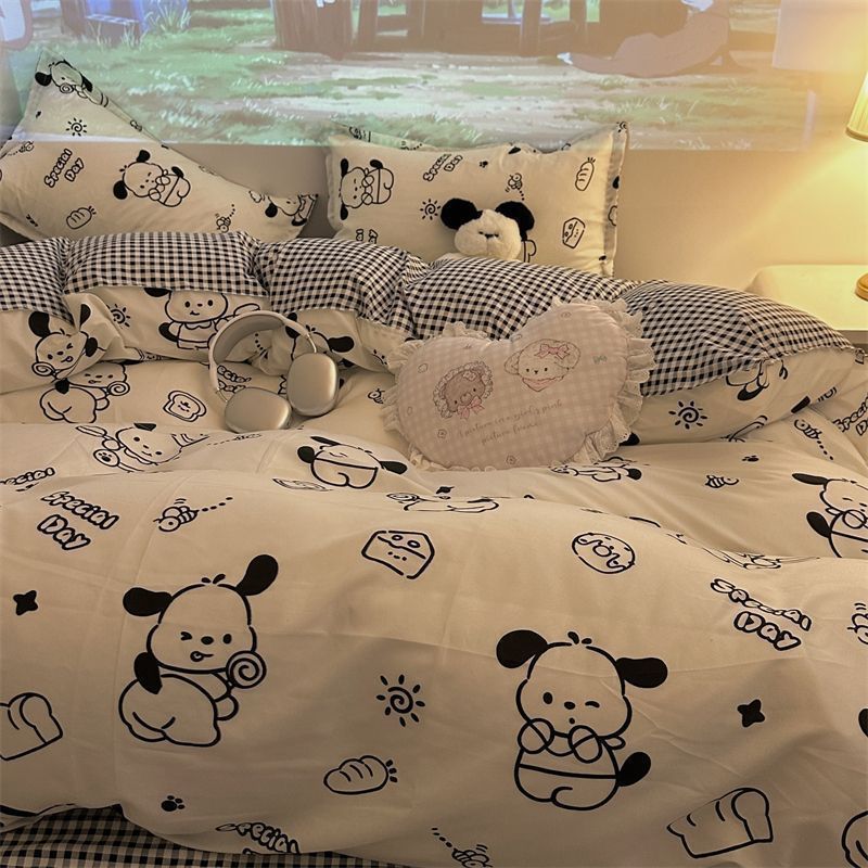 Sleeping Pi Pi Симпатичные мультяшные стираные хлопчатобумажные простыни и пододеяльники, комплект из четырех предметов, супер мягкий, приятный для кожи, комплект из трех предметов для студенческого общежития