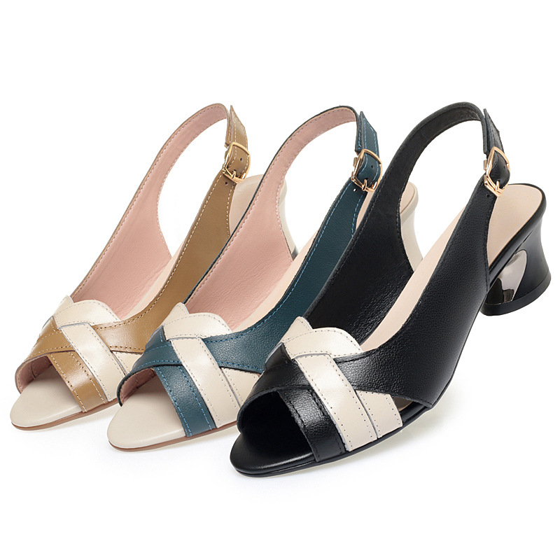 Босоножки на высоком каблуке с рыбьим ртом, женские весенне-летние босоножки из натуральной кожи, новый стиль, сексуальная женская обувь, босоножки на толстом каблуке и среднем каблуке для верхней одежды