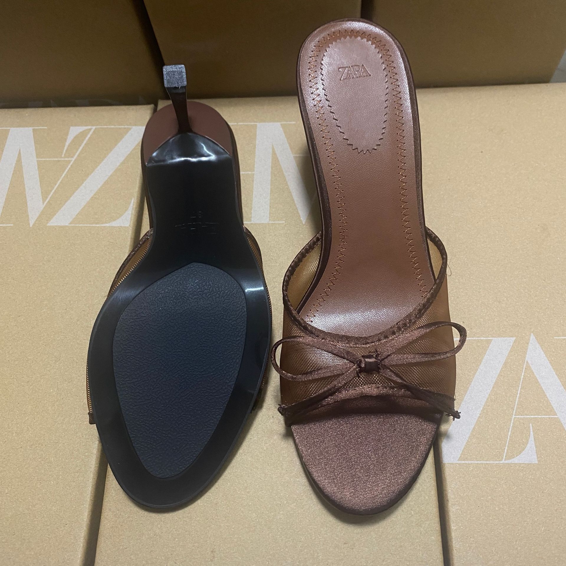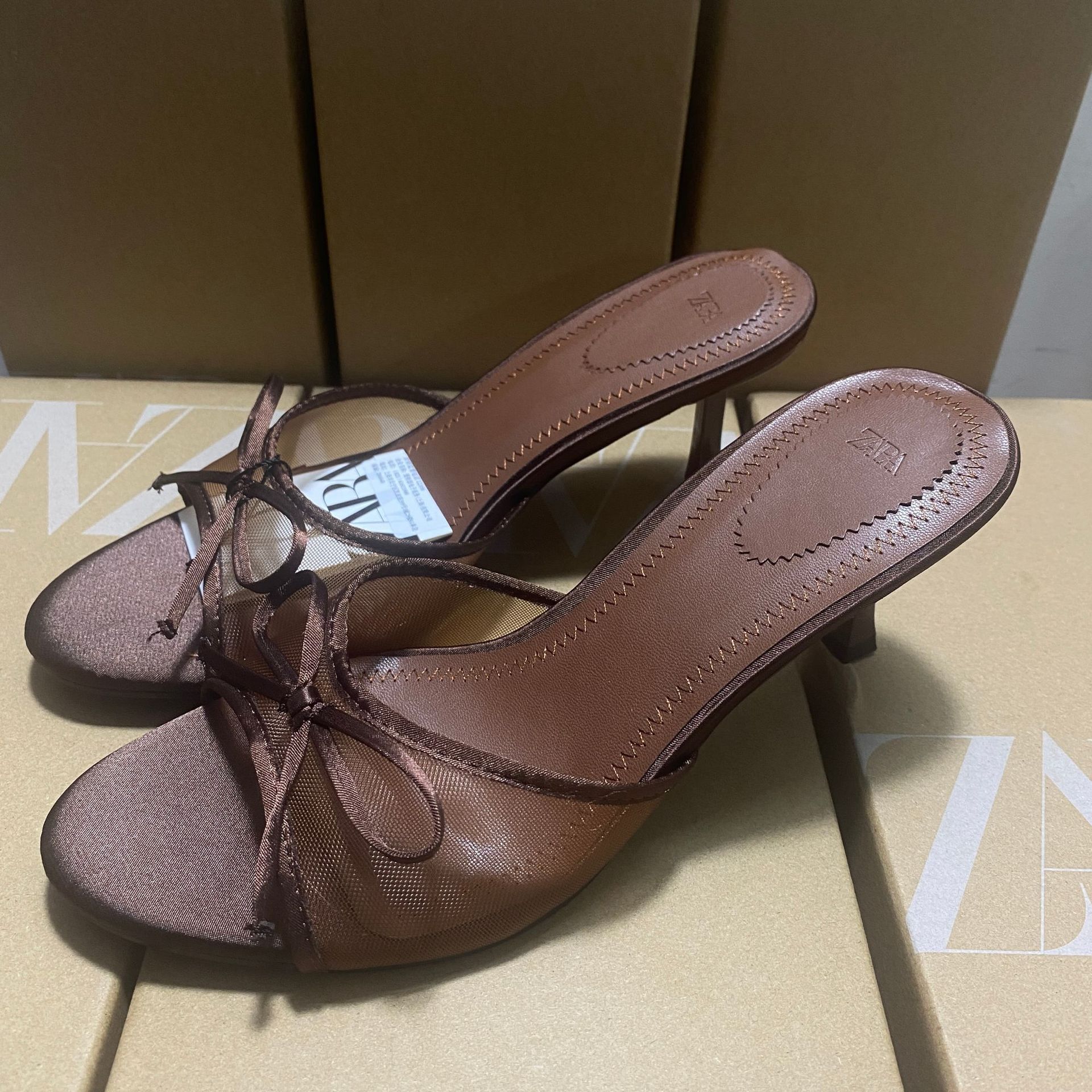Главная страница > Za Home 2025 Летние новые сандалии с острым носком, ремешками, бантом, открытой пяткой и открытой спинкой, французский высококлассный дизайн.
