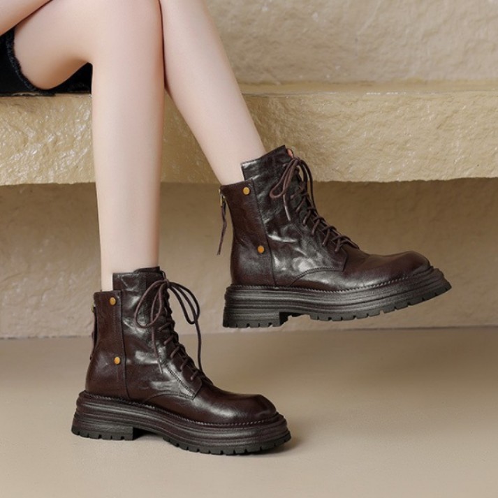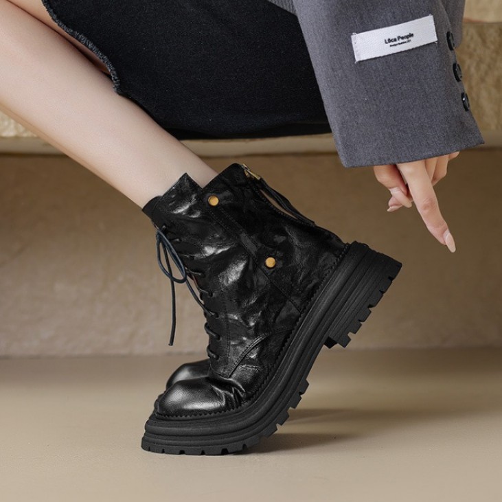 Главная страница > Британский стиль шнуровка с толстой подошвы Martin сапоги женщины 2024 новые круглые сапоги черные сапоги мотоцикла сапоги