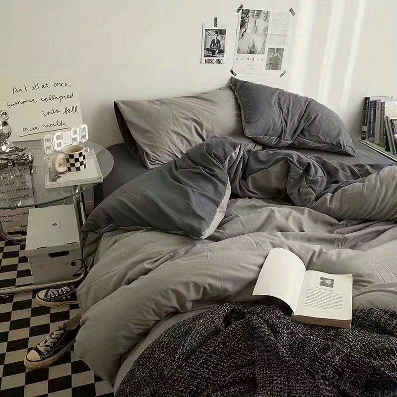 Постельный комплект в скандинавском стиле INS, японский дизайн, высококачественный двухслойный серый пуховый пододеяльник, комплект из четырех предметов, комплект из трех предметов для общежития