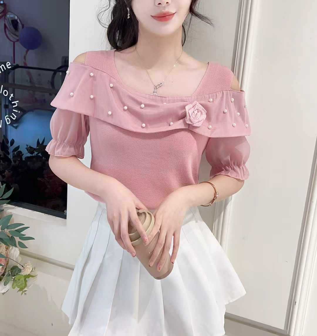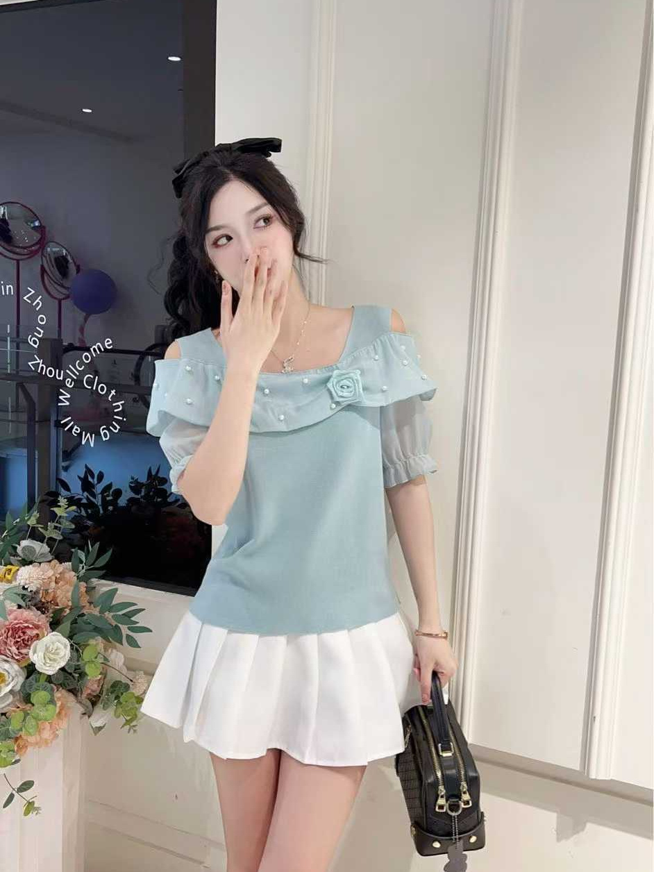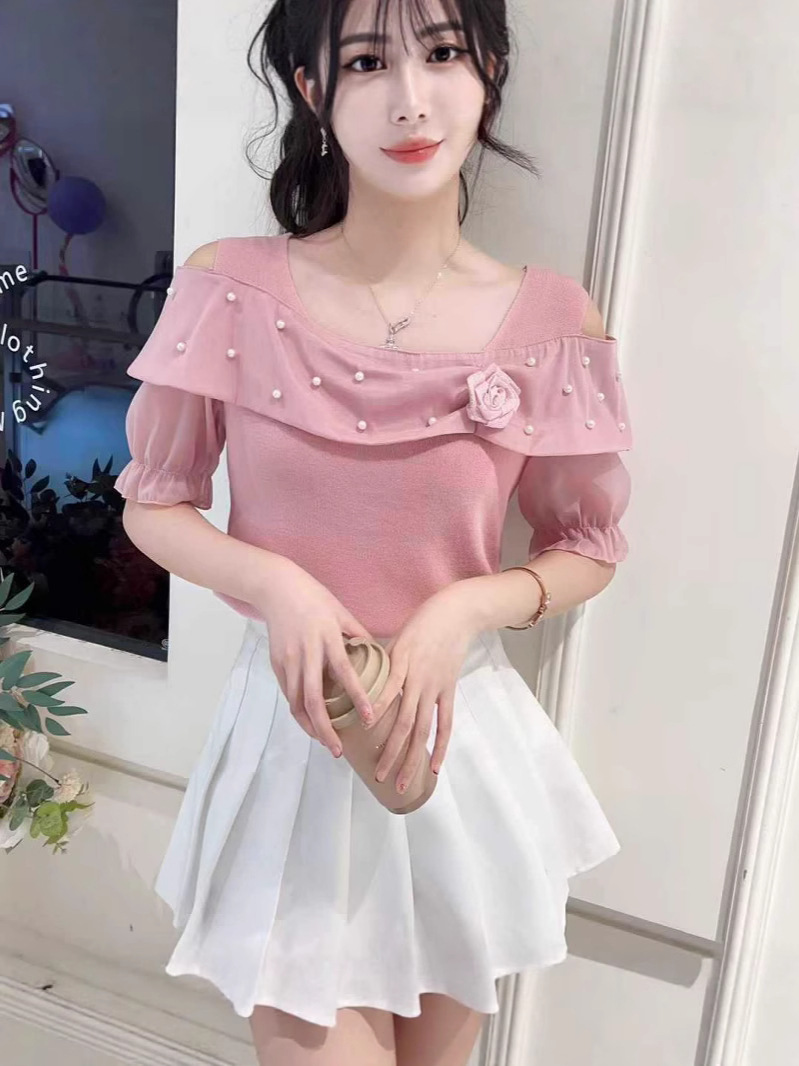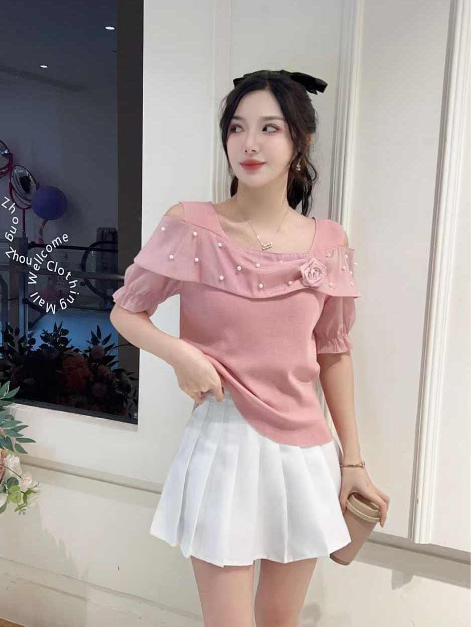 Главная страница > Женская футболка с открытыми плечами и короткими рукавами, летняя мода, модный дизайн, топ на одно плечо с рюшами, рубашка для похудения